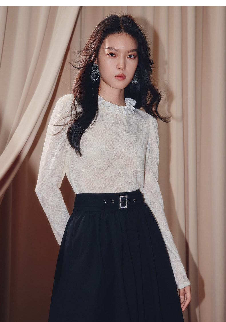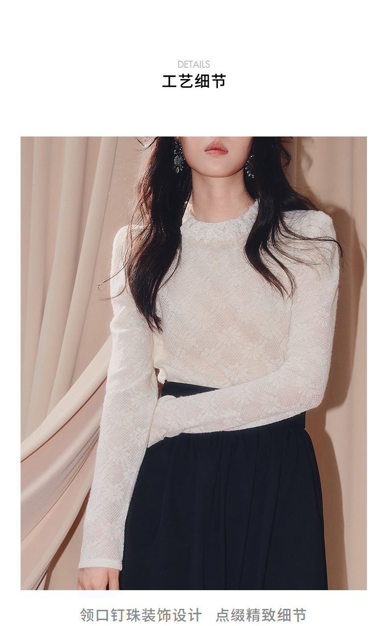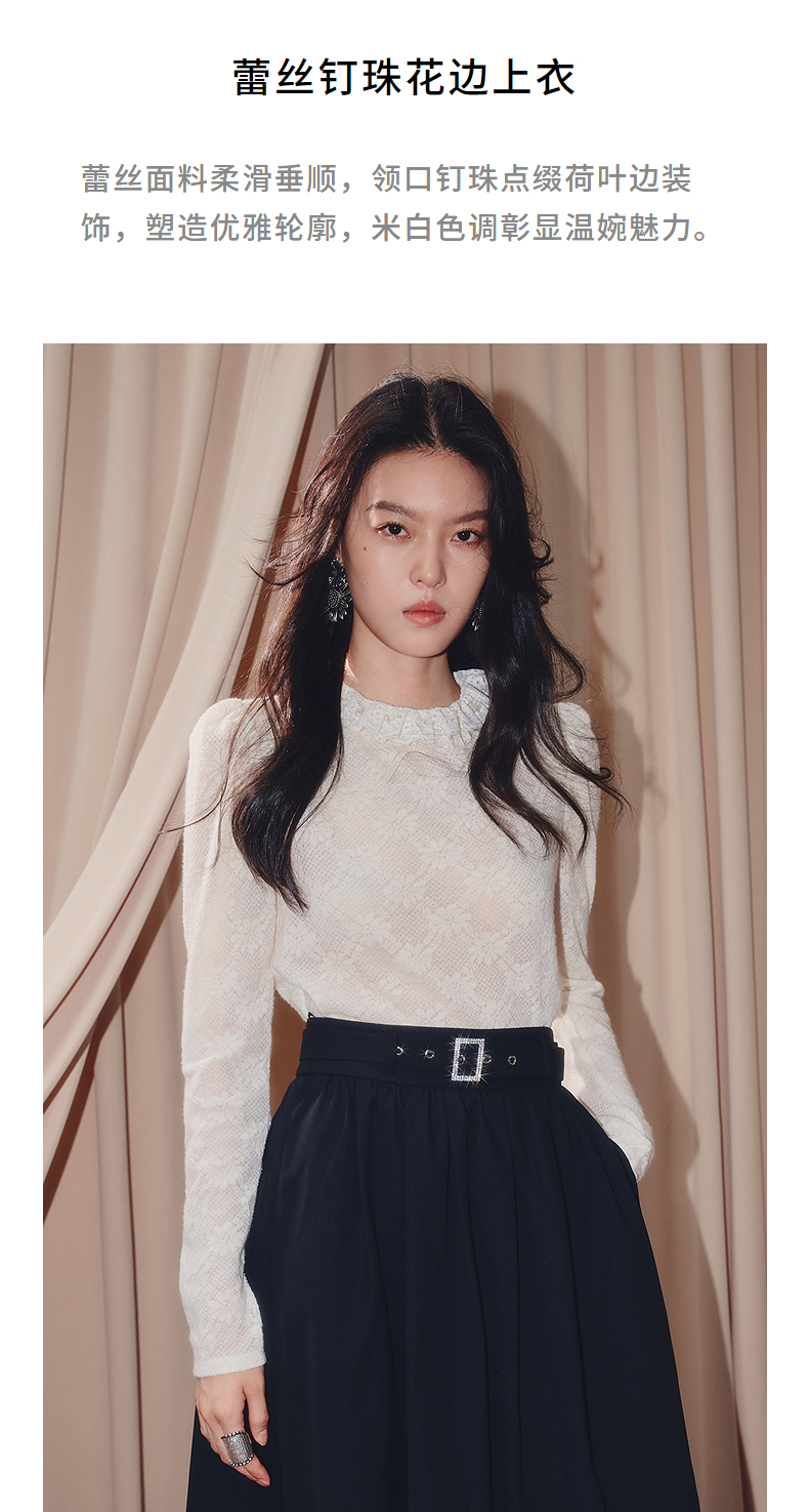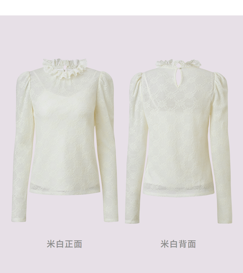 MAXRIENY【商场同款】2025秋纯色蕾丝连帽雪纺衫(货号:MF86TP506)