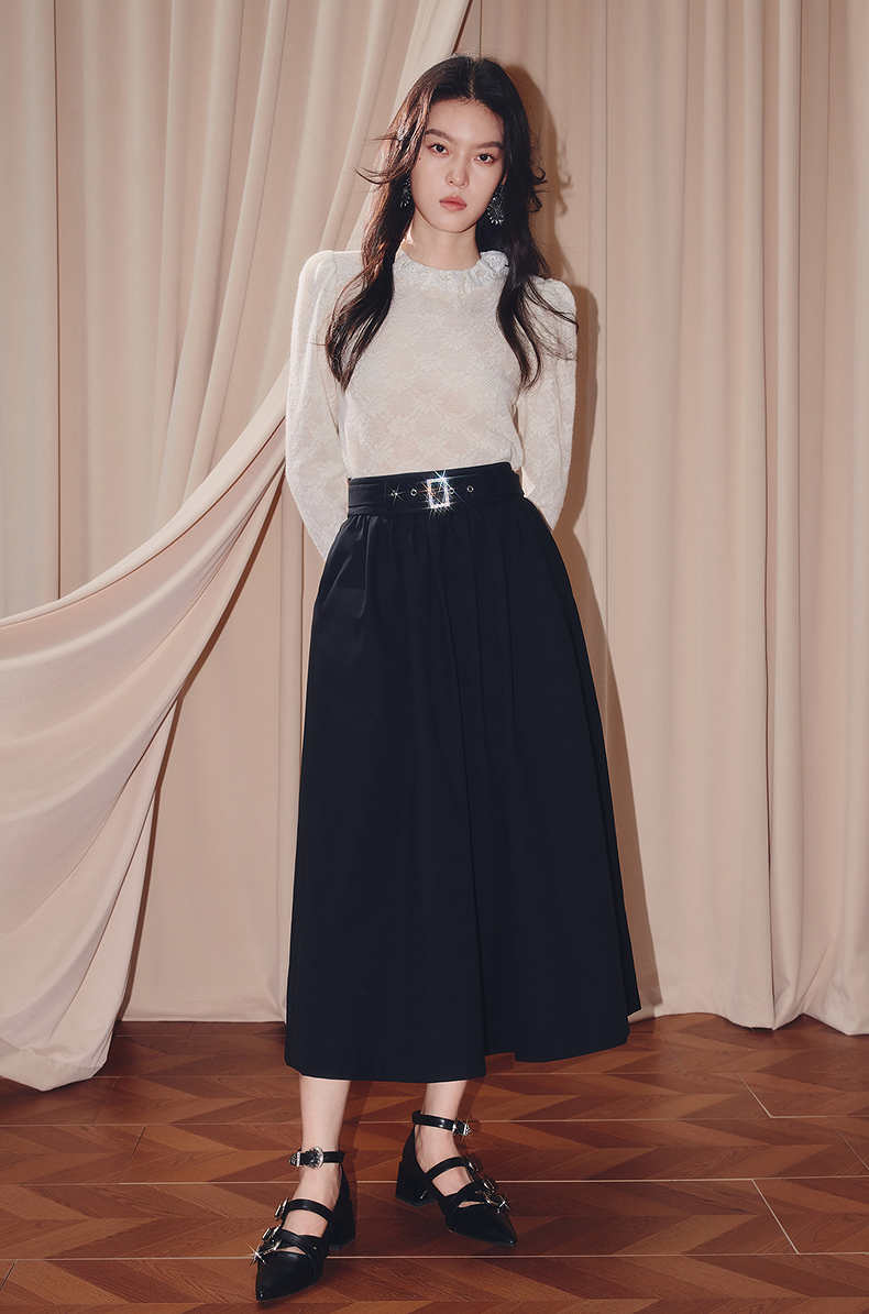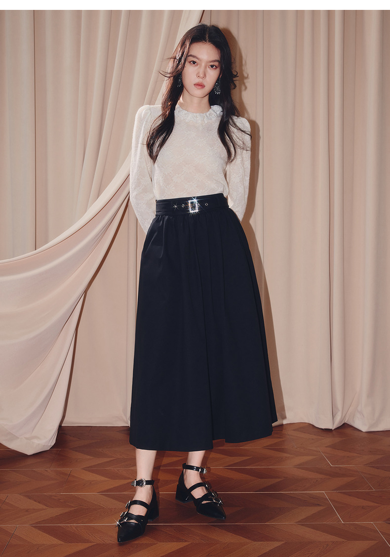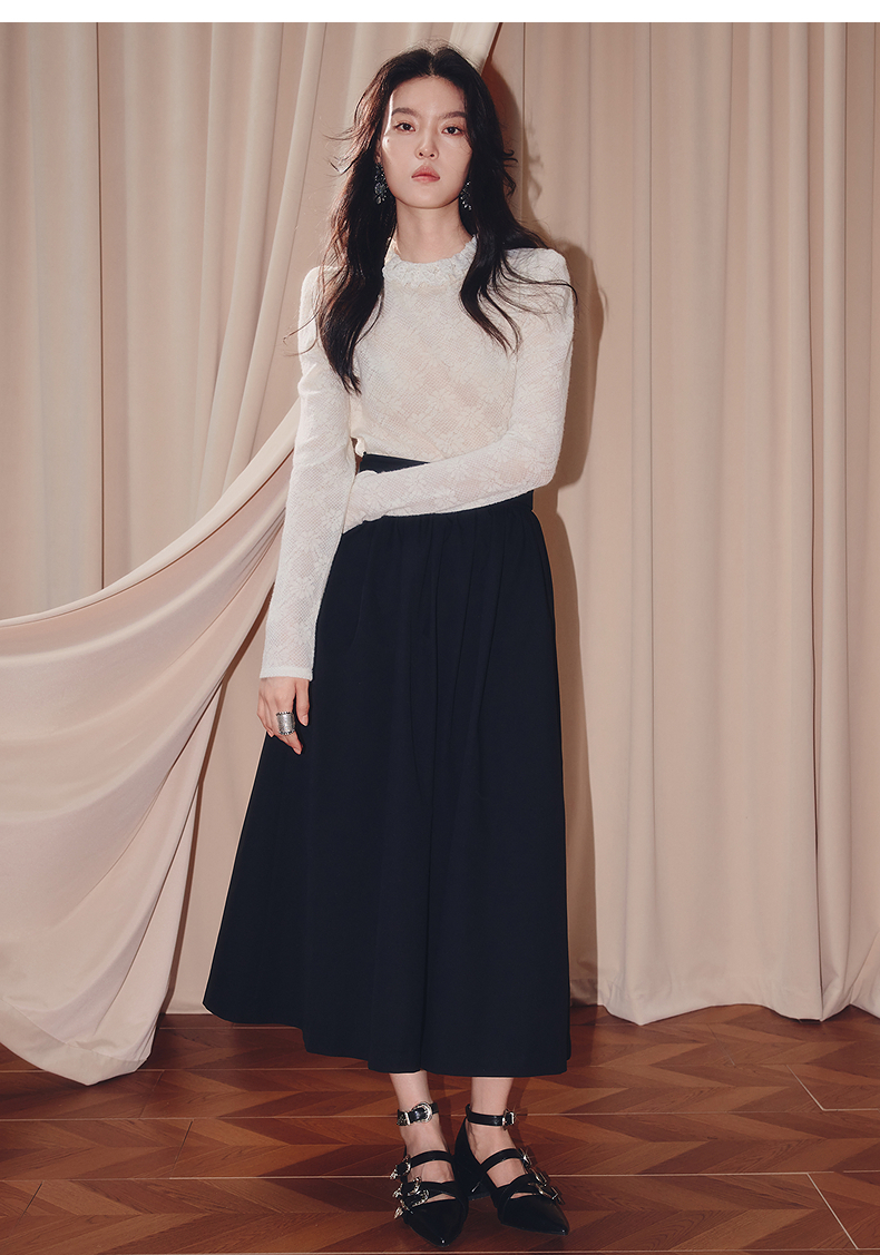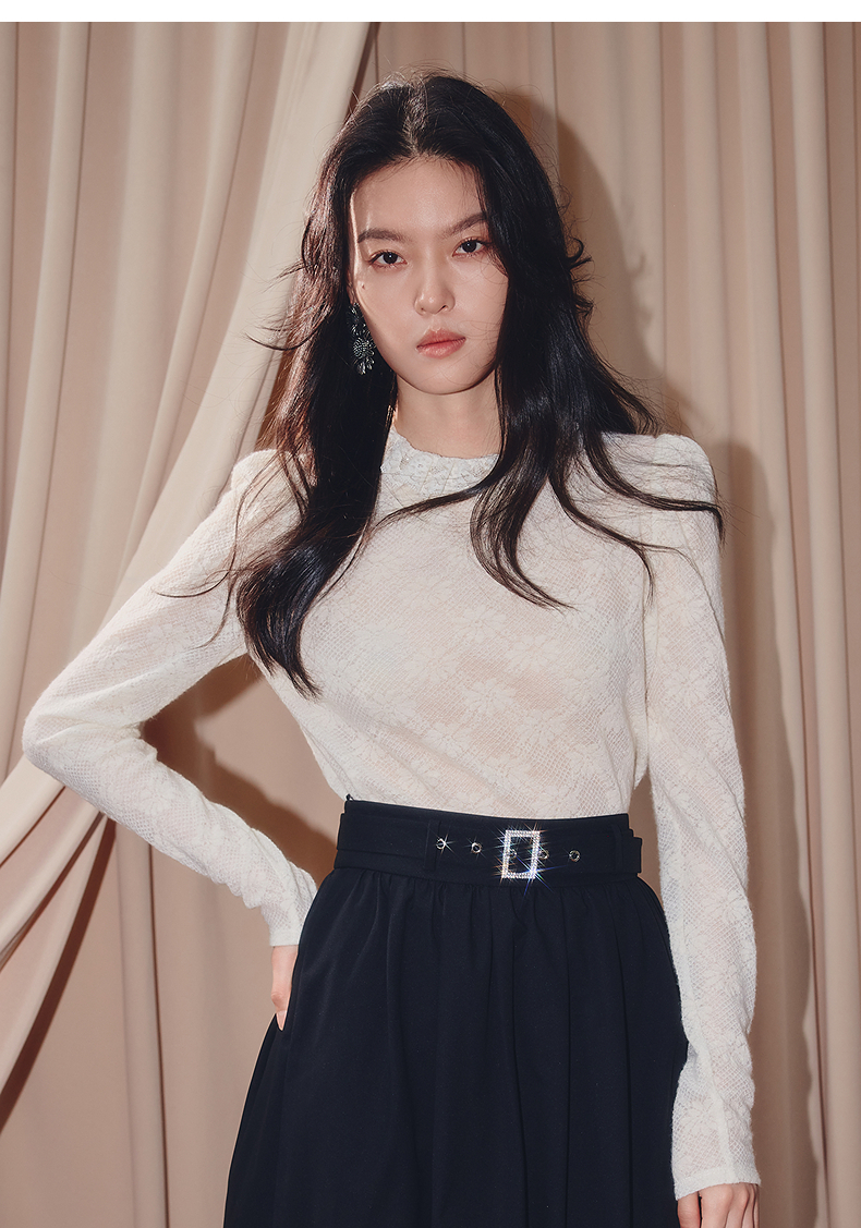 MAXRIENY【商场同款】2025秋纯色蕾丝连帽雪纺衫(货号:MF86TP506)