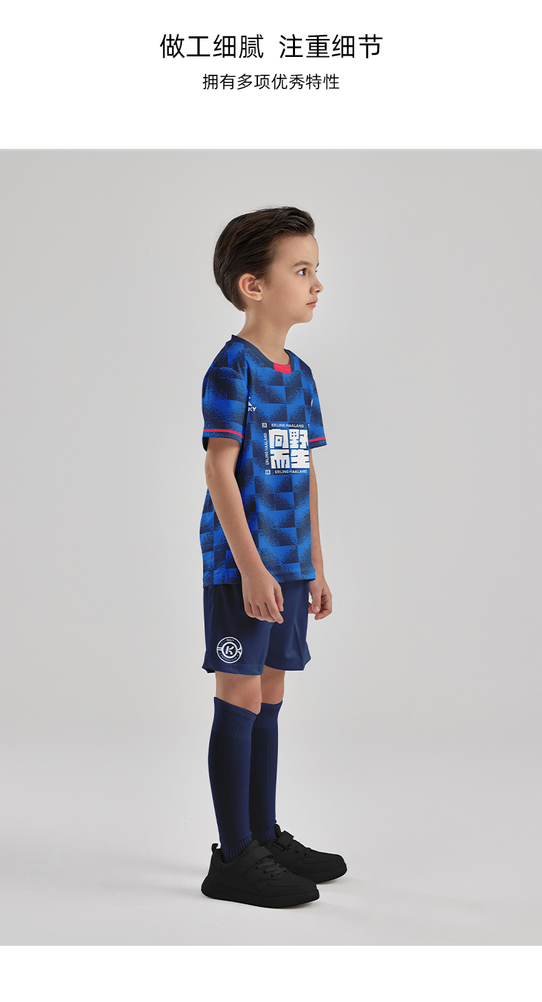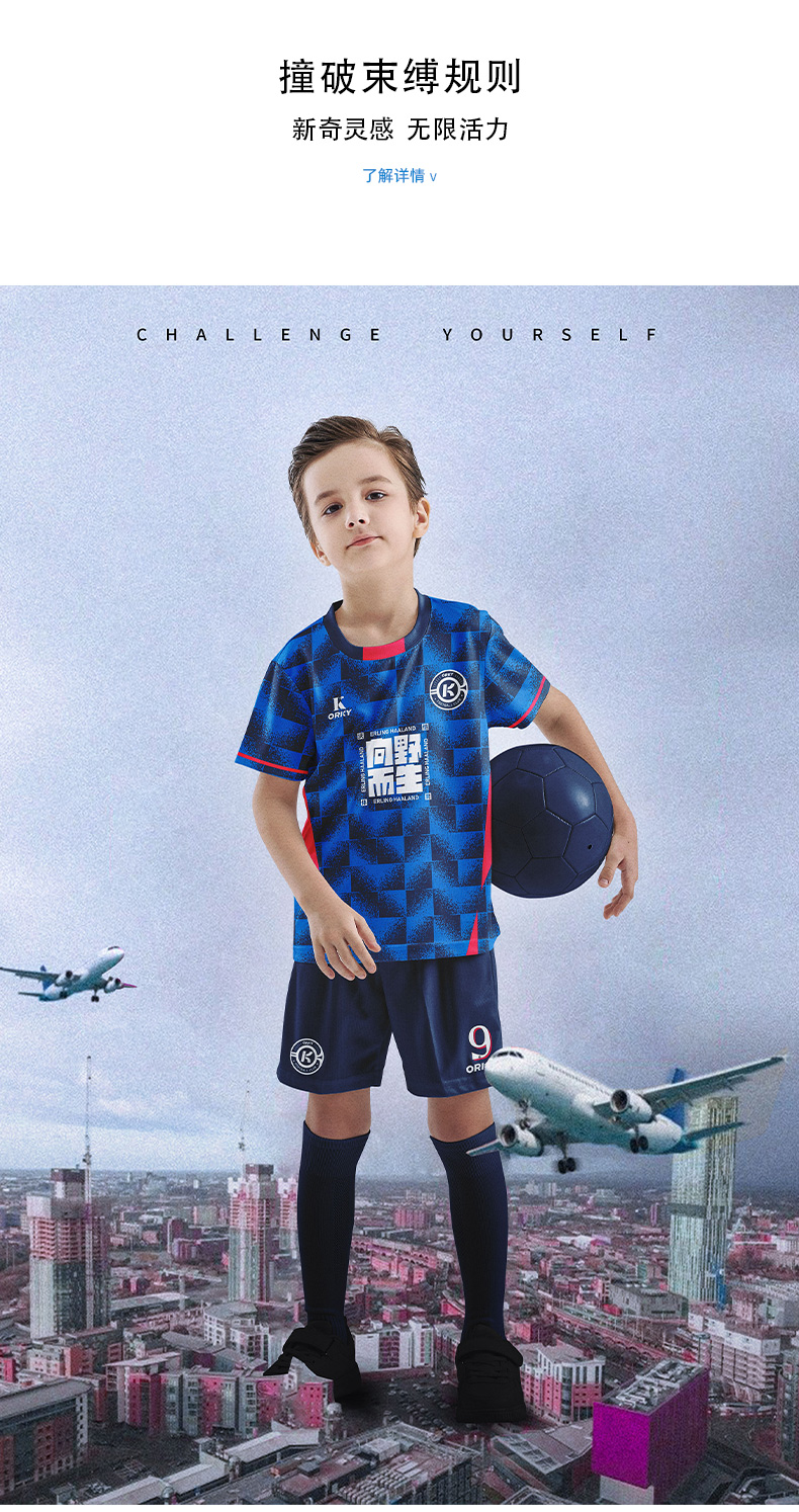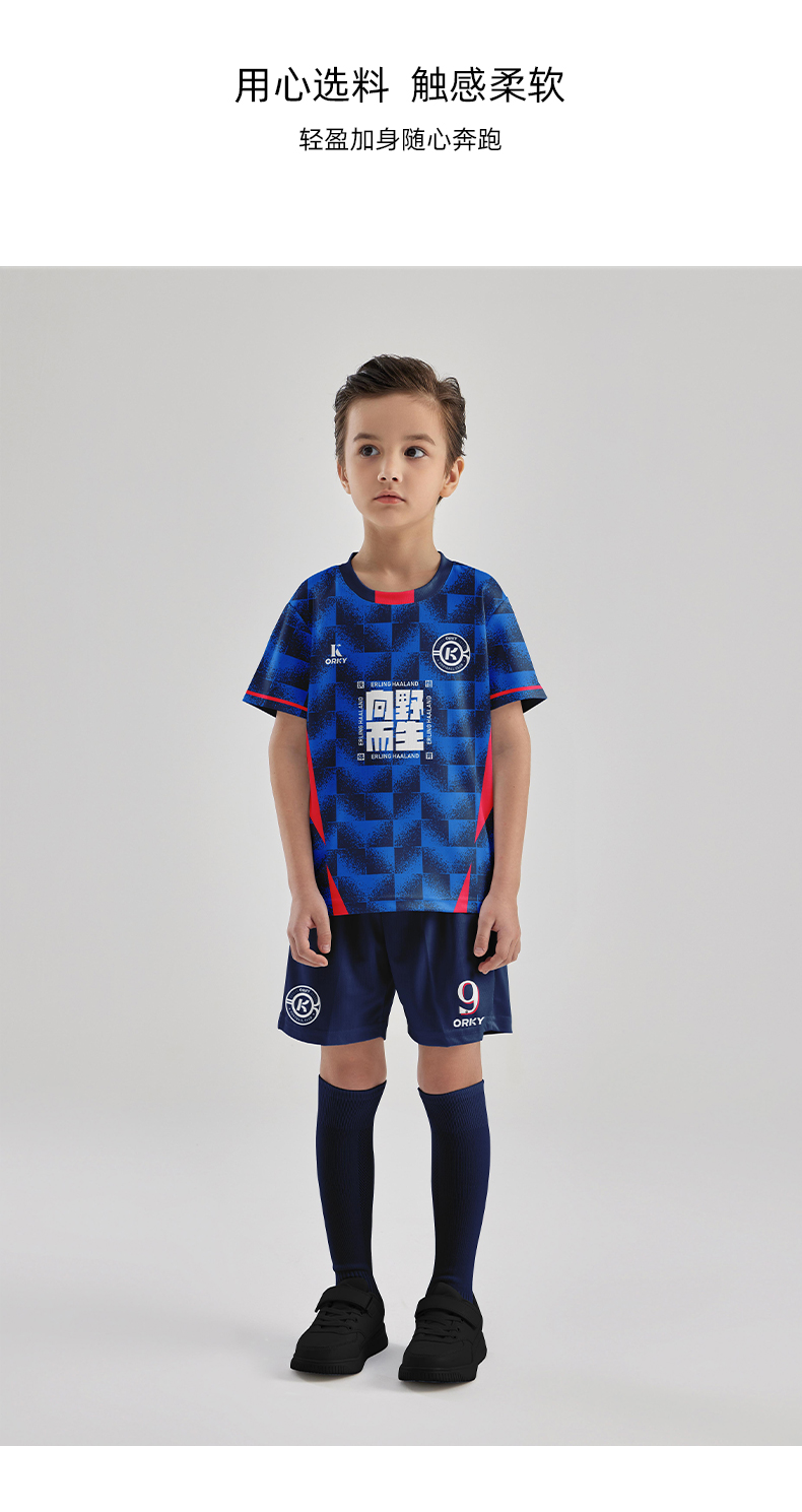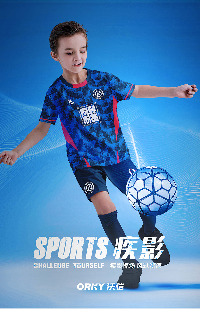 orky沃恺新品儿童足球服套装男童定制小学生比赛队服光板训练球衣