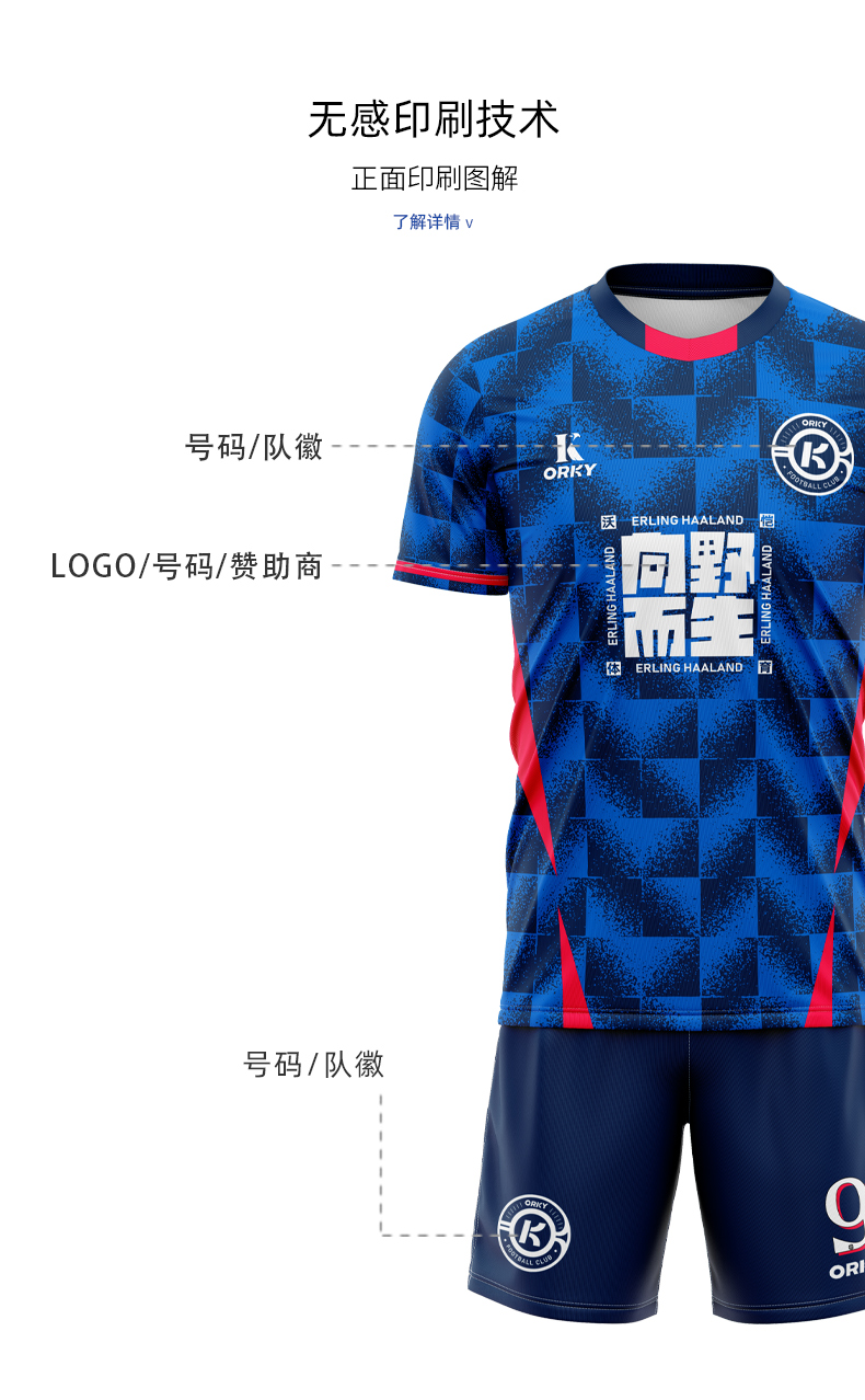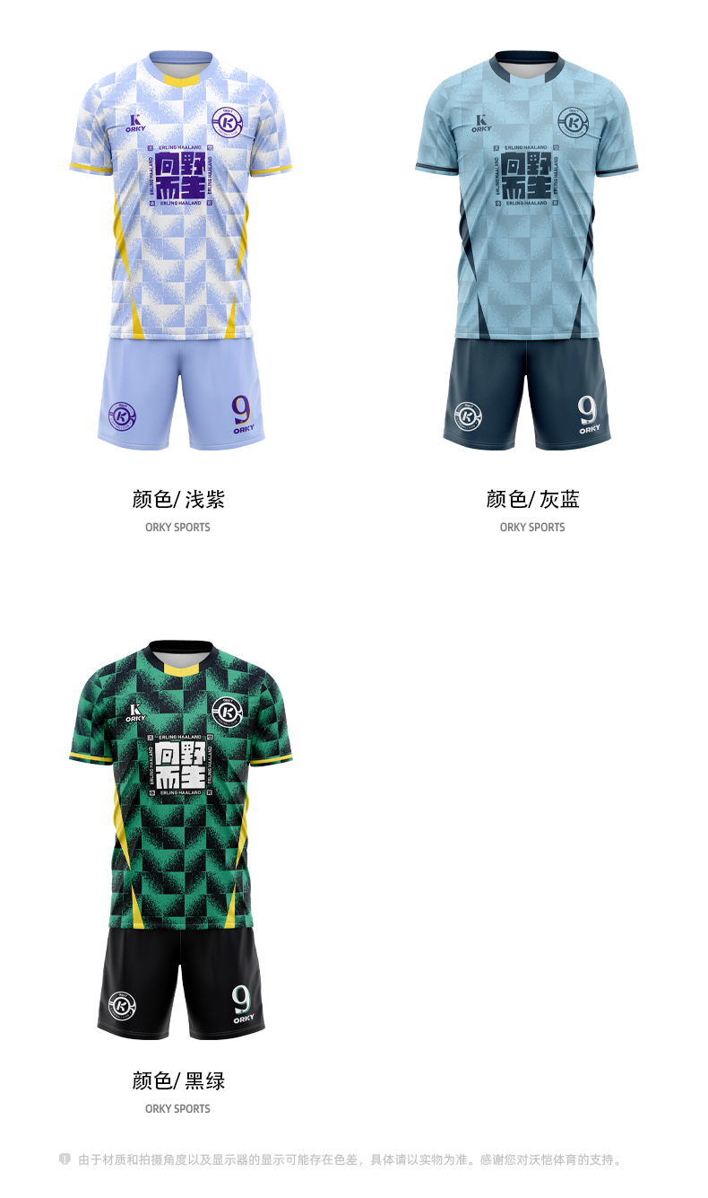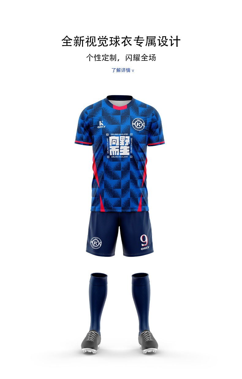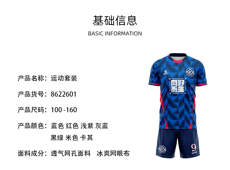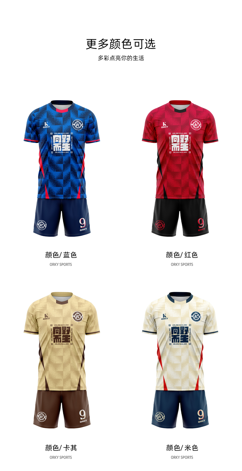orky沃恺新品儿童足球服套装男童定制小学生比赛队服光板训练球衣