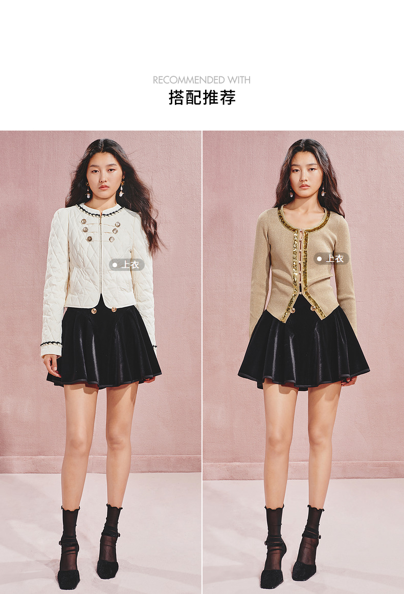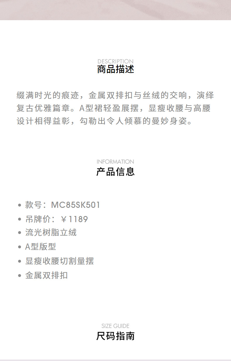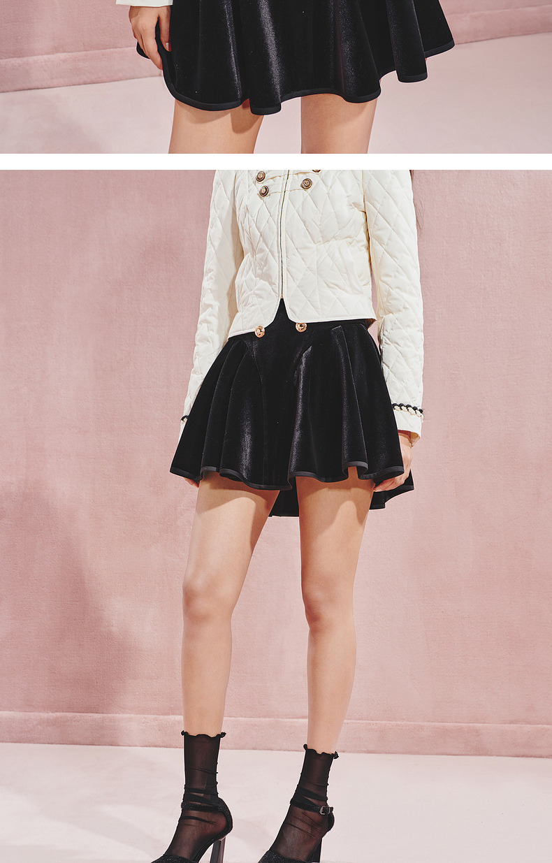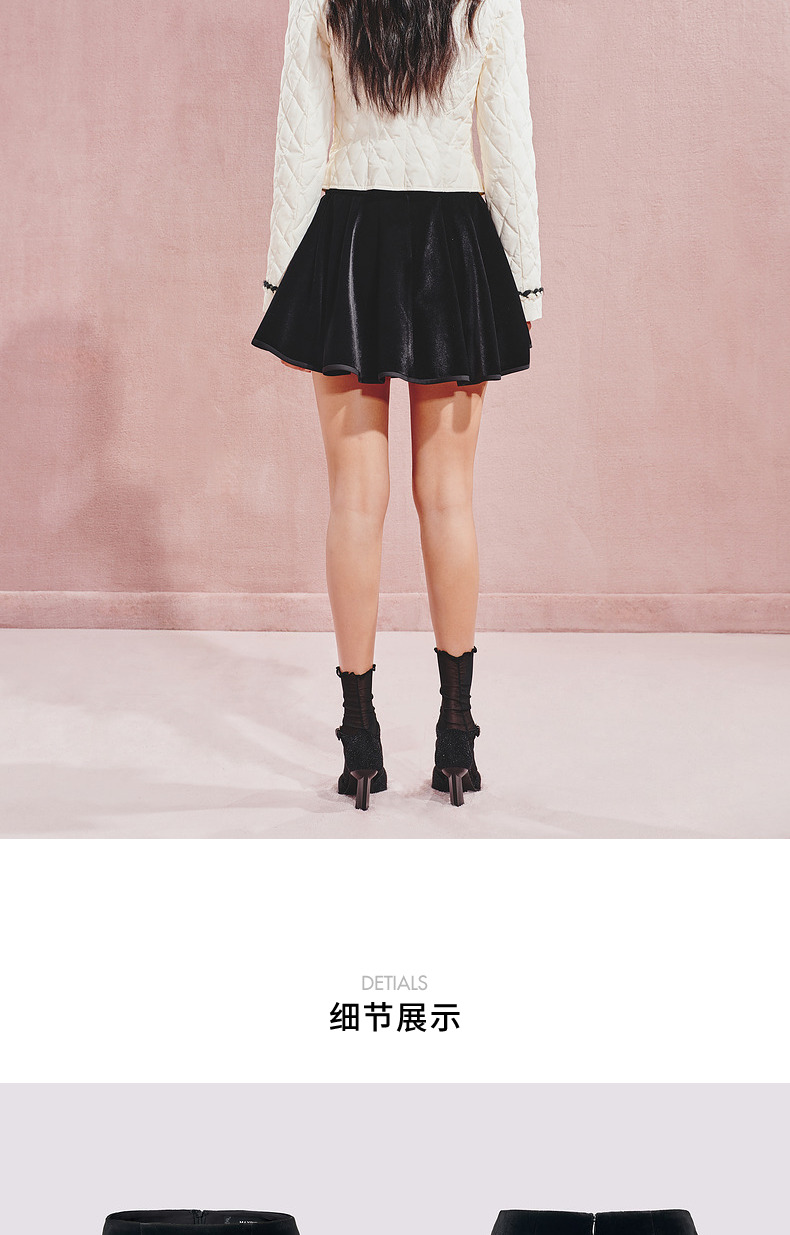 MAXRIENY【商场同款】MAXRIENY精致休闲感丝绒半裙新款高腰A字裙(货号:MC85SK501)