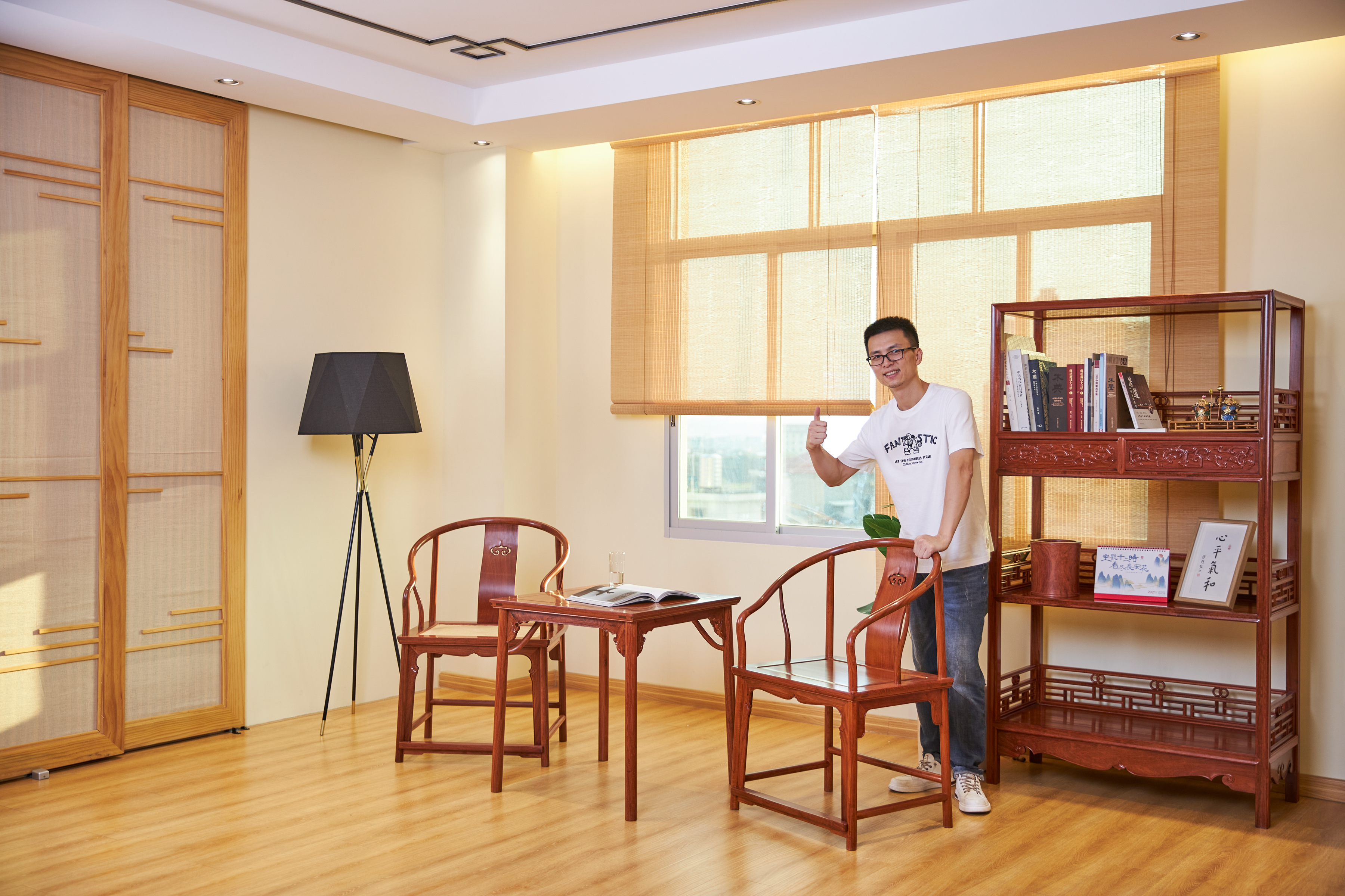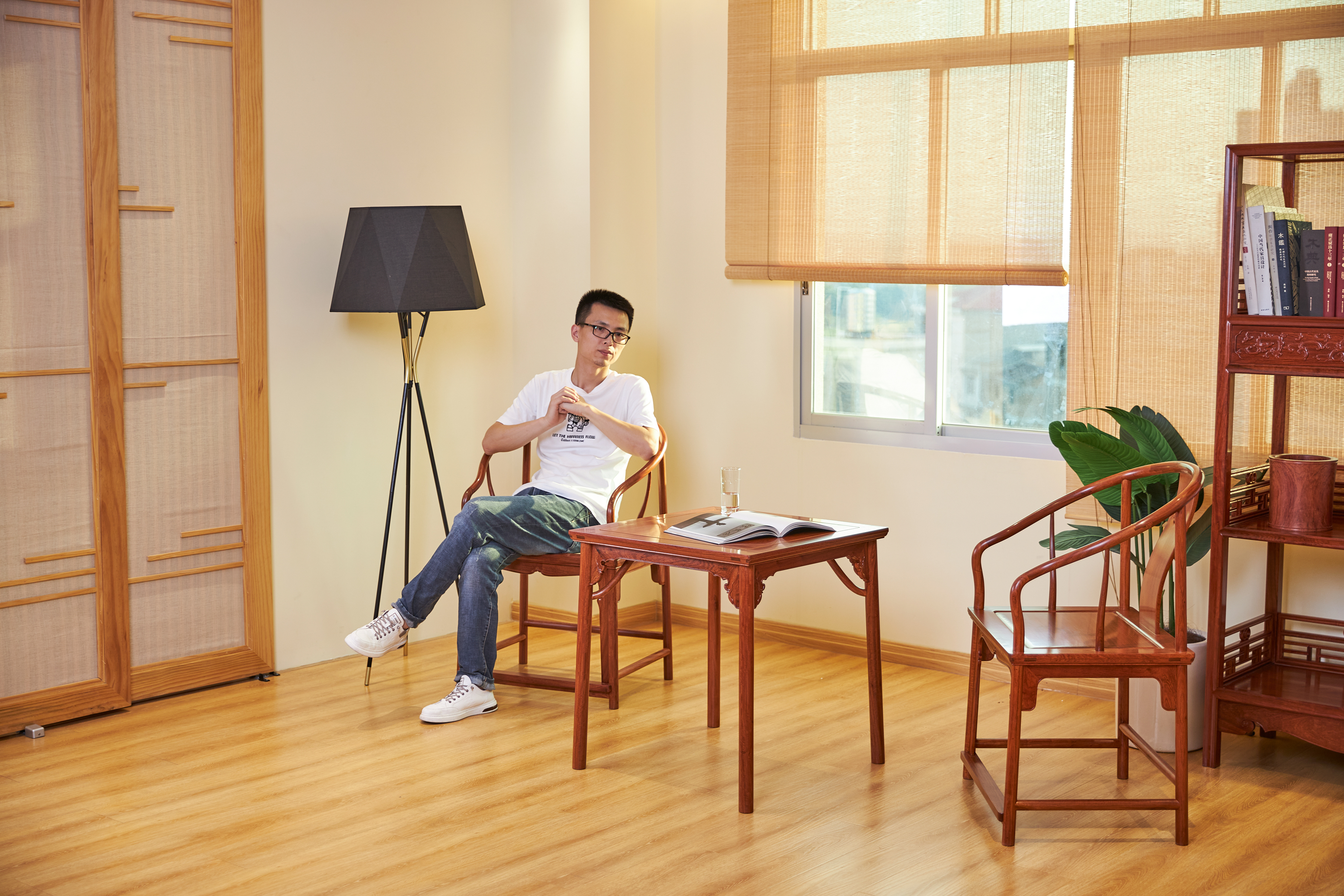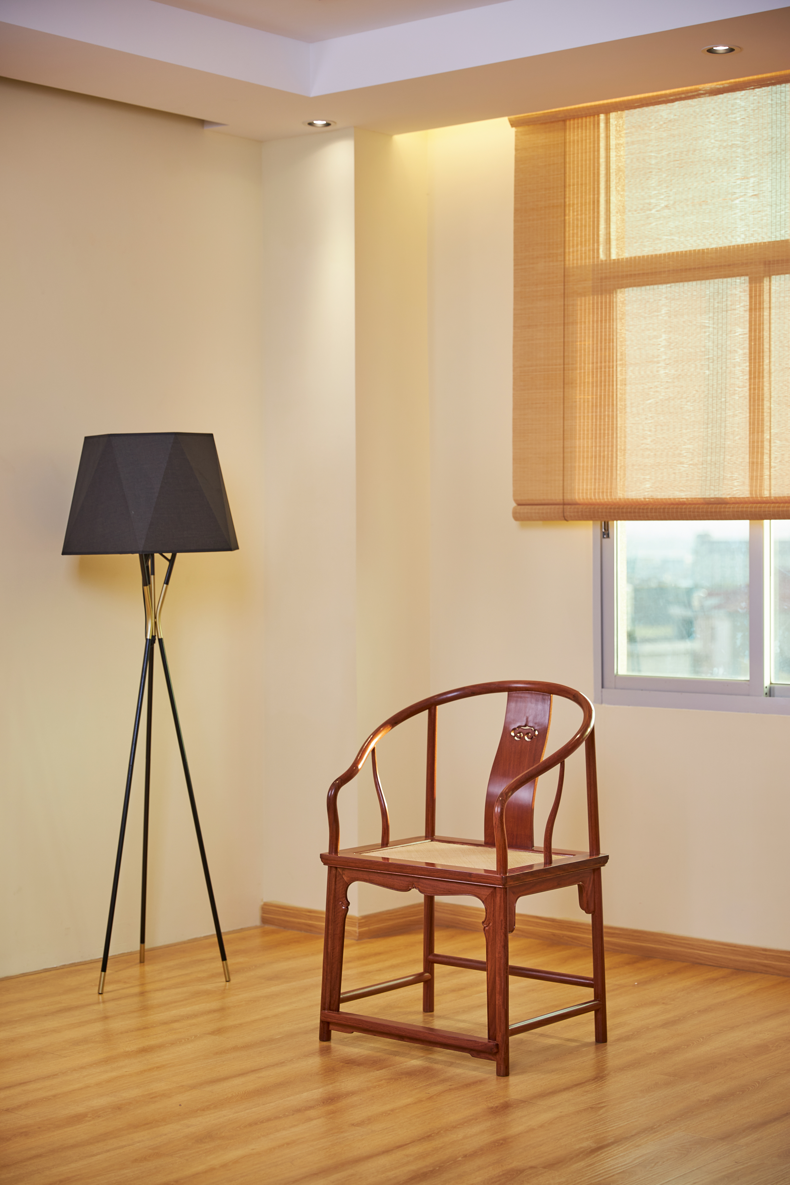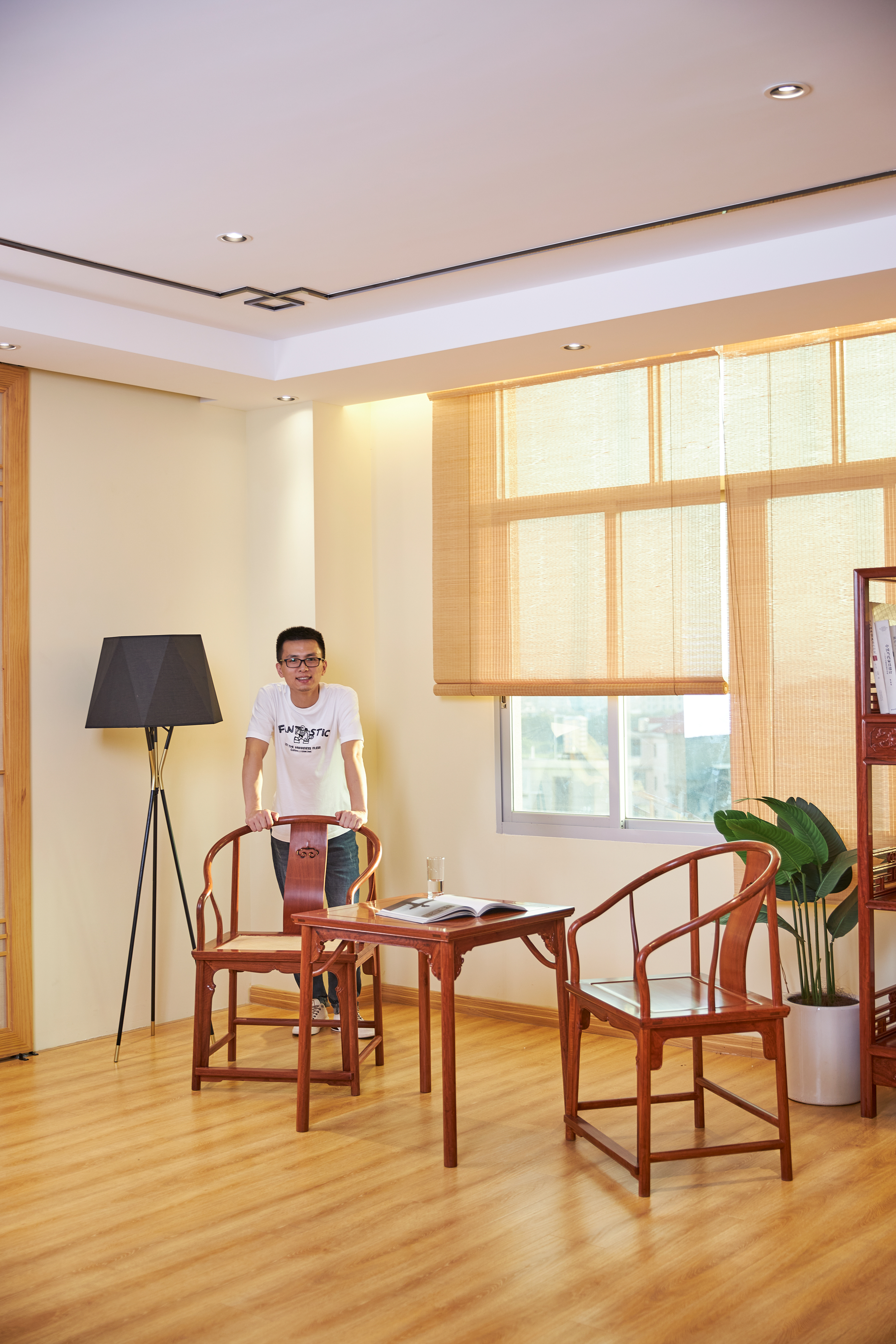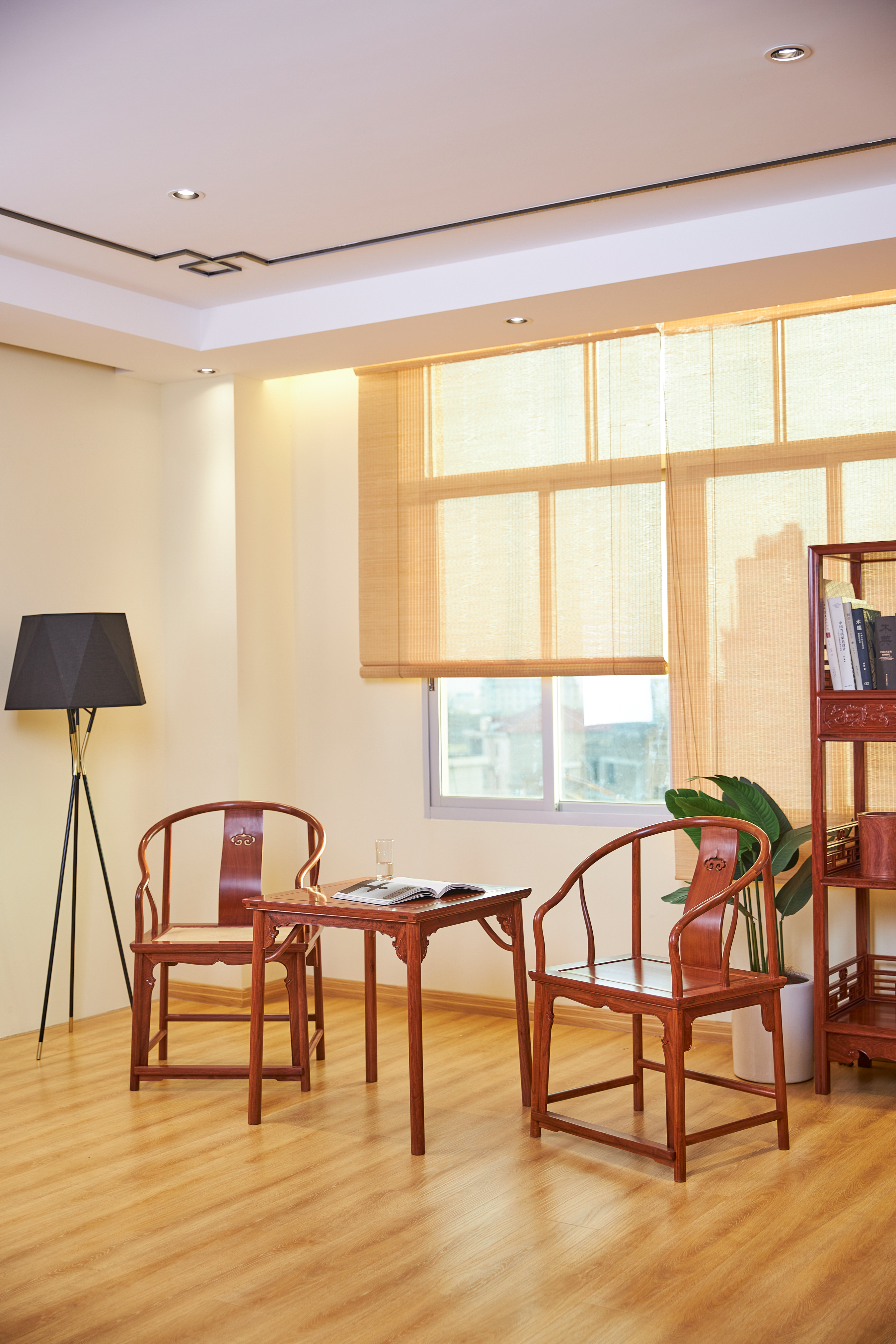 此款圈椅三件套的基本设计,有两个灵感来源,一是赫赫有名的安思远藤条垂手圈椅,二是改正统的小茶几为小棋桌。这种设计打破了传统圈椅更适合在室内陈设使用的惯例,赋予了它更为休闲和灵活的应用场景。