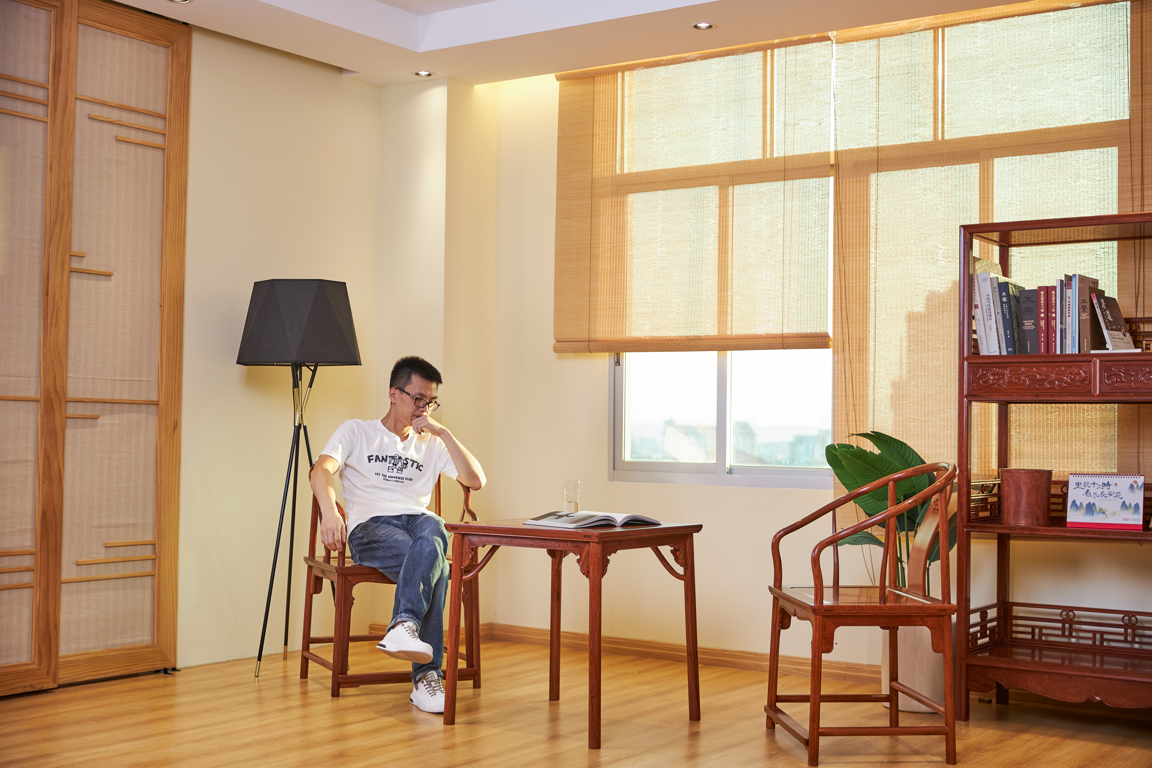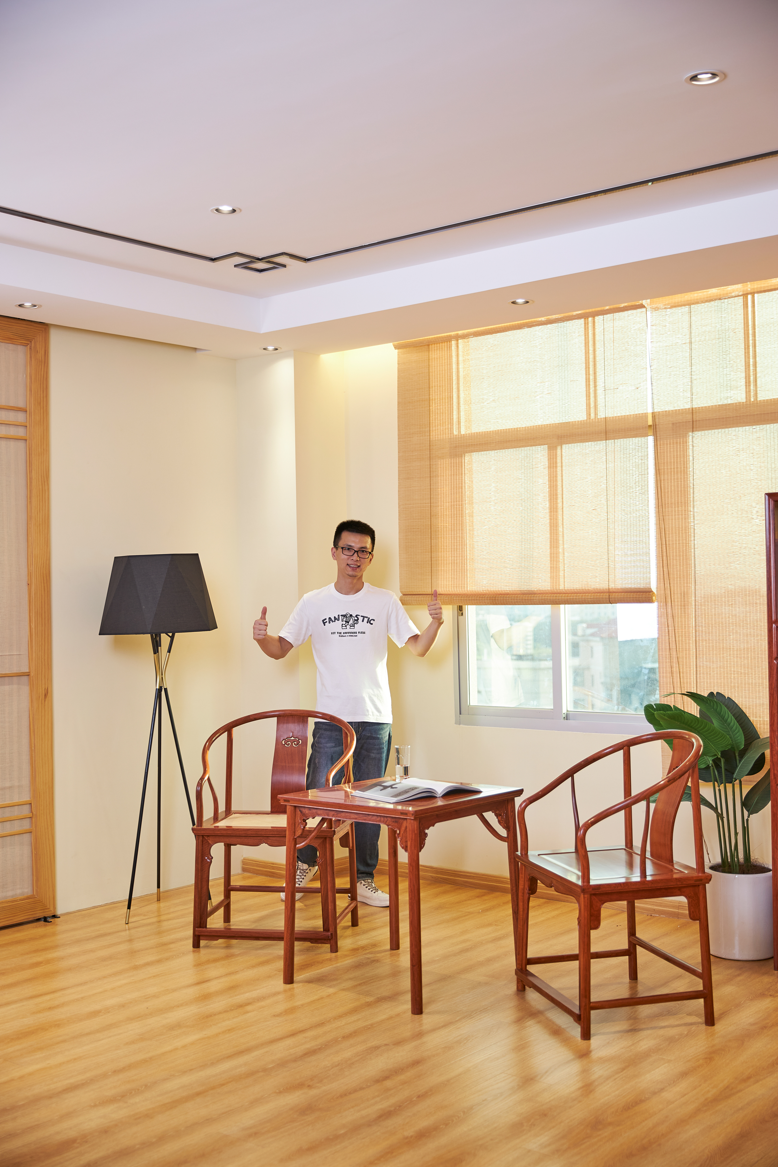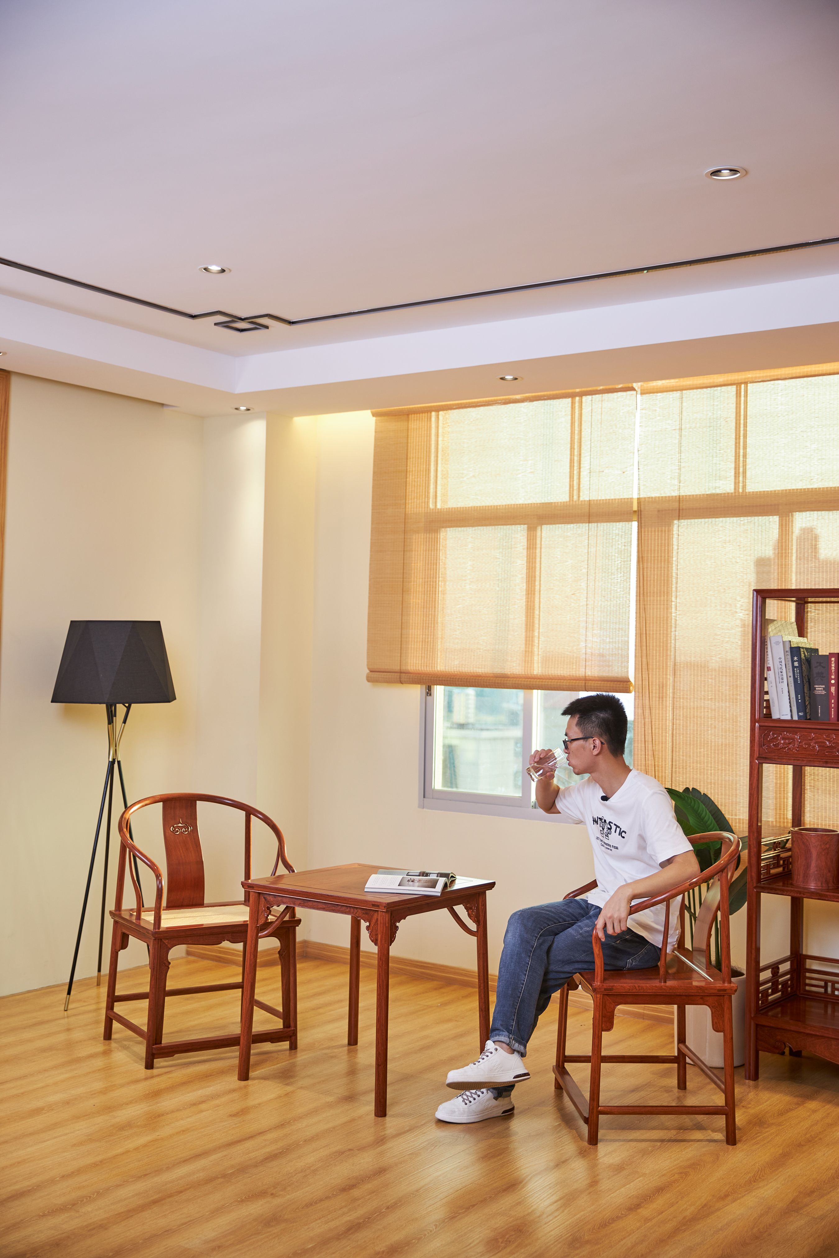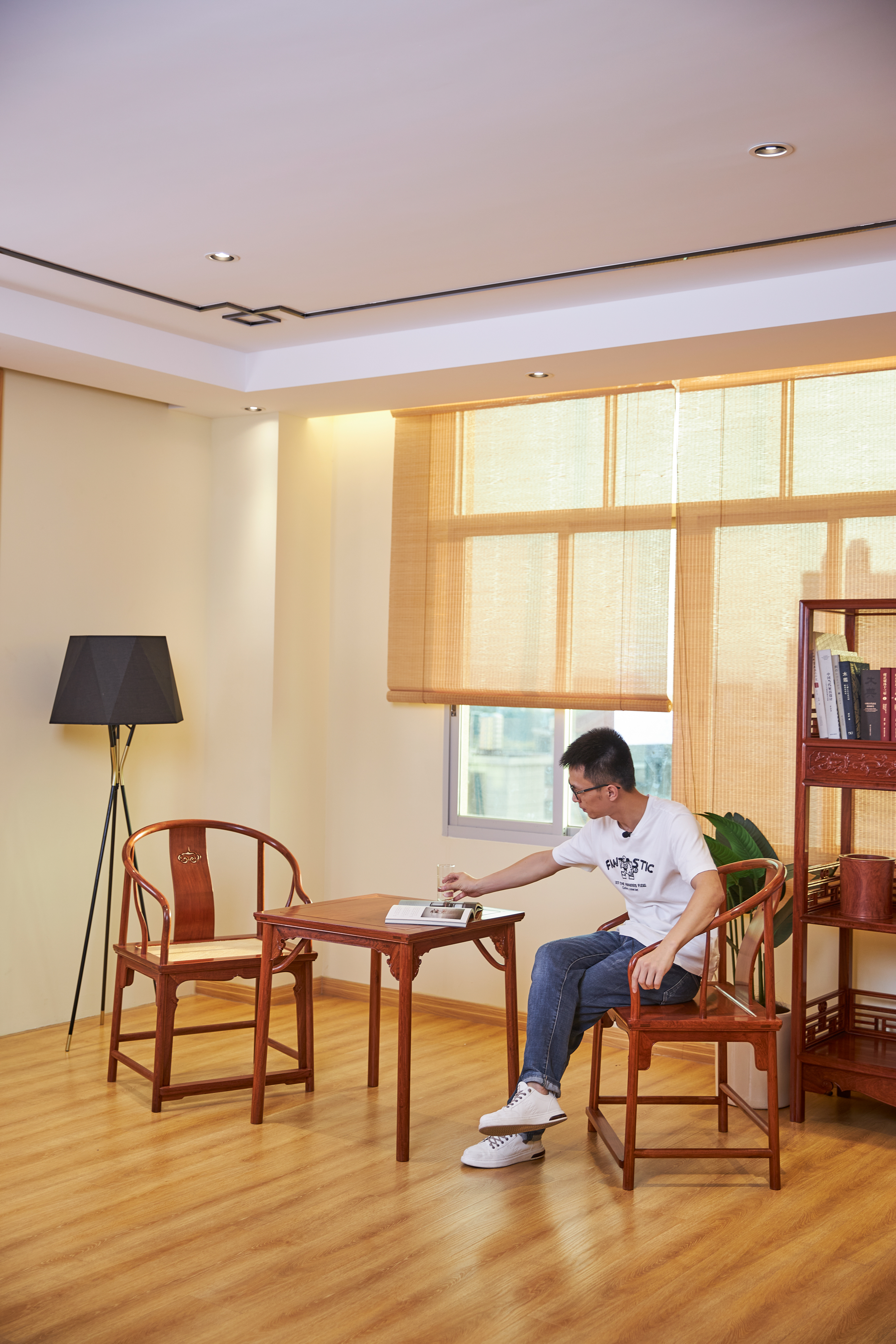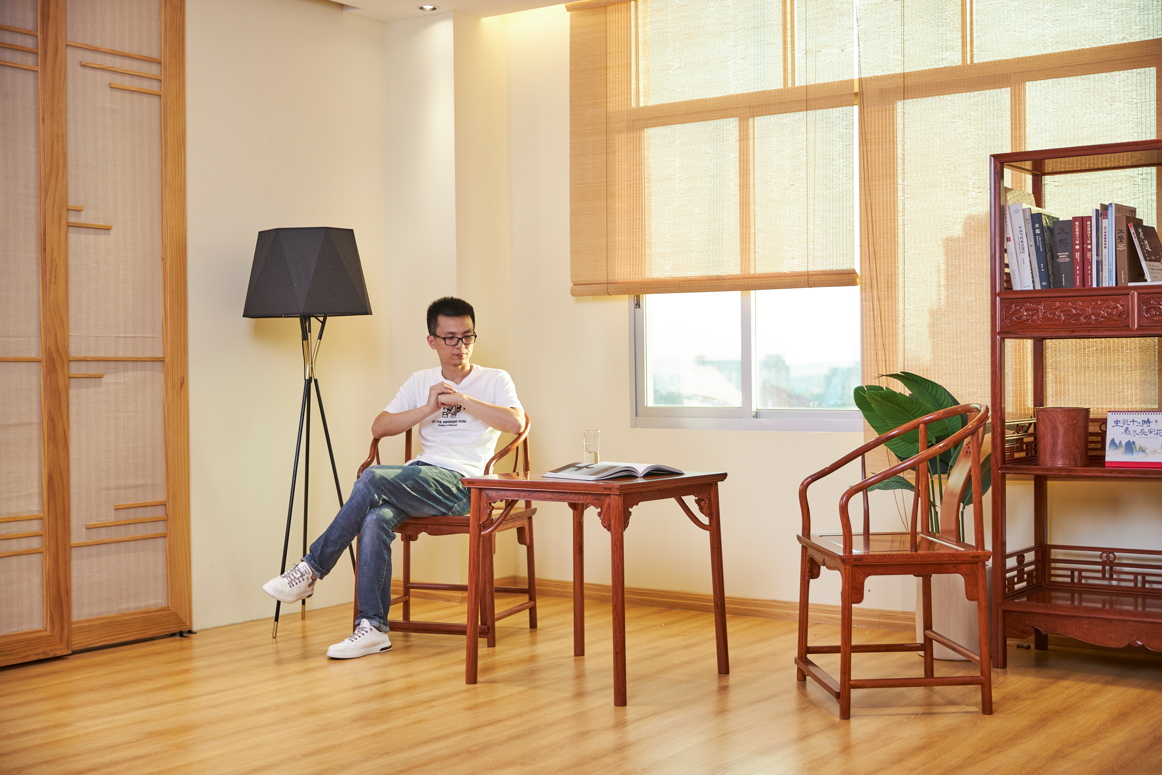 此款圈椅三件套的基本设计,有两个灵感来源,一是赫赫有名的安思远藤条垂手圈椅,二是改正统的小茶几为小棋桌。这种设计打破了传统圈椅更适合在室内陈设使用的惯例,赋予了它更为休闲和灵活的应用场景。