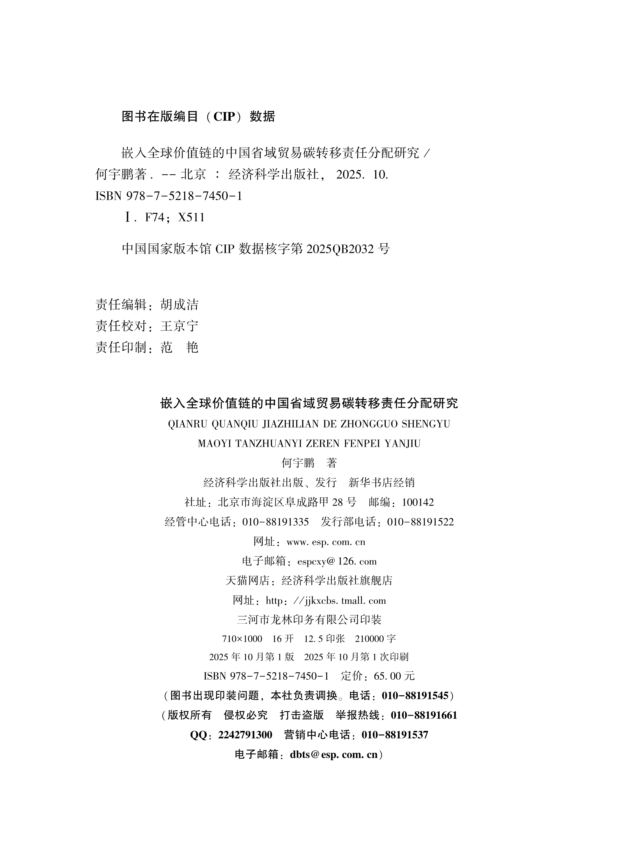 嵌入全球价值链的中国省域贸易碳转移责任分配研究