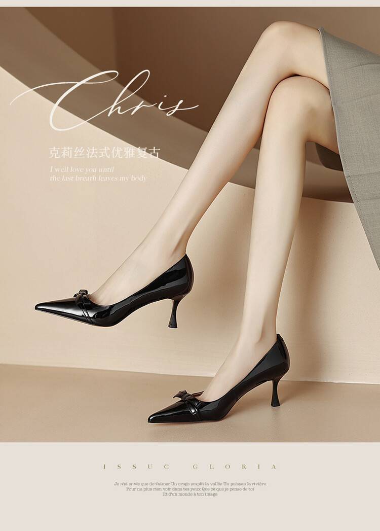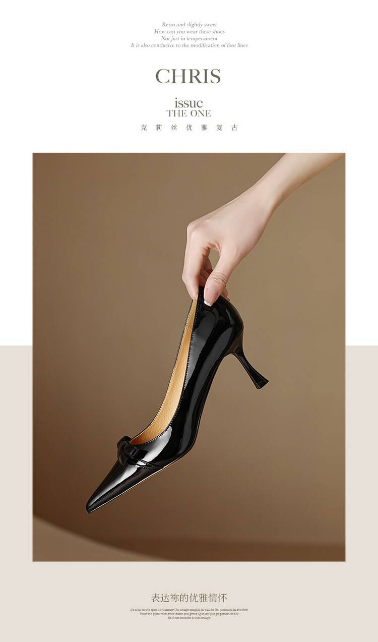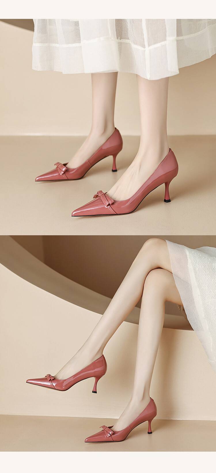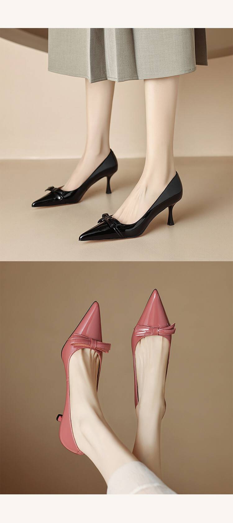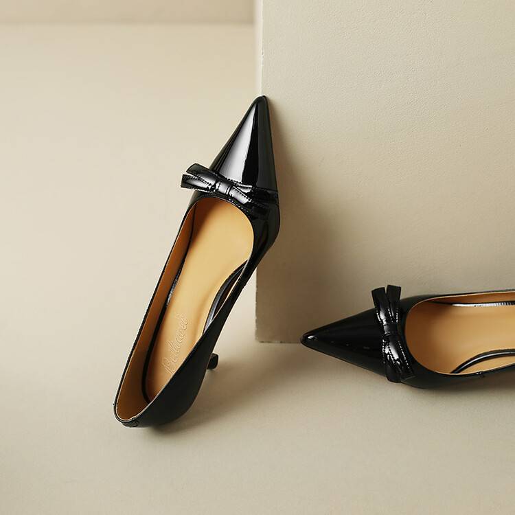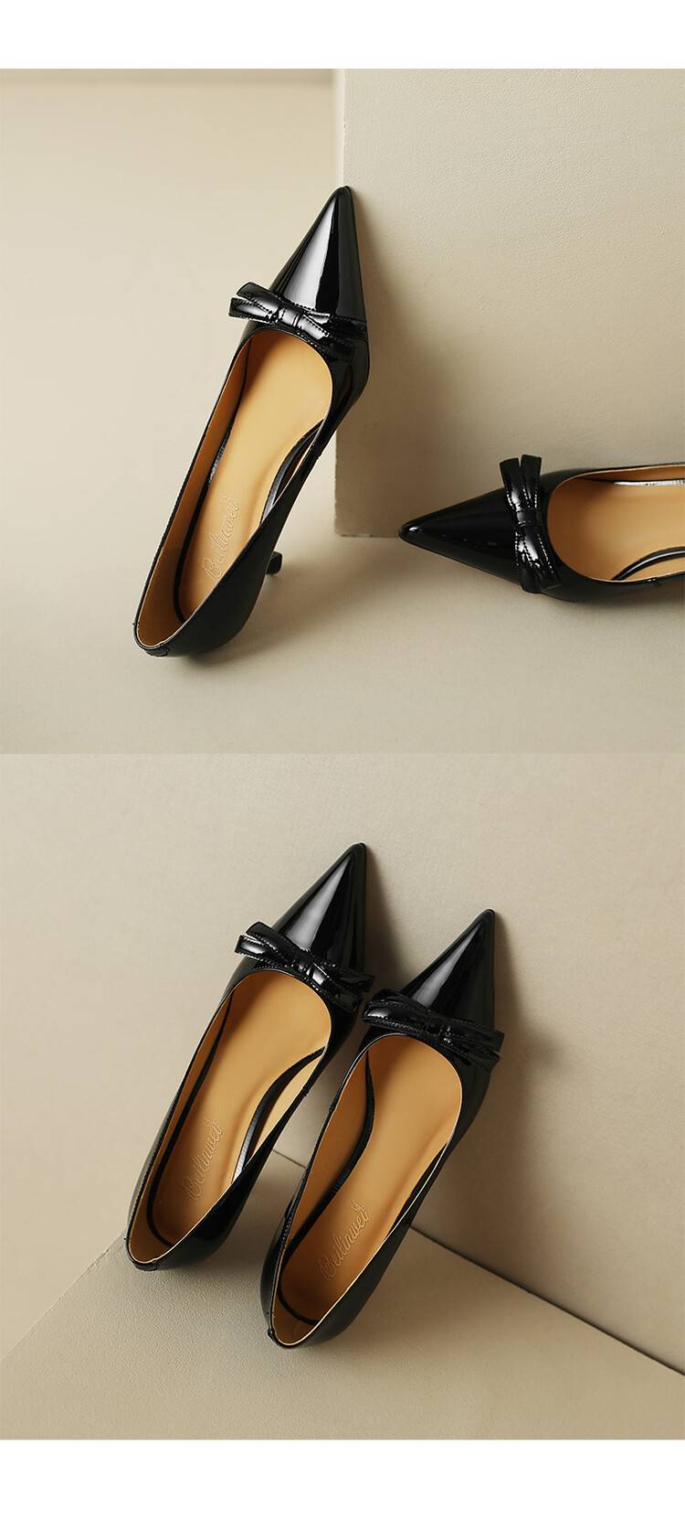 【预售5天】浅口高跟细跟工作鞋,蝴蝶结牛漆皮尖头时尚性感单鞋ZF&ZF3523