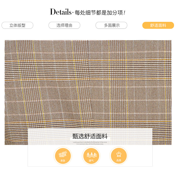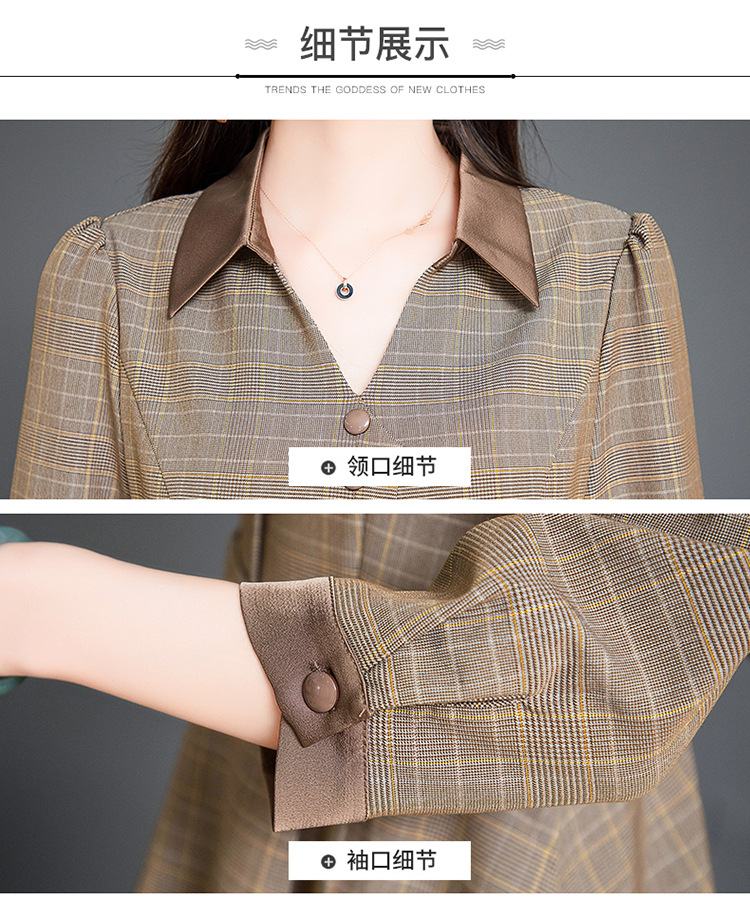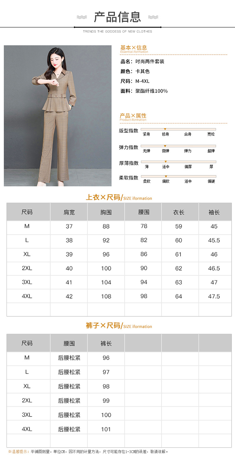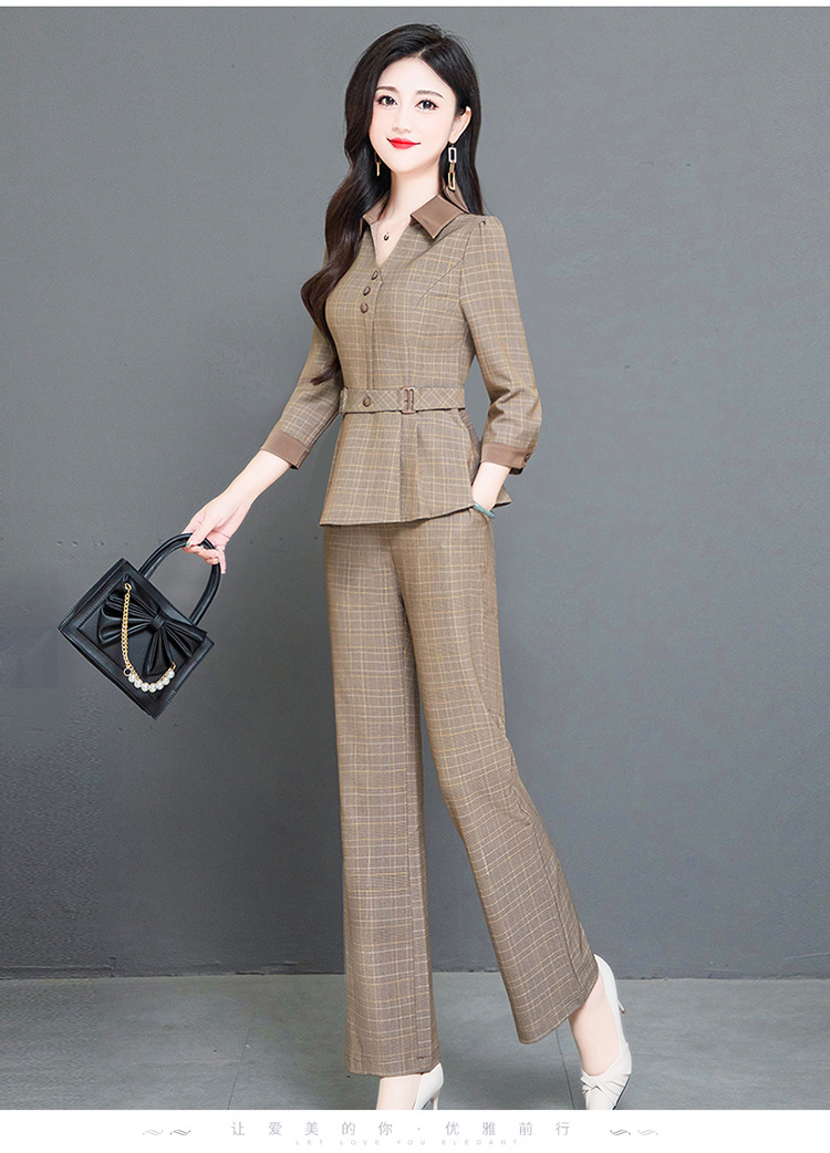 DD-时尚格纹两件套秋季新款职业女装长袖上衣直筒长裤优雅气质套装