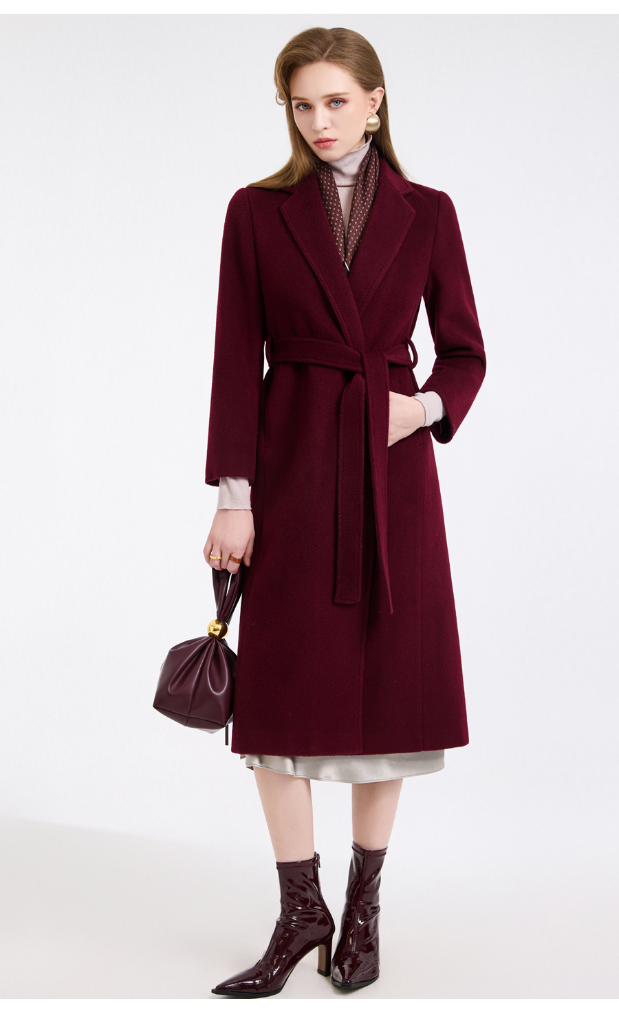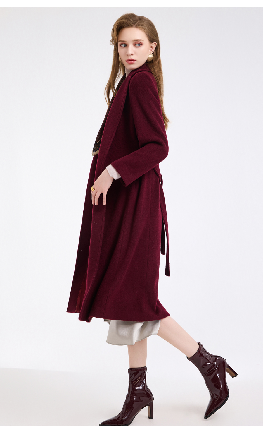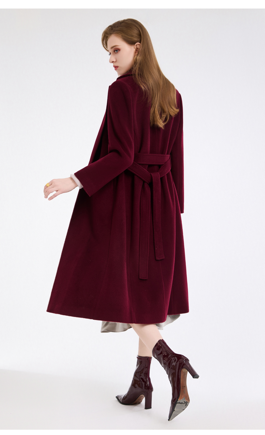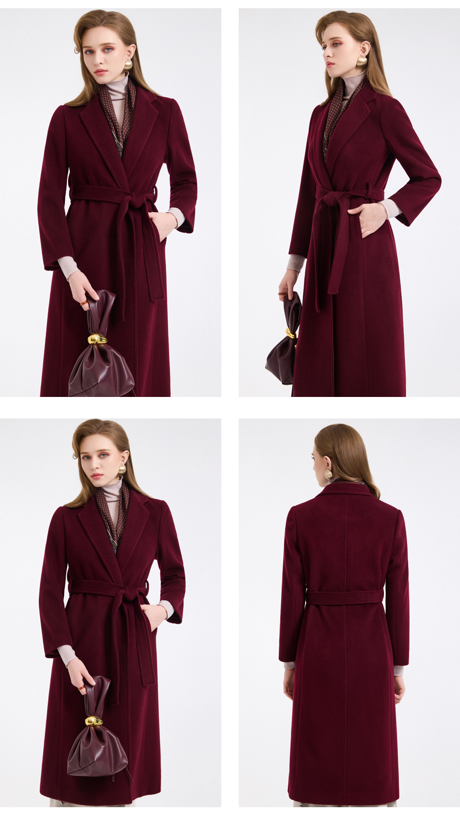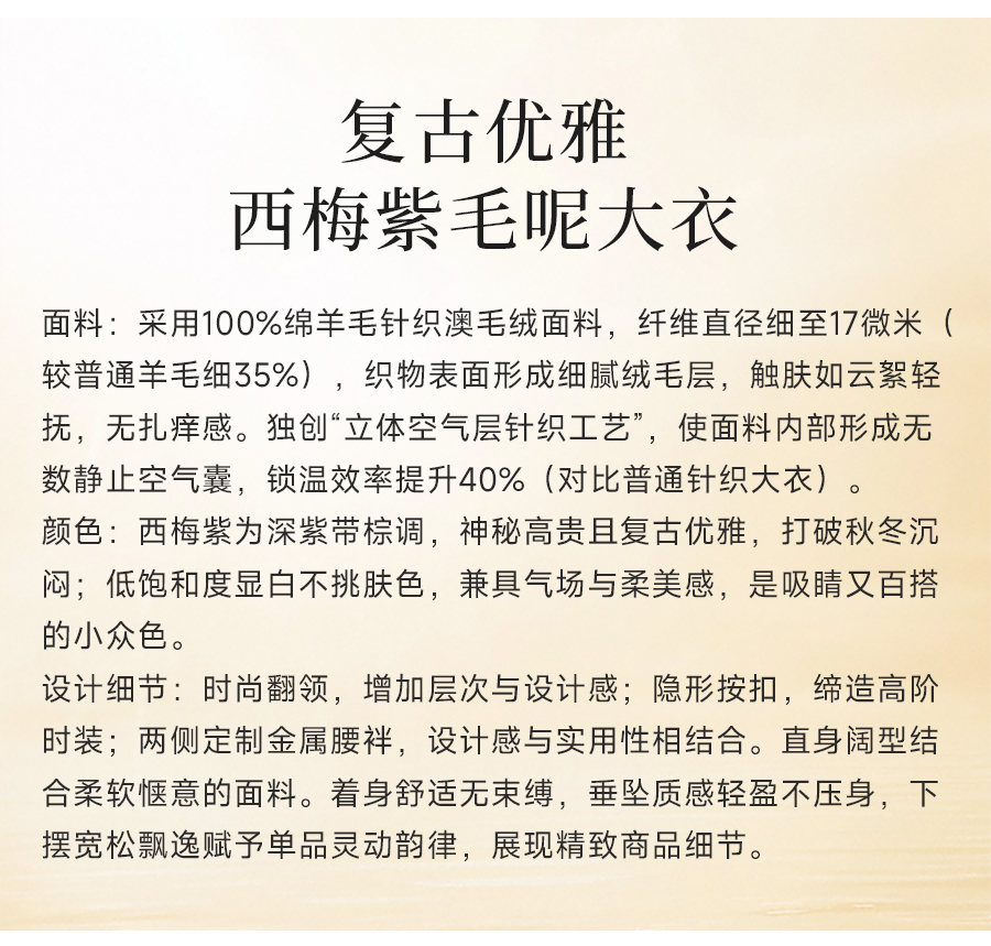 【100%绵羊毛】乔万尼新品轻奢复古优雅系带羊毛长款保暖毛呢大衣ED4A768