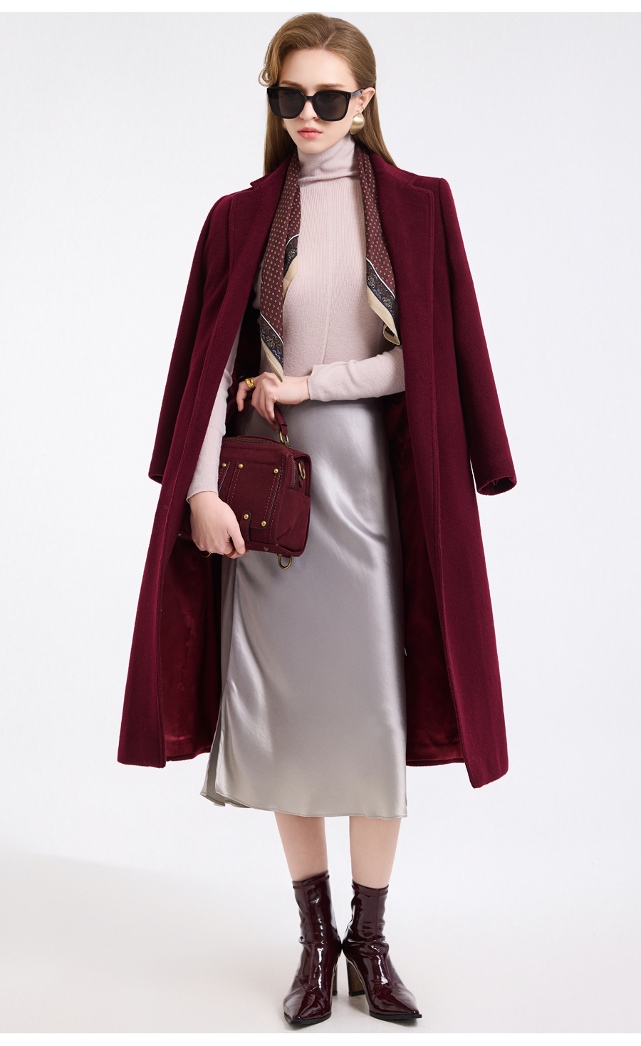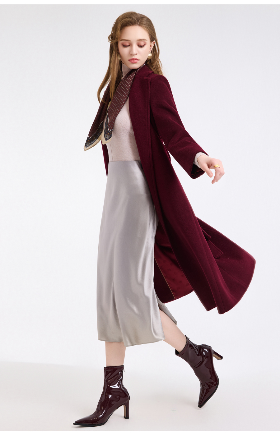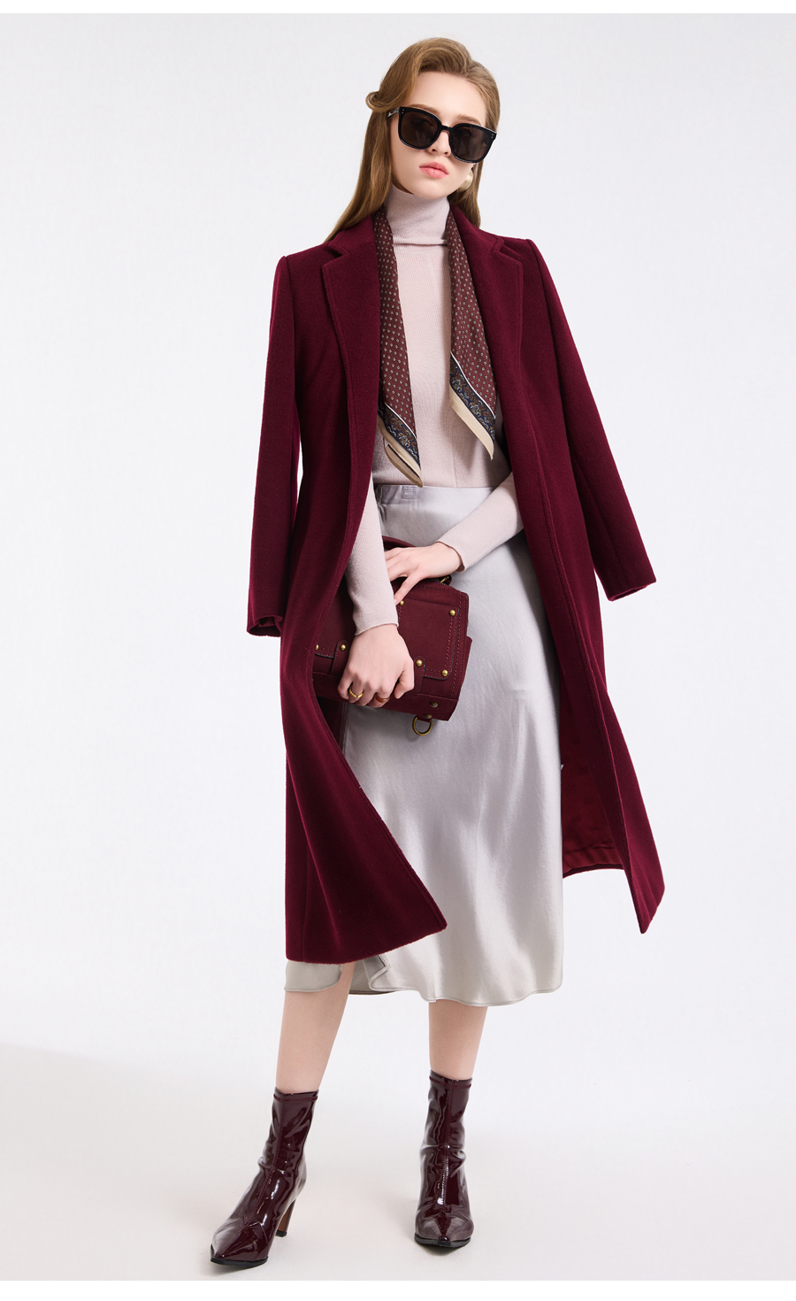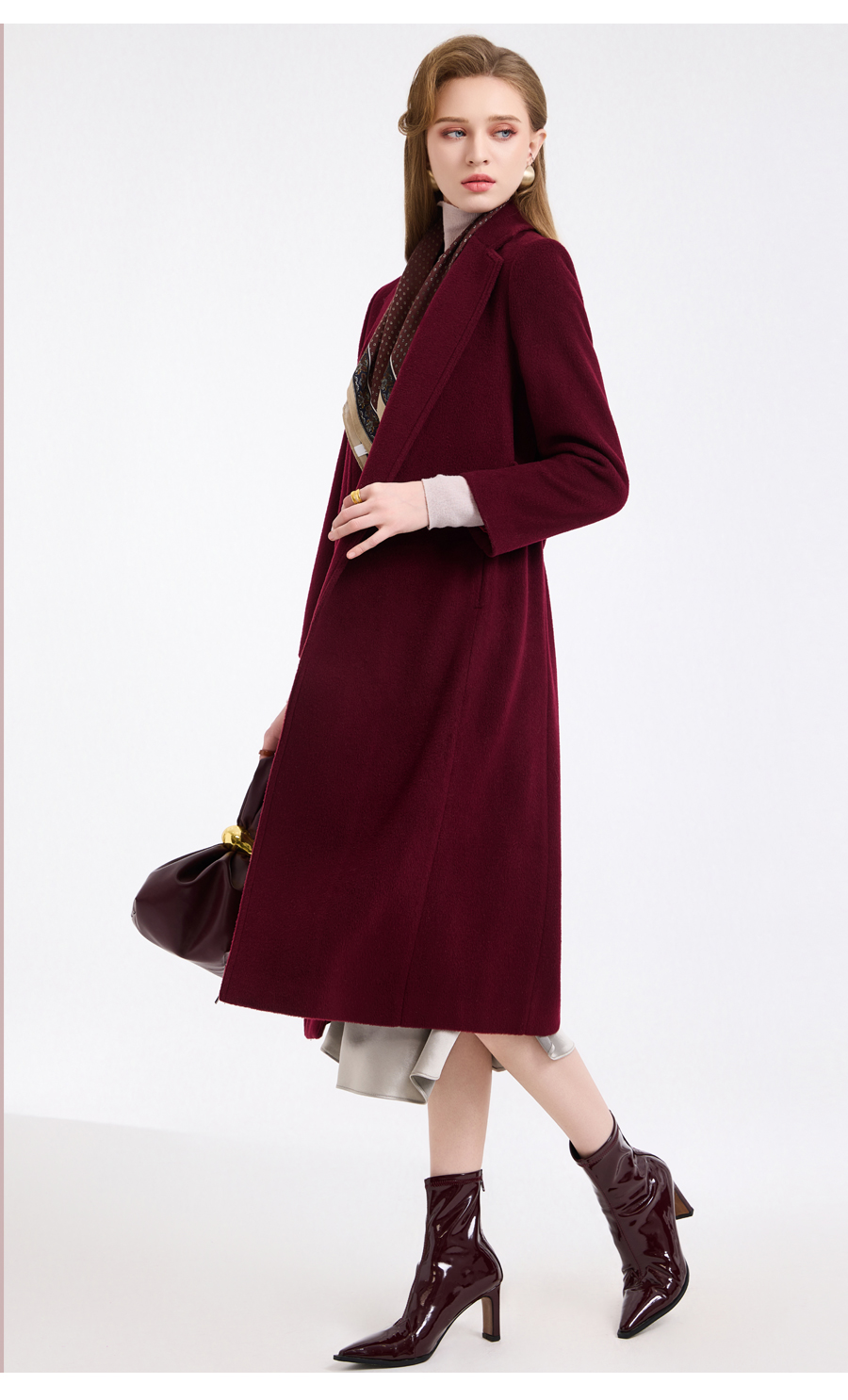 【100%绵羊毛】乔万尼新品轻奢复古优雅系带羊毛长款保暖毛呢大衣ED4A768