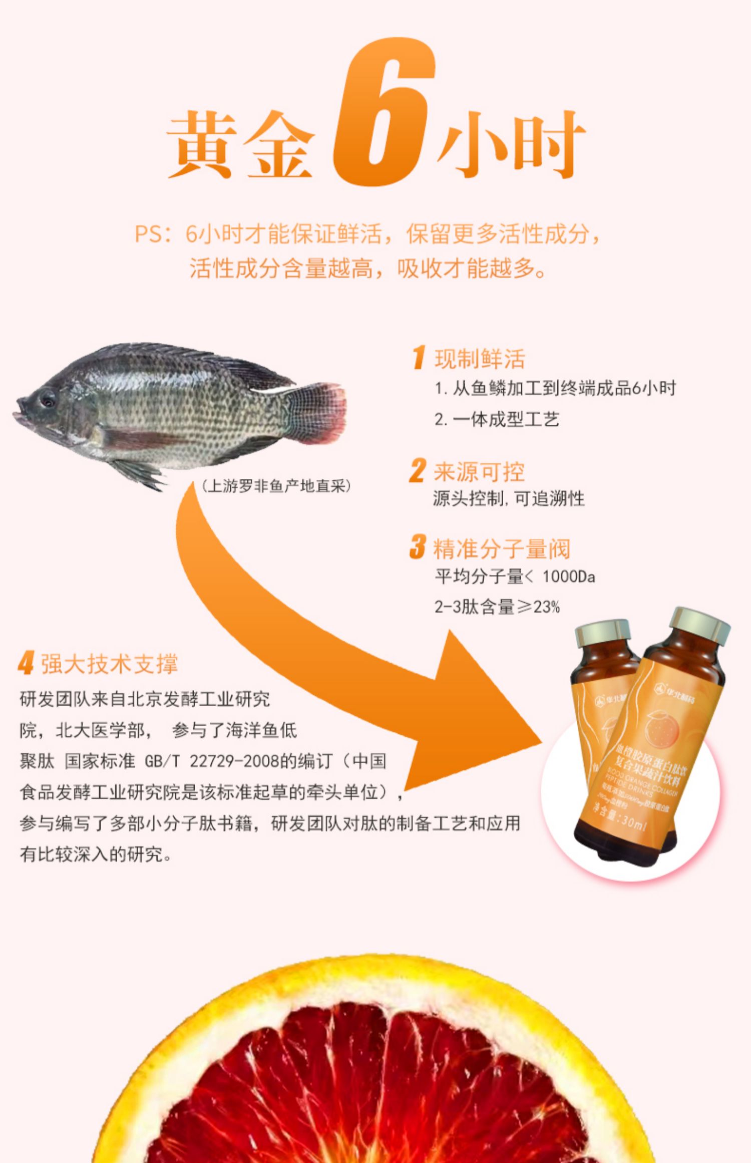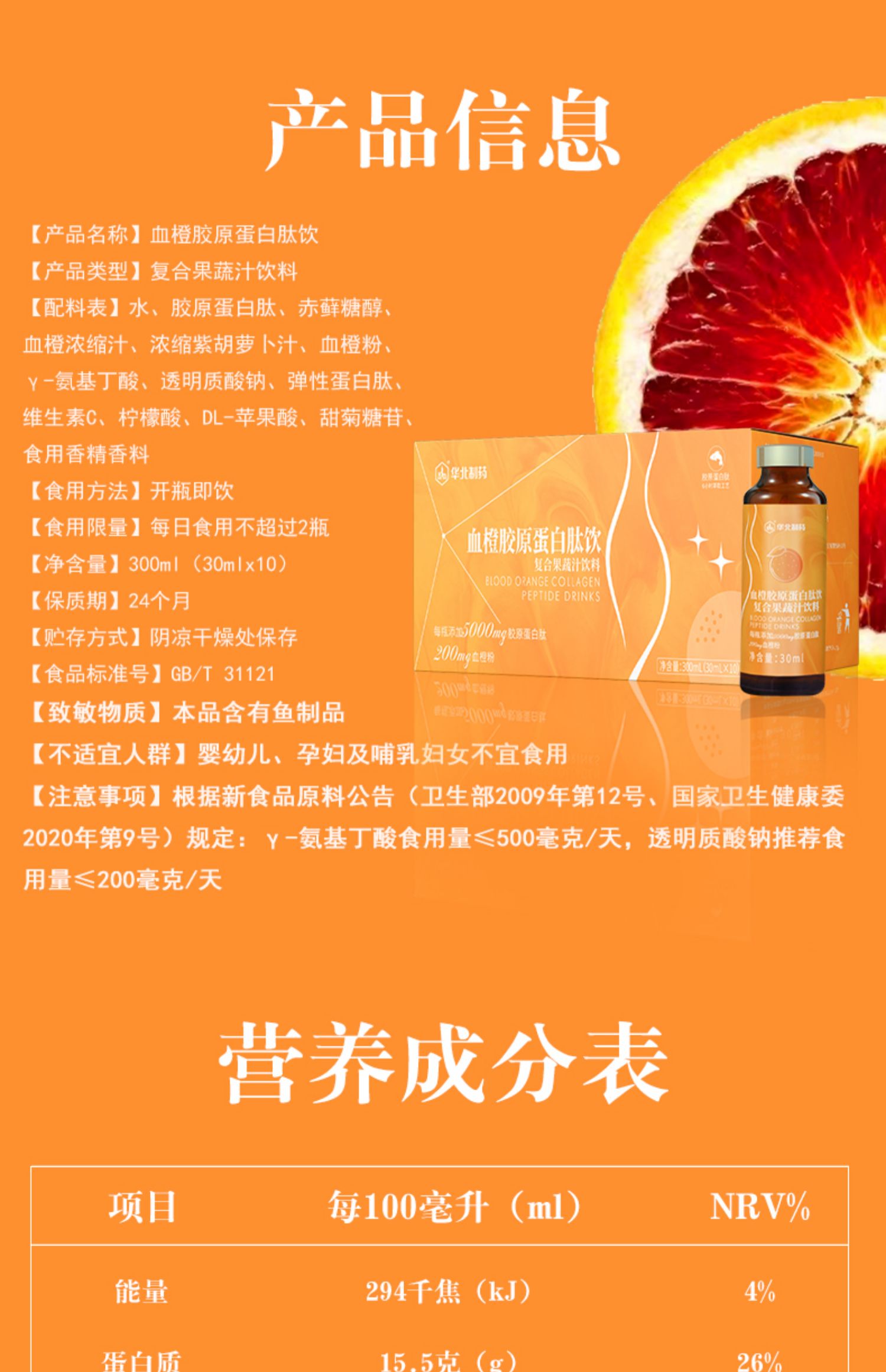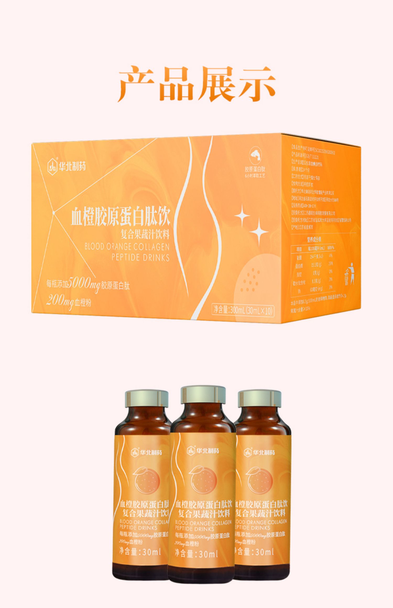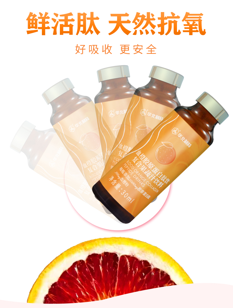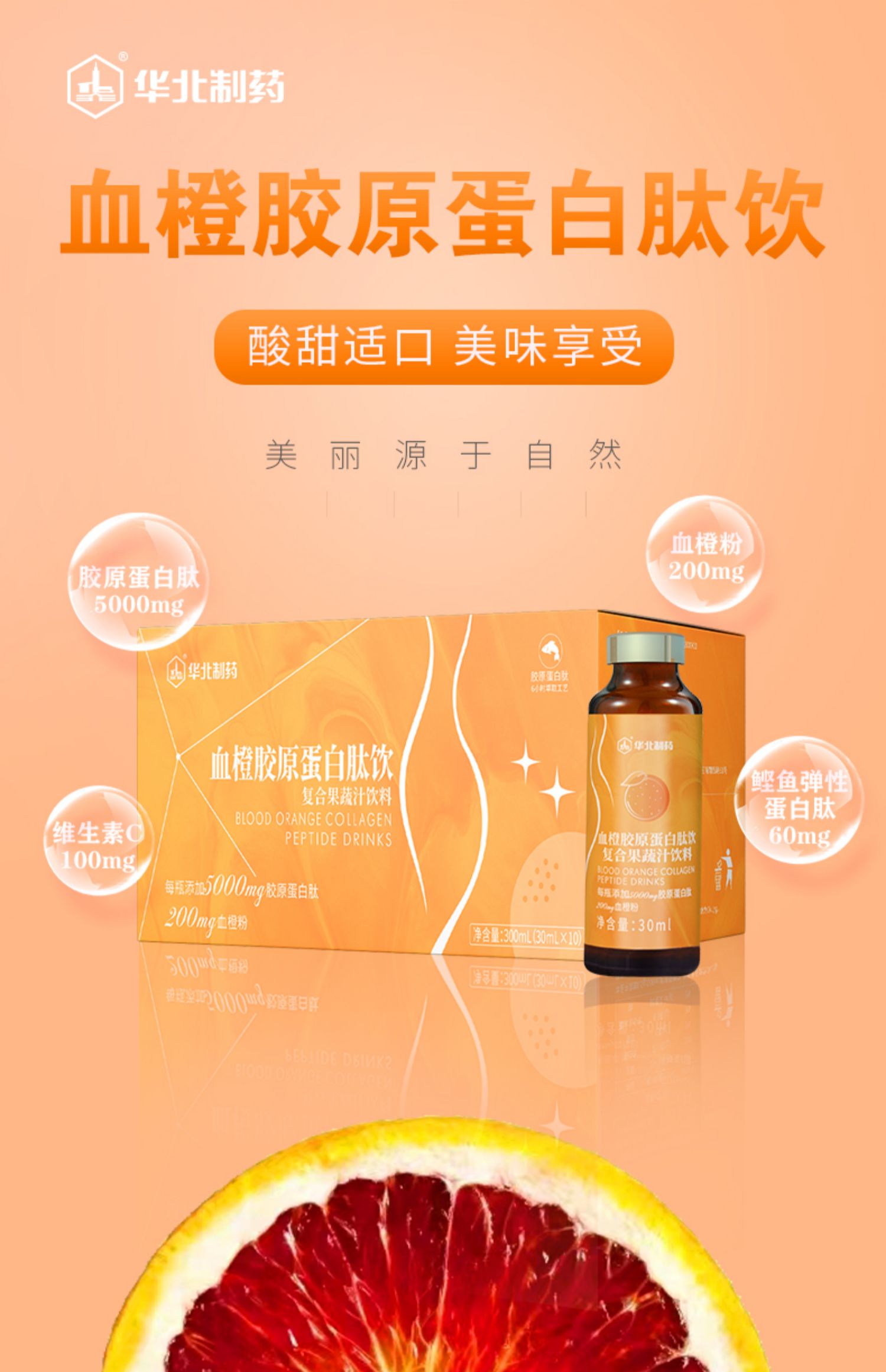 华北制药血橙胶原蛋白肽复合果蔬汁口服液精华饮 30mlx10瓶/盒 鲜活肽 天然抗氧