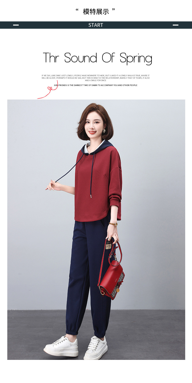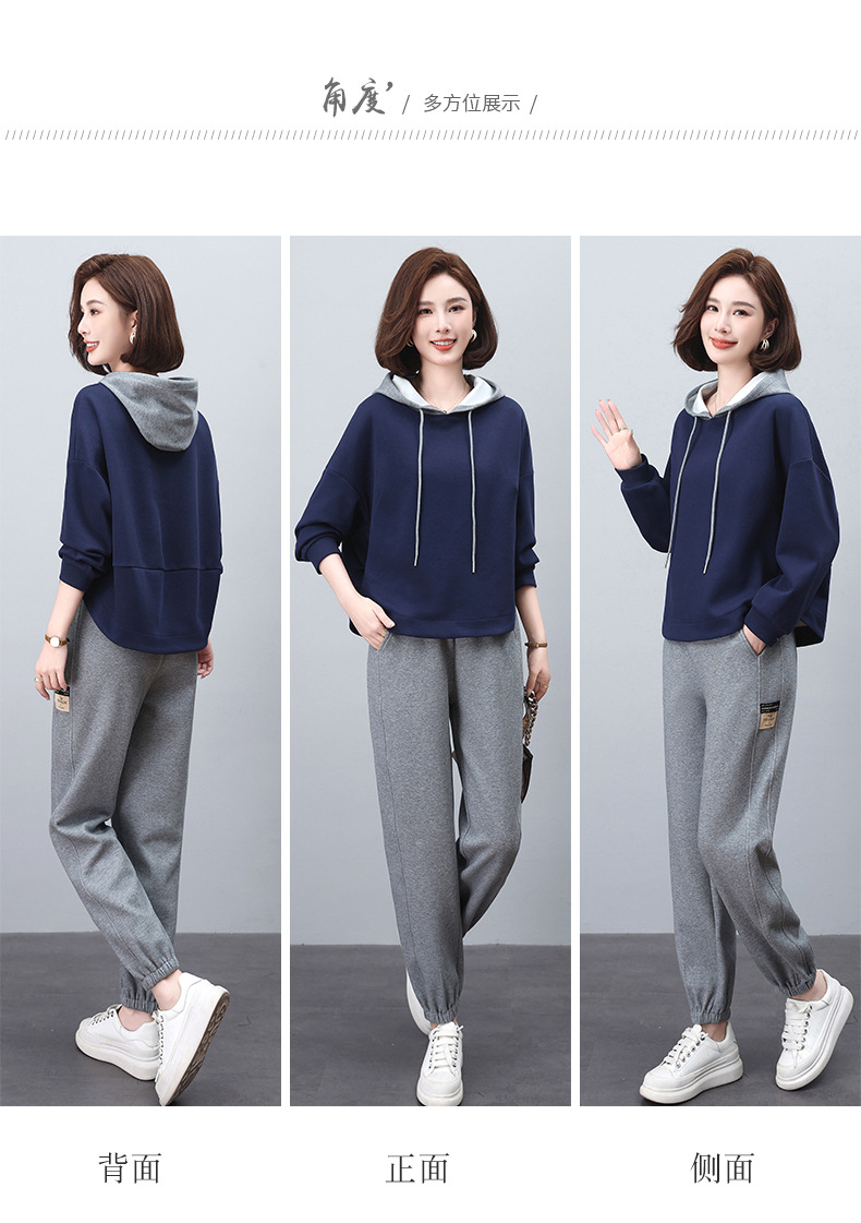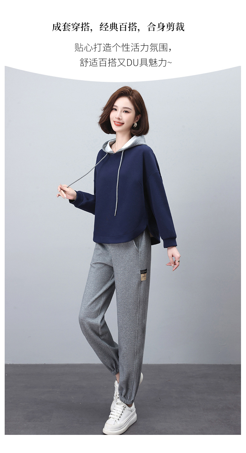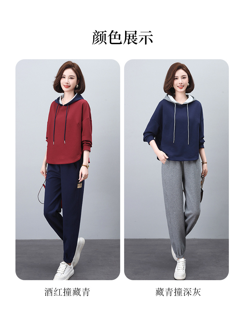 百媚生 休闲拼色连帽卫衣时尚显瘦两件套BKYLDS606