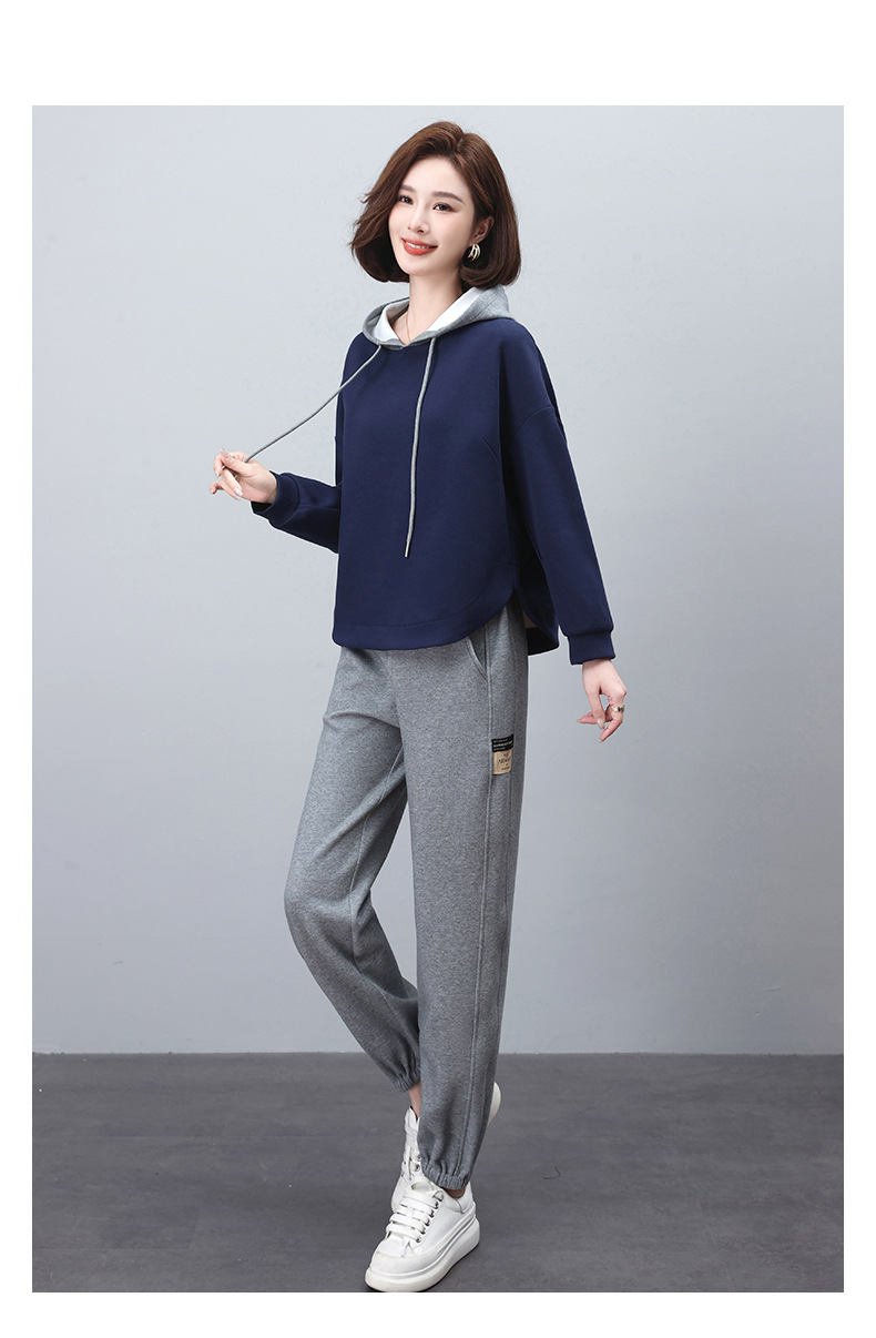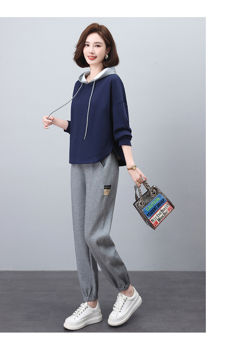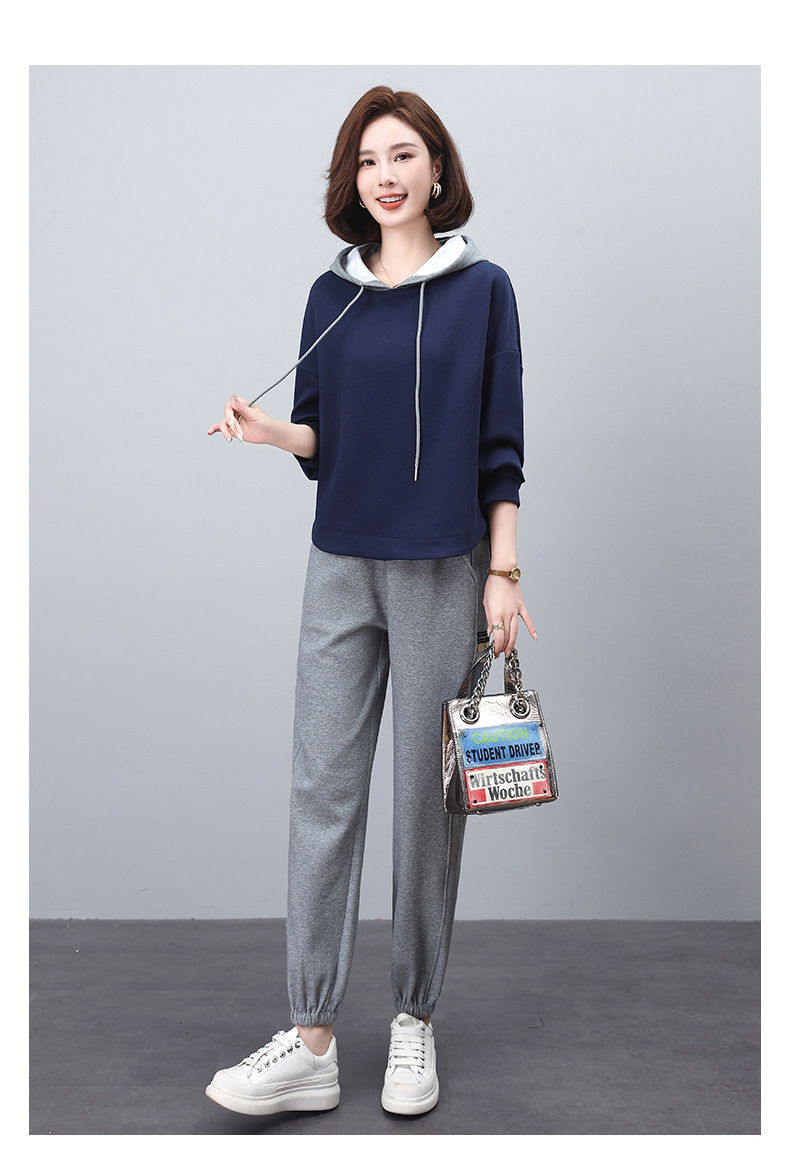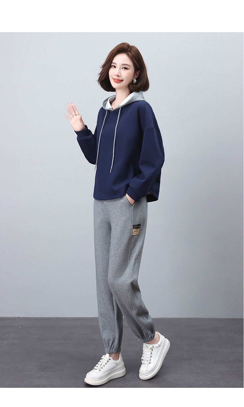 百媚生 休闲拼色连帽卫衣时尚显瘦两件套BKYLDS606