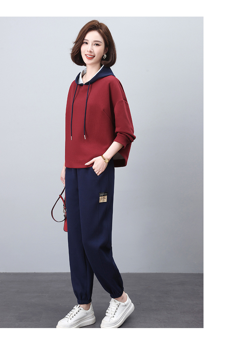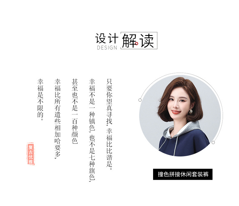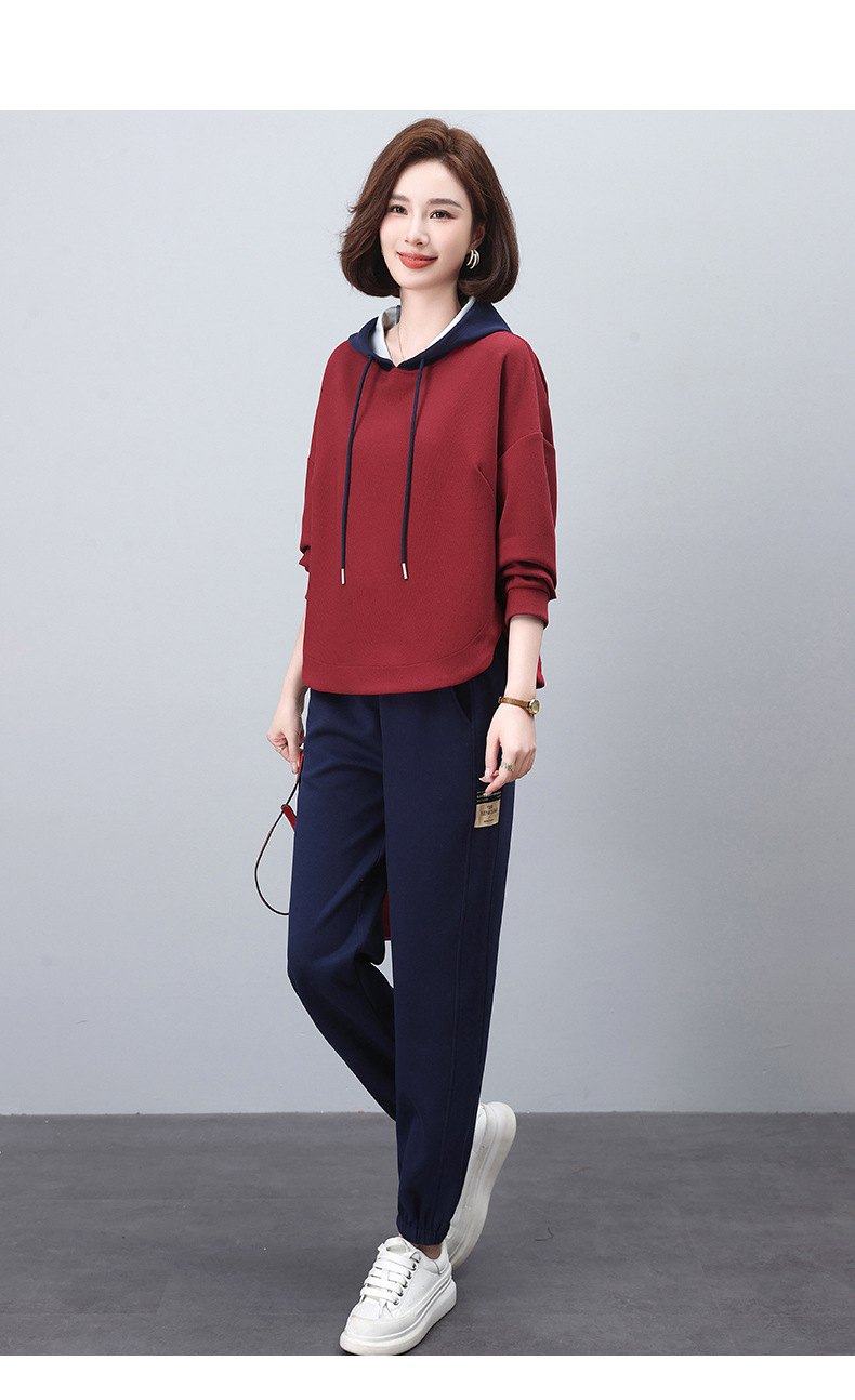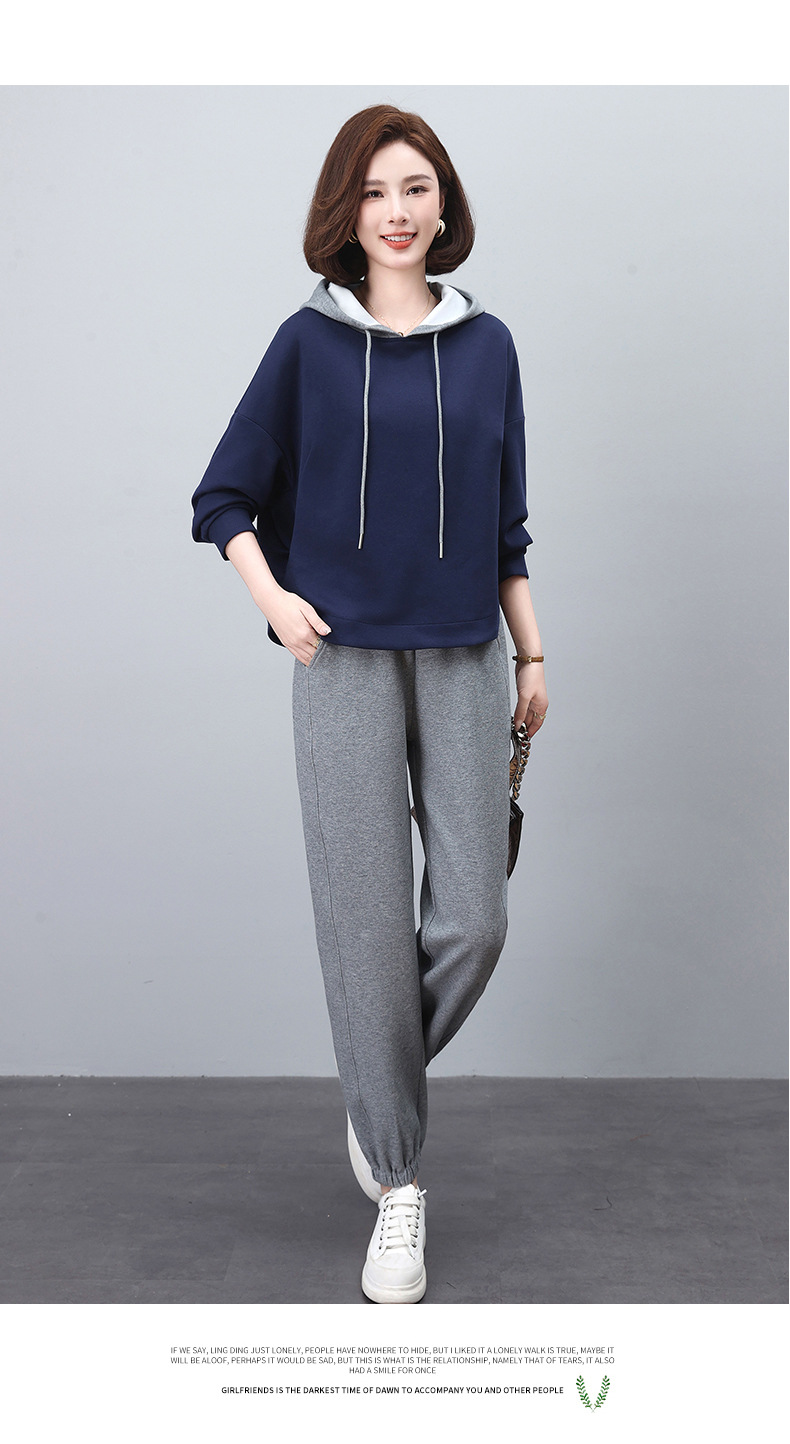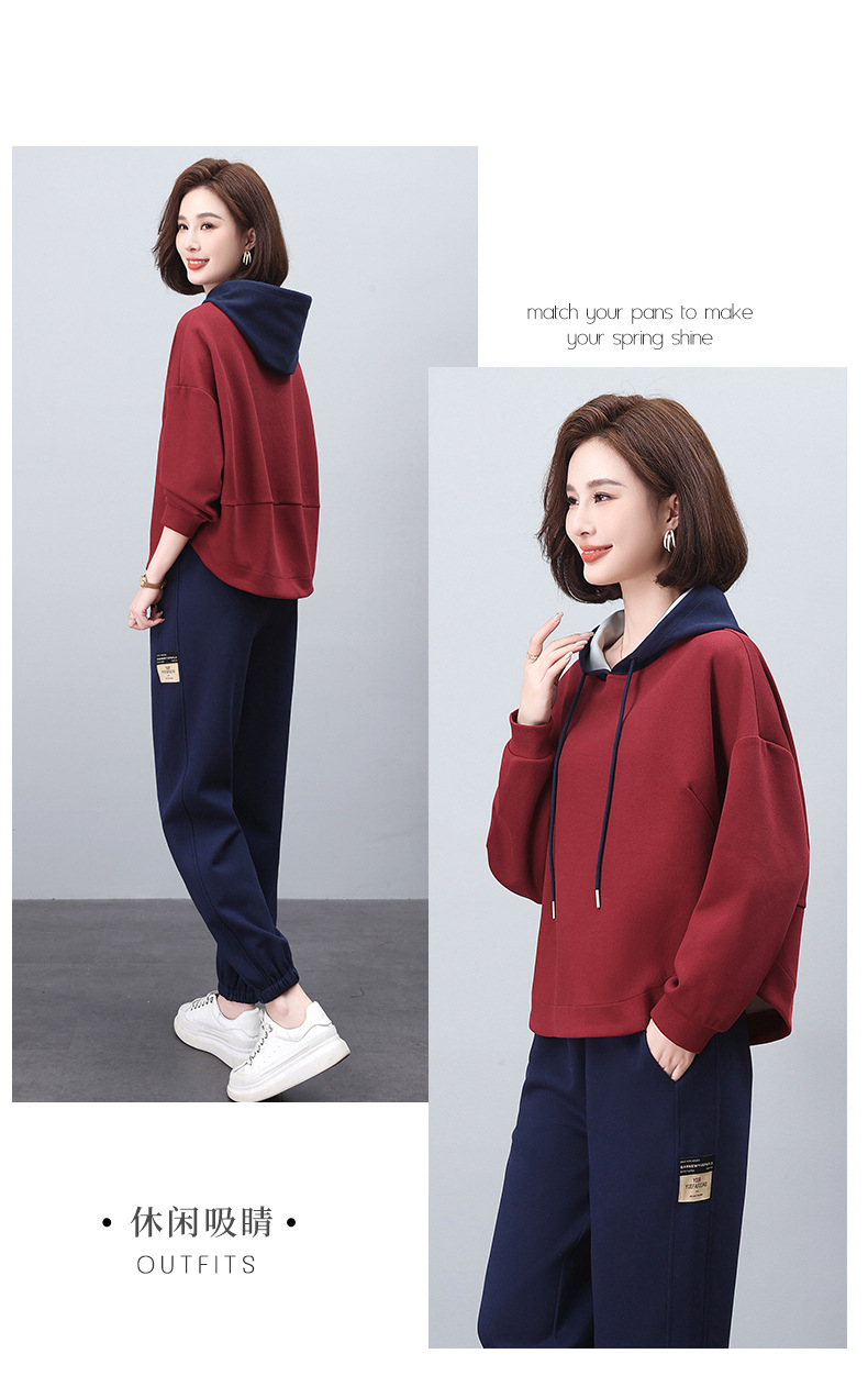 百媚生 休闲拼色连帽卫衣时尚显瘦两件套BKYLDS606
