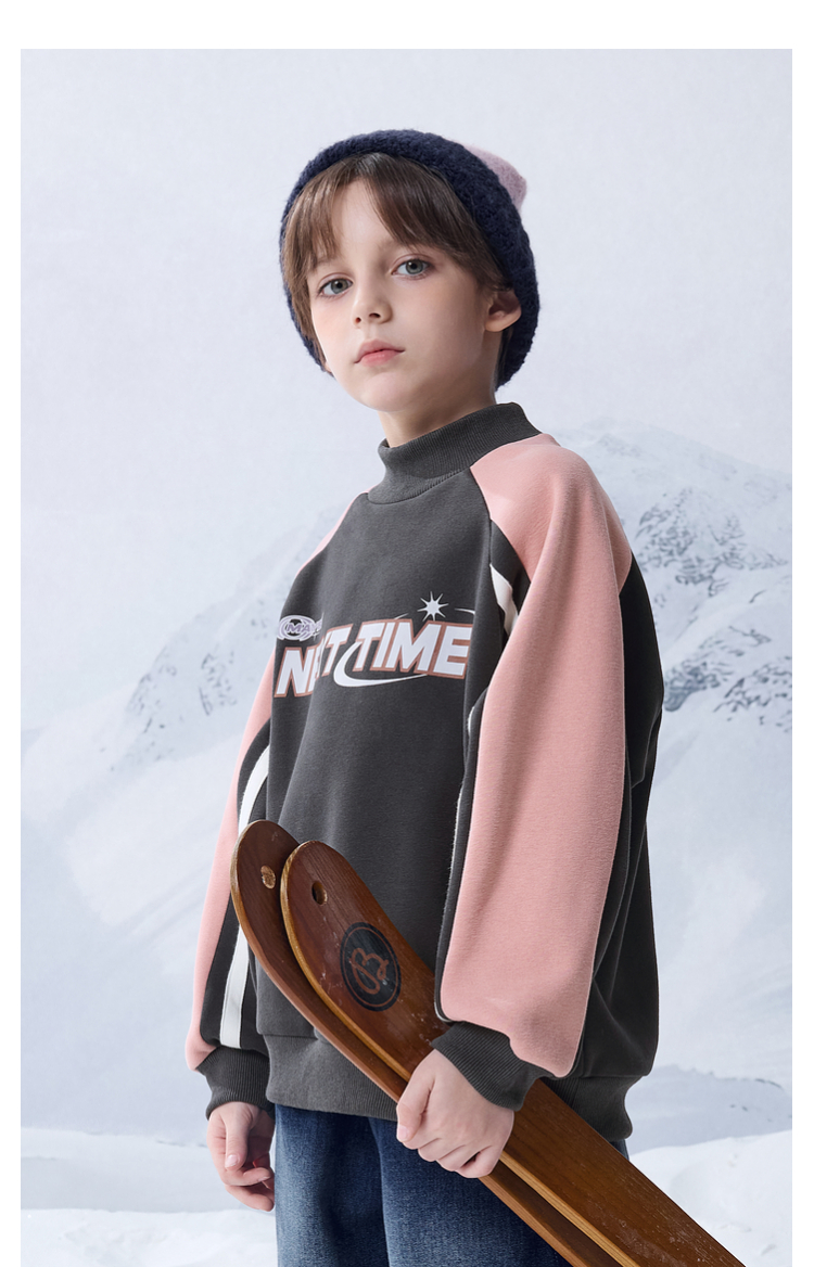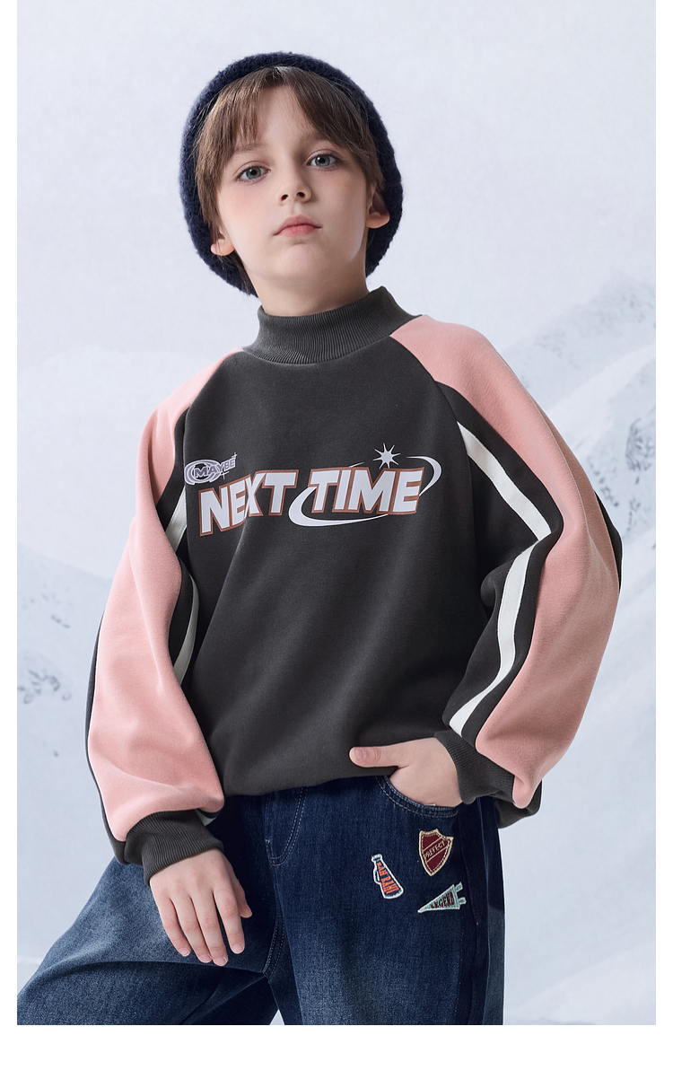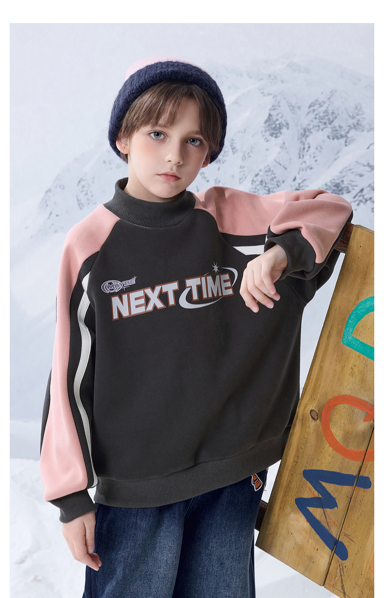 【MQD】冬季新品男大童学院风插肩袖运动休闲加绒半高领卫衣