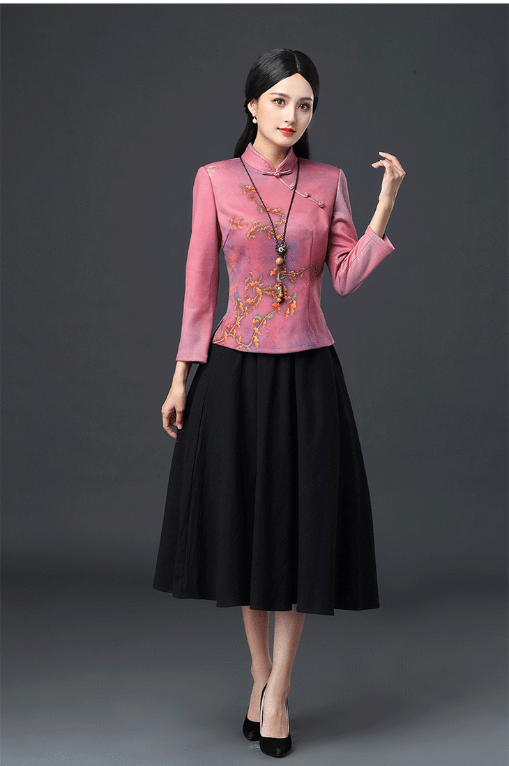 DNS-2049修身气质鹿皮绒加厚长袖中国风旗袍上衣