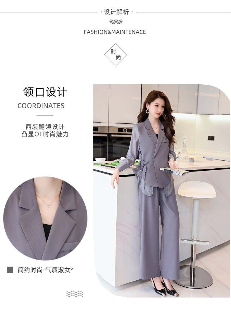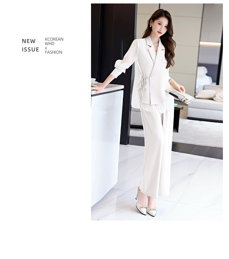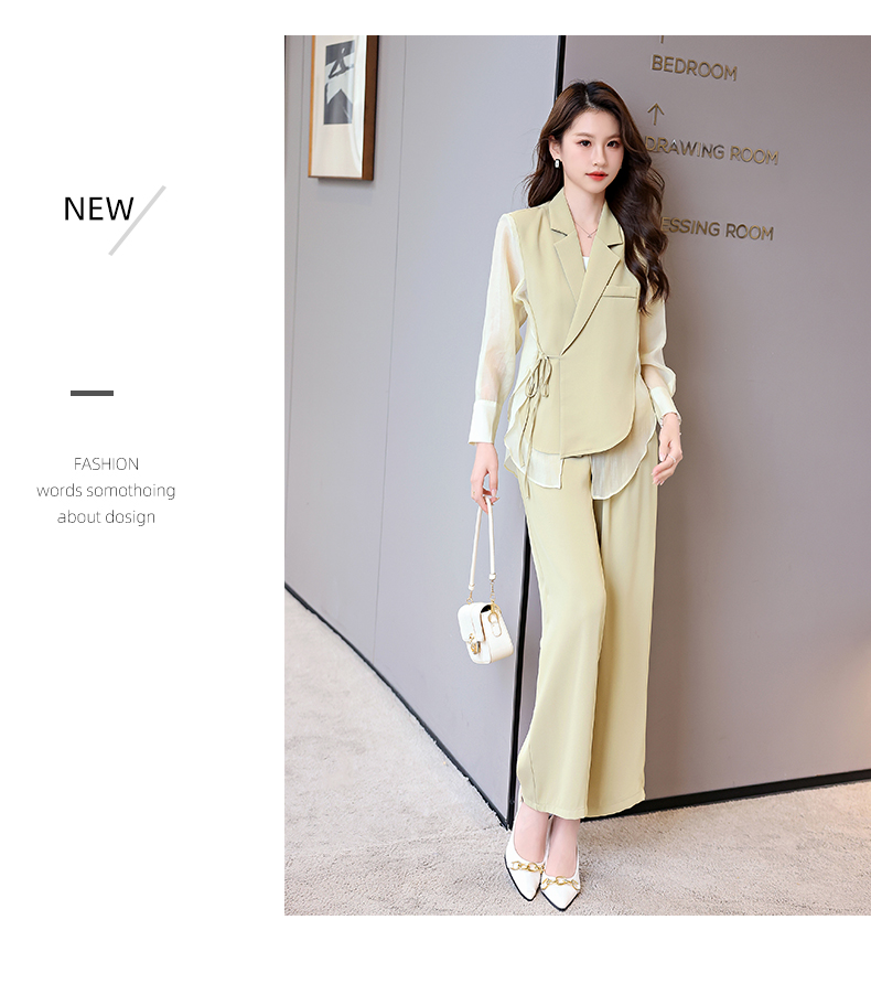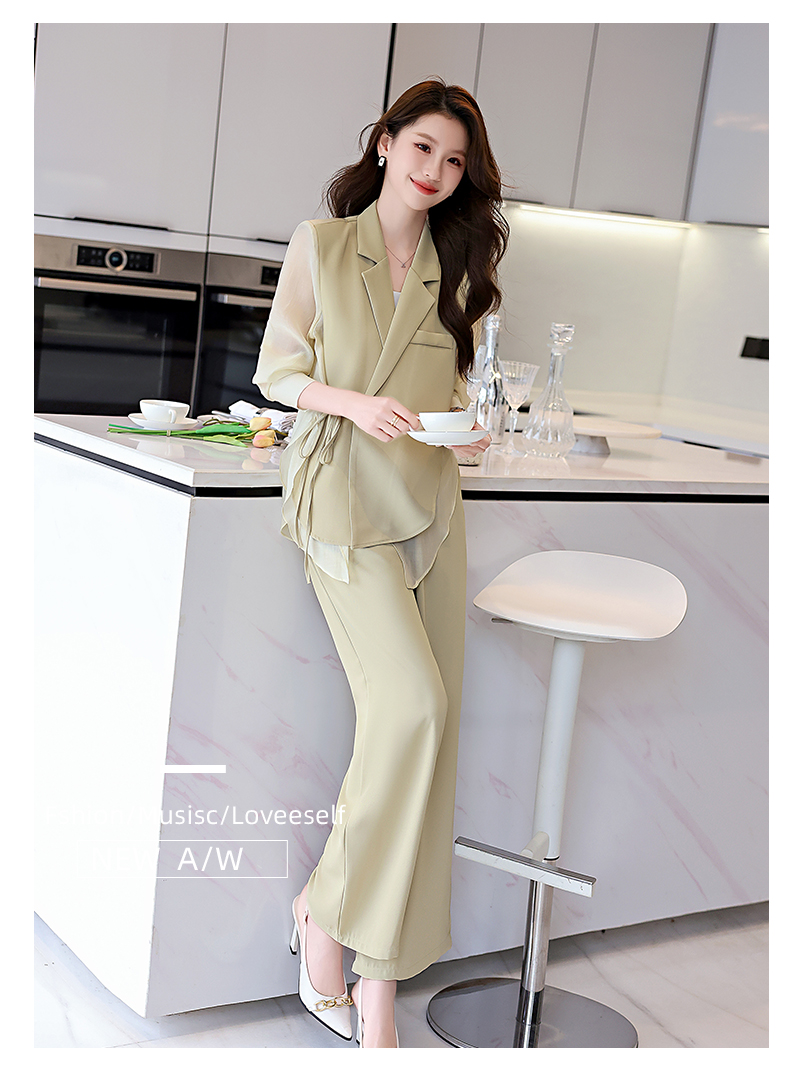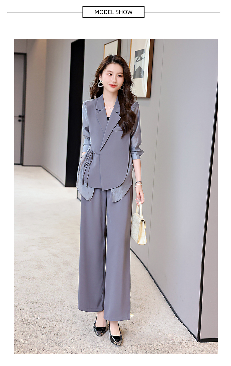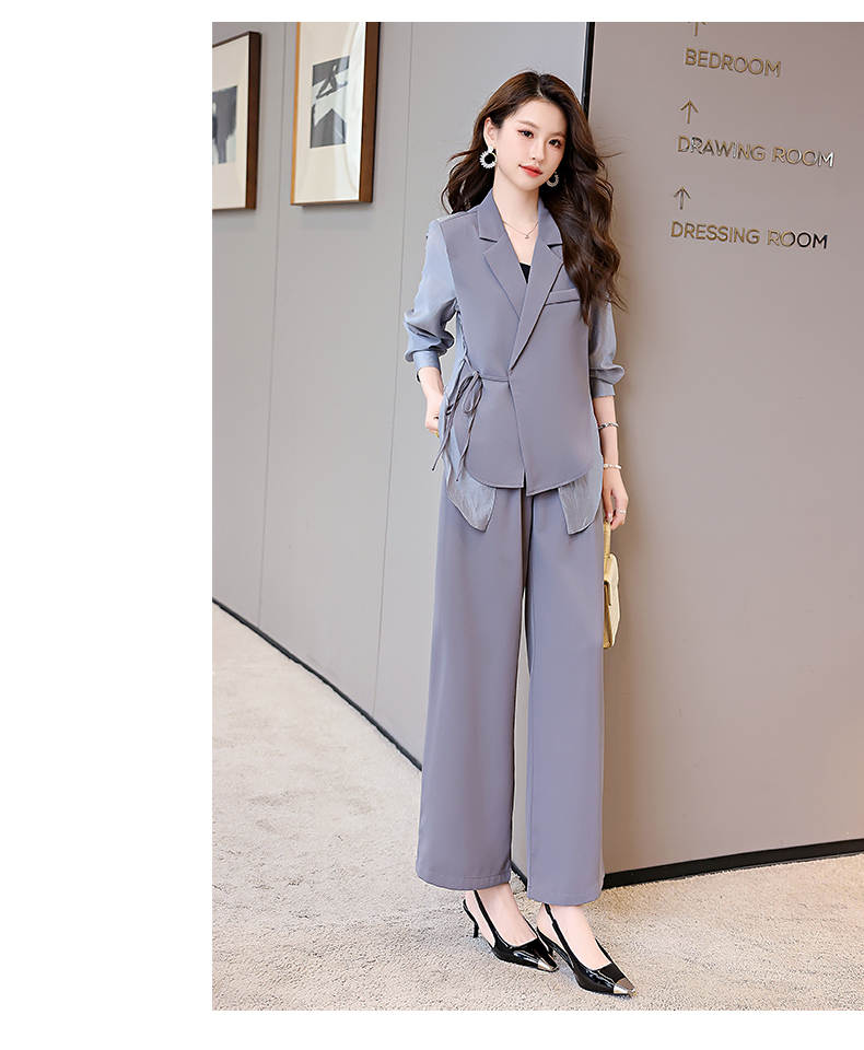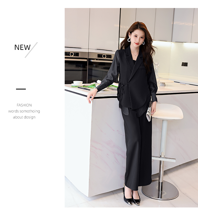 优雅新中式,拼接改良西装外套阔腿裤两件套HR-KJFA862