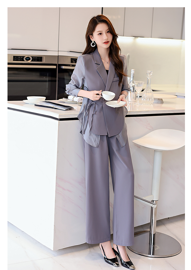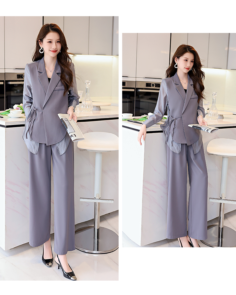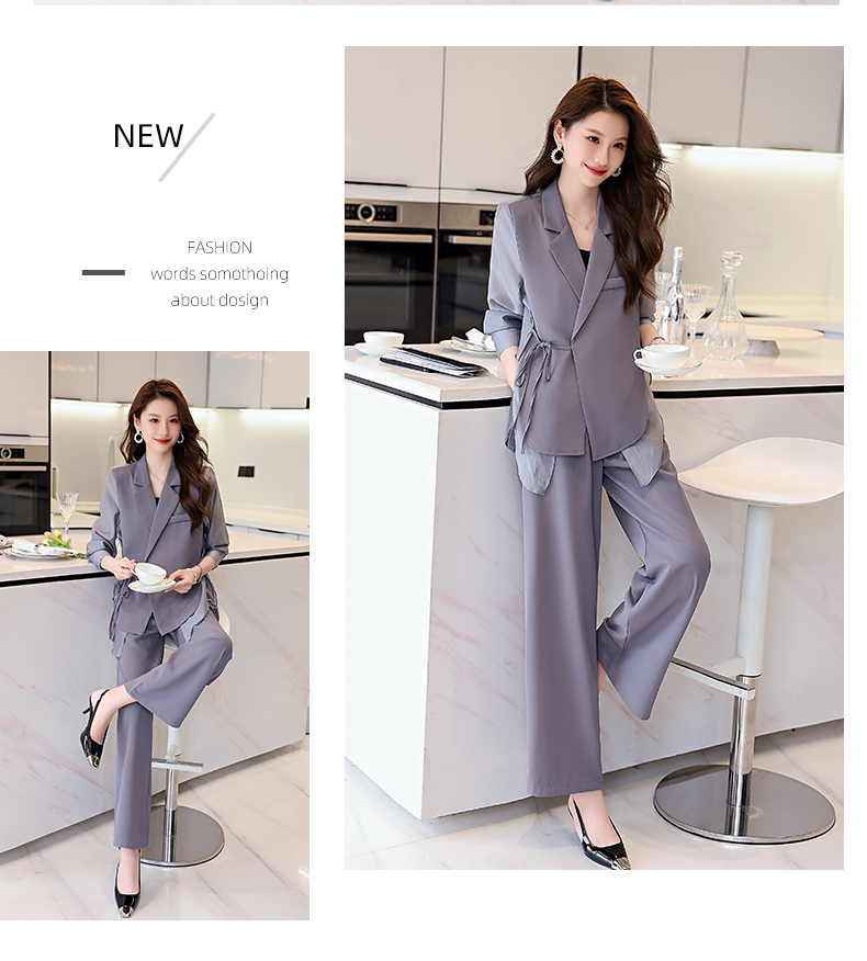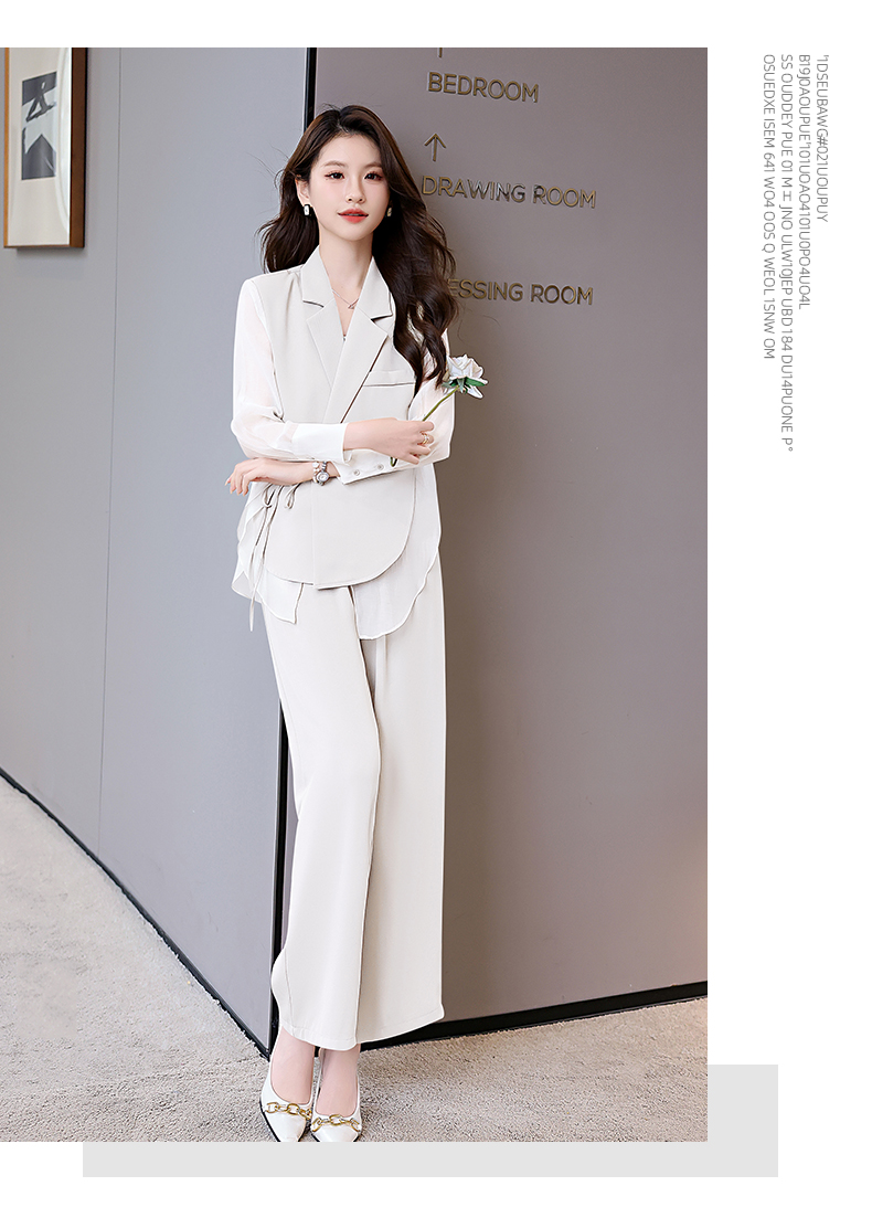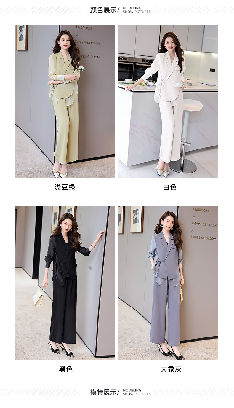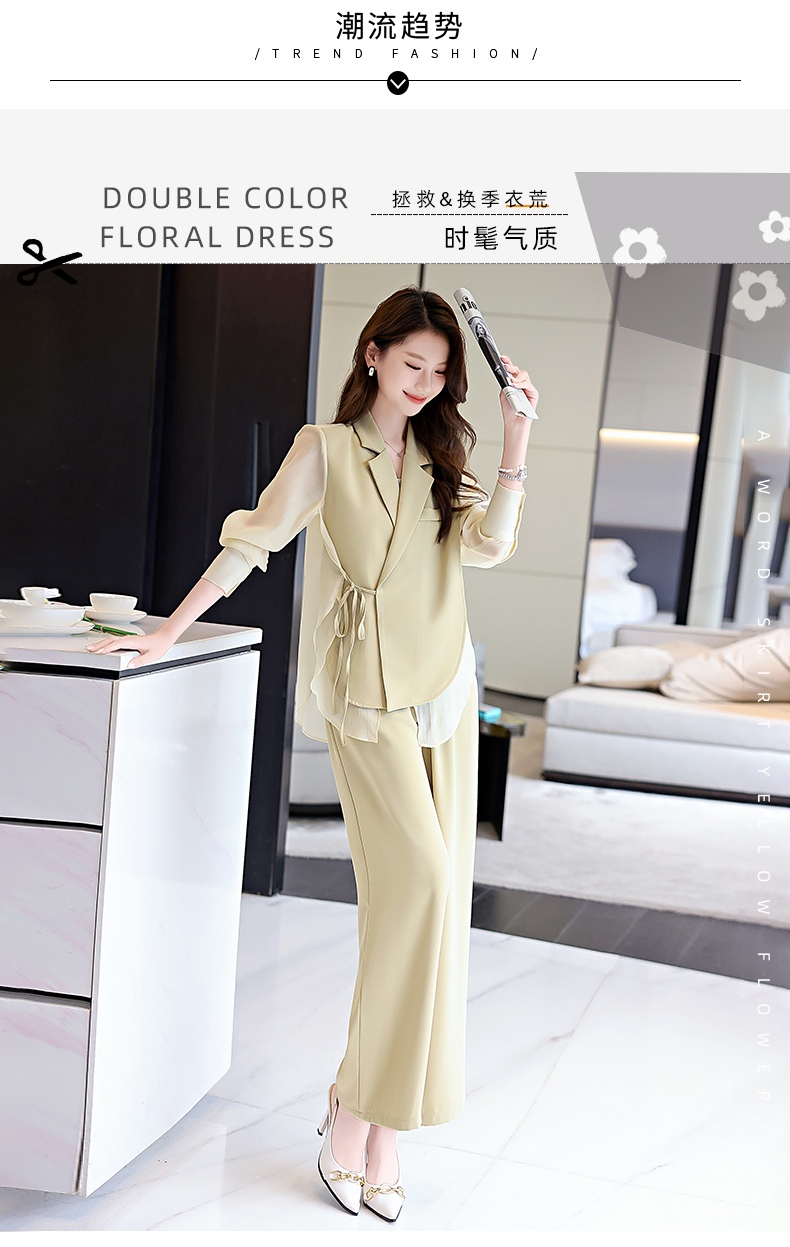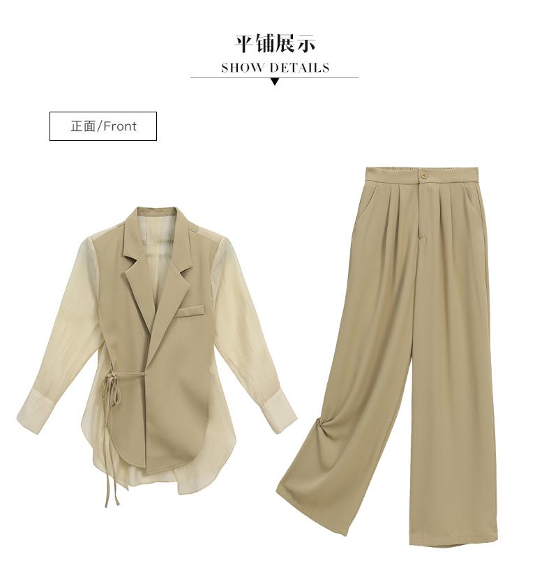 优雅新中式,拼接改良西装外套阔腿裤两件套HR-KJFA862