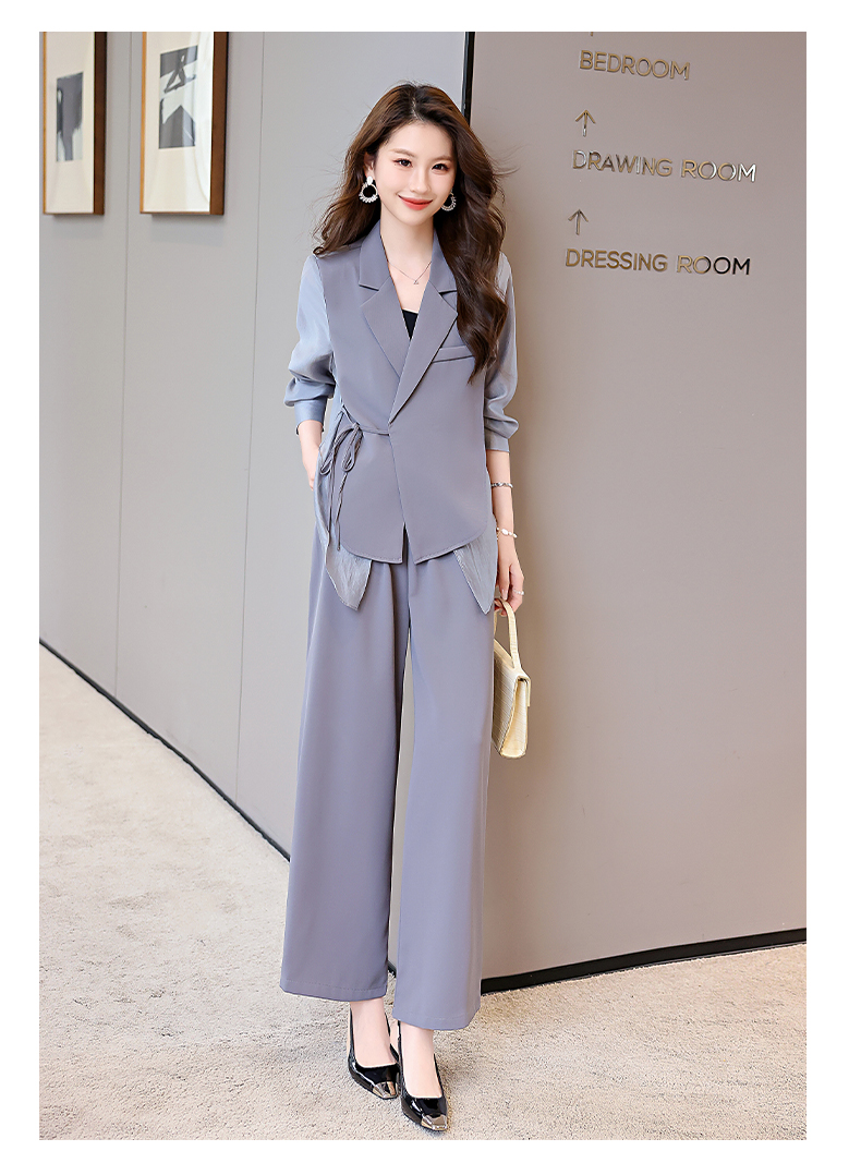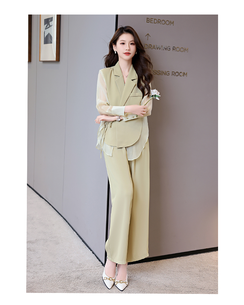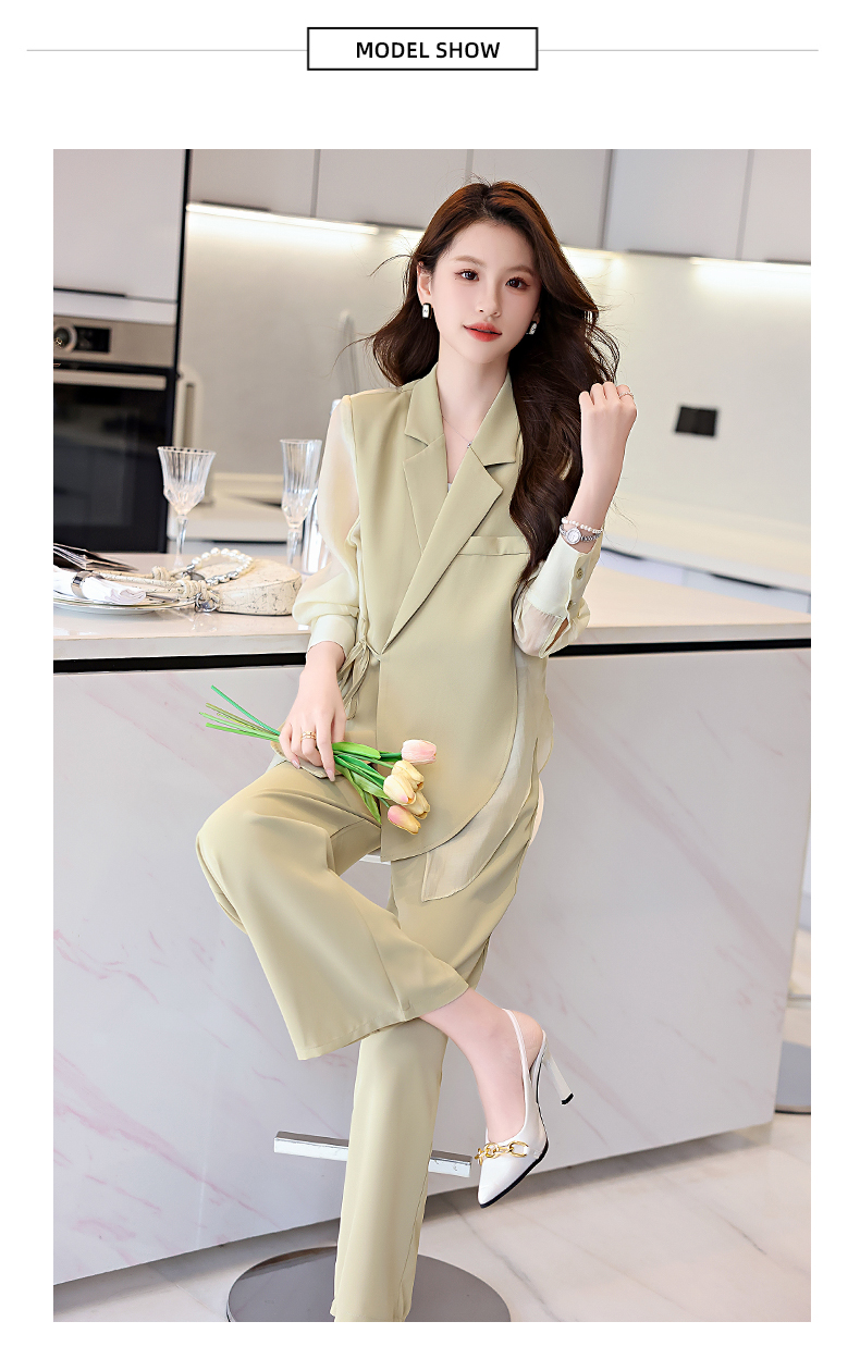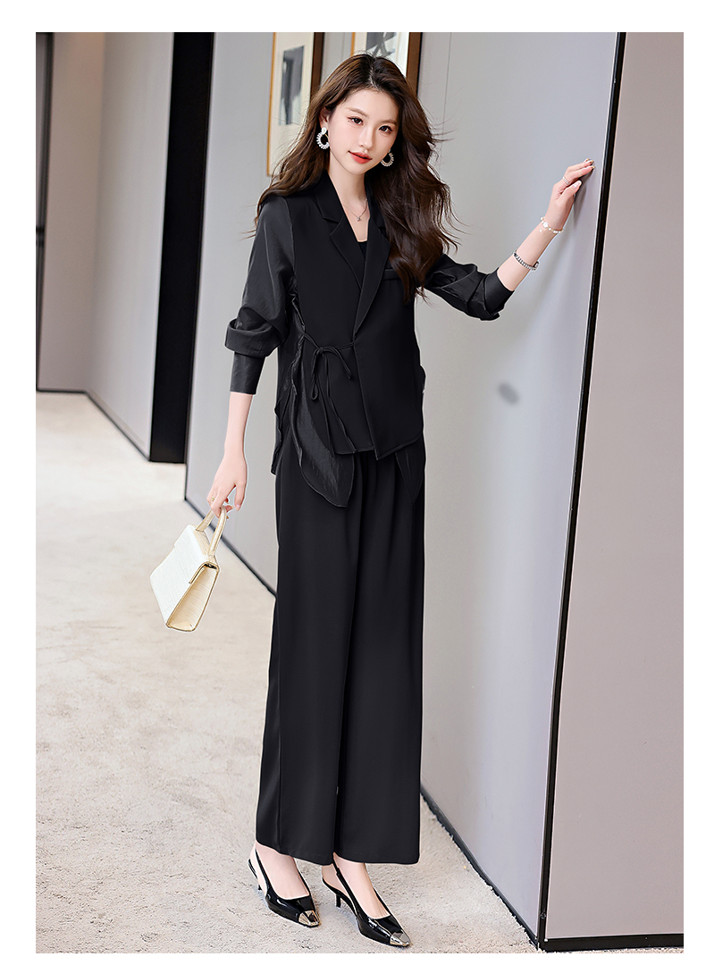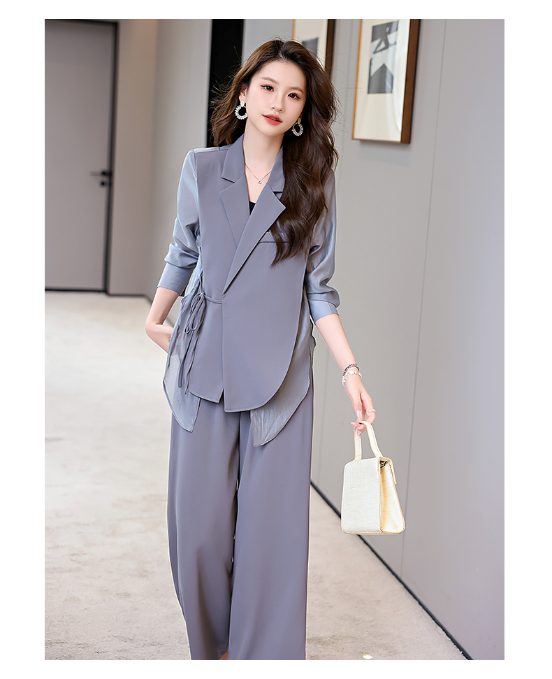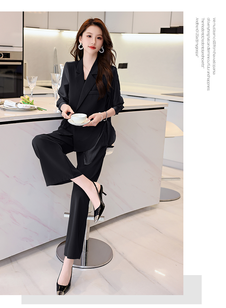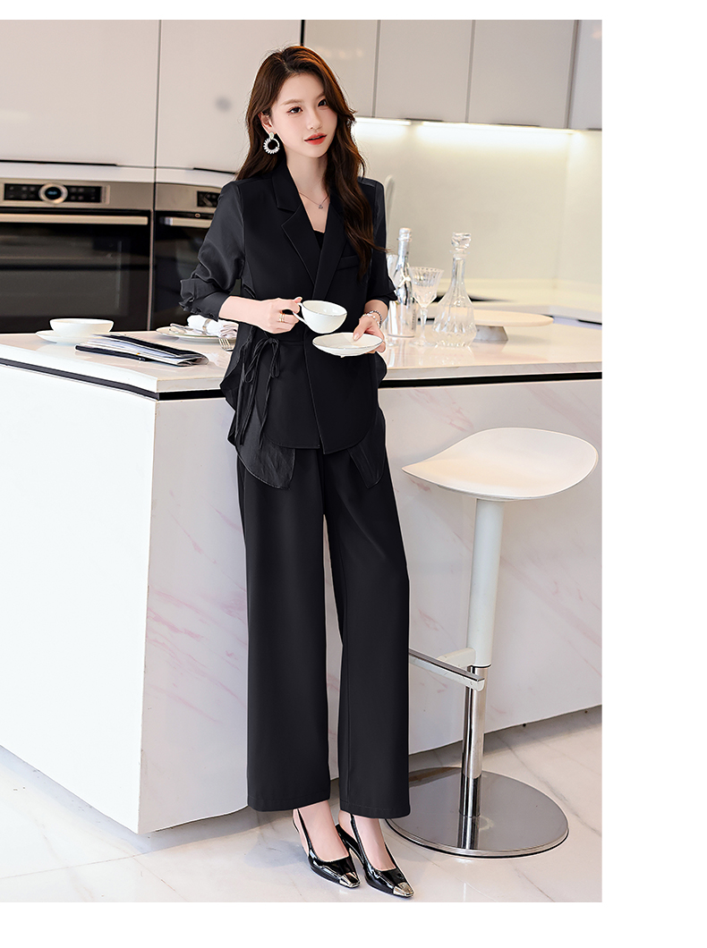 优雅新中式,拼接改良西装外套阔腿裤两件套HR-KJFA862