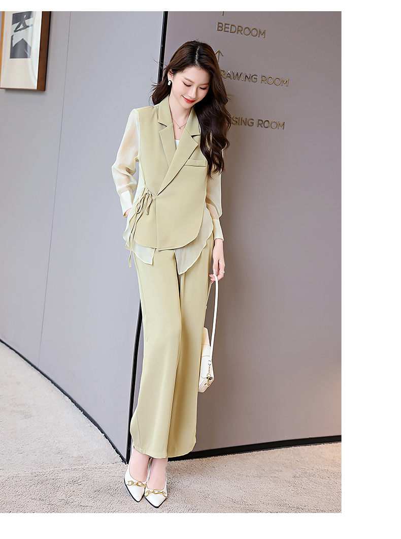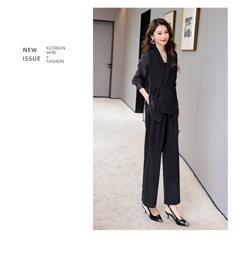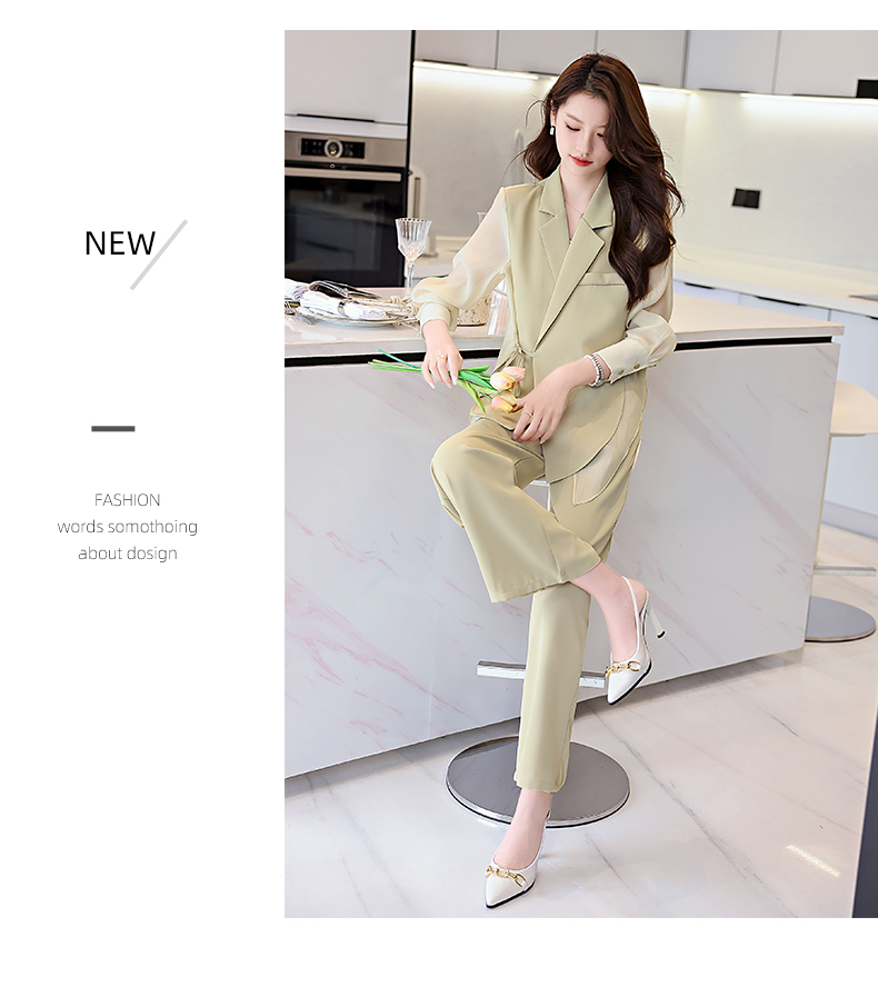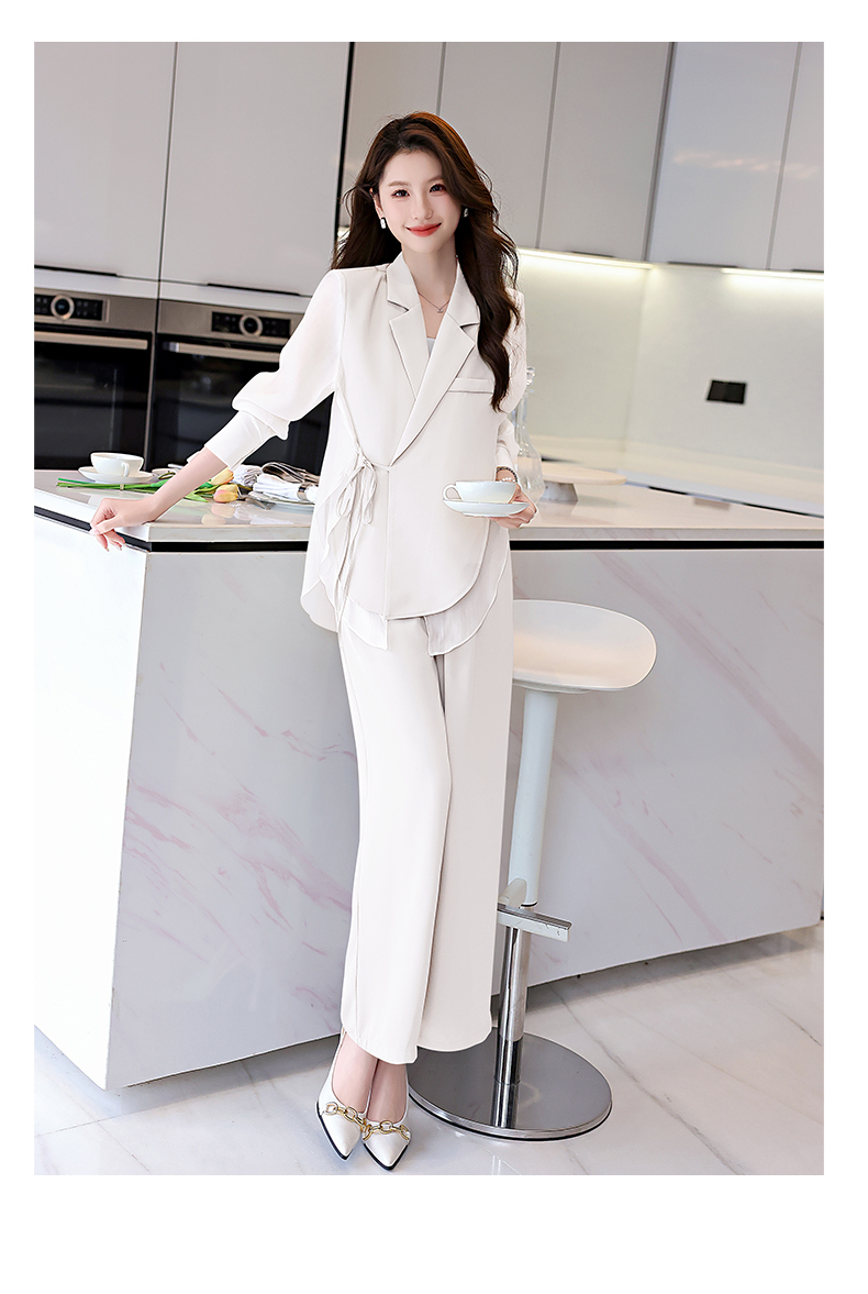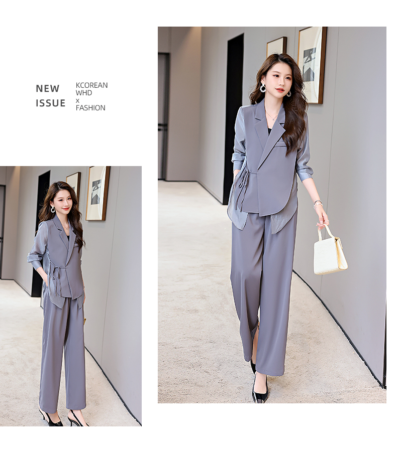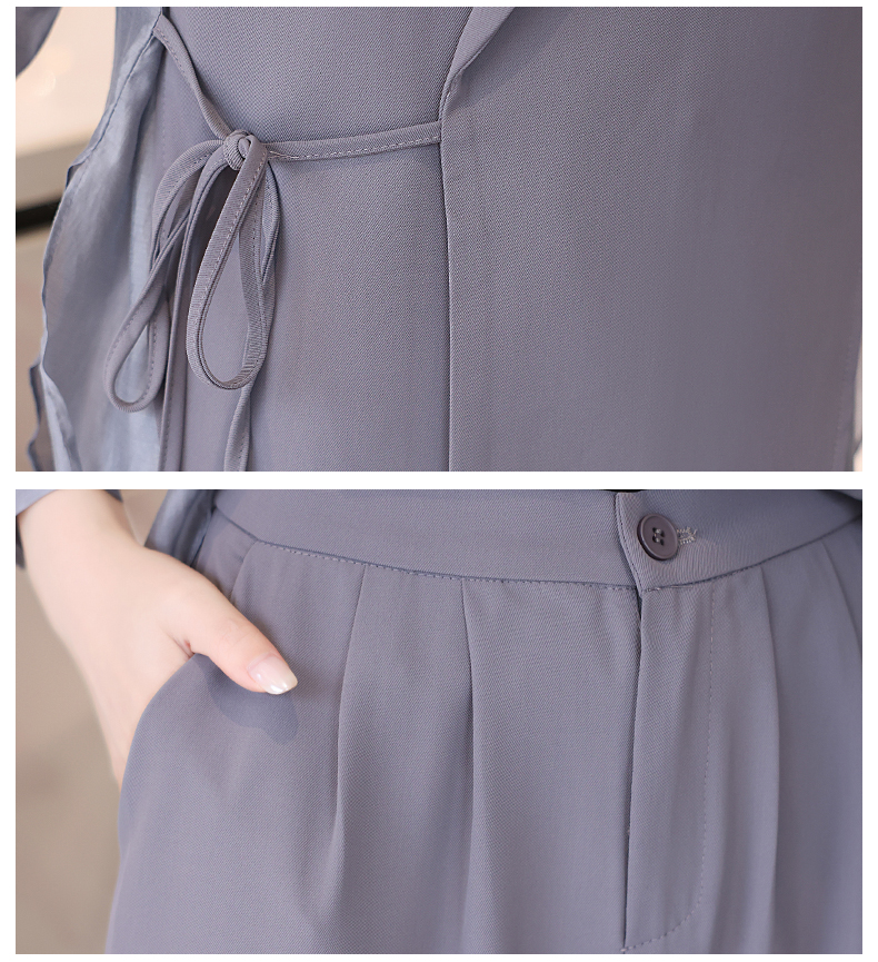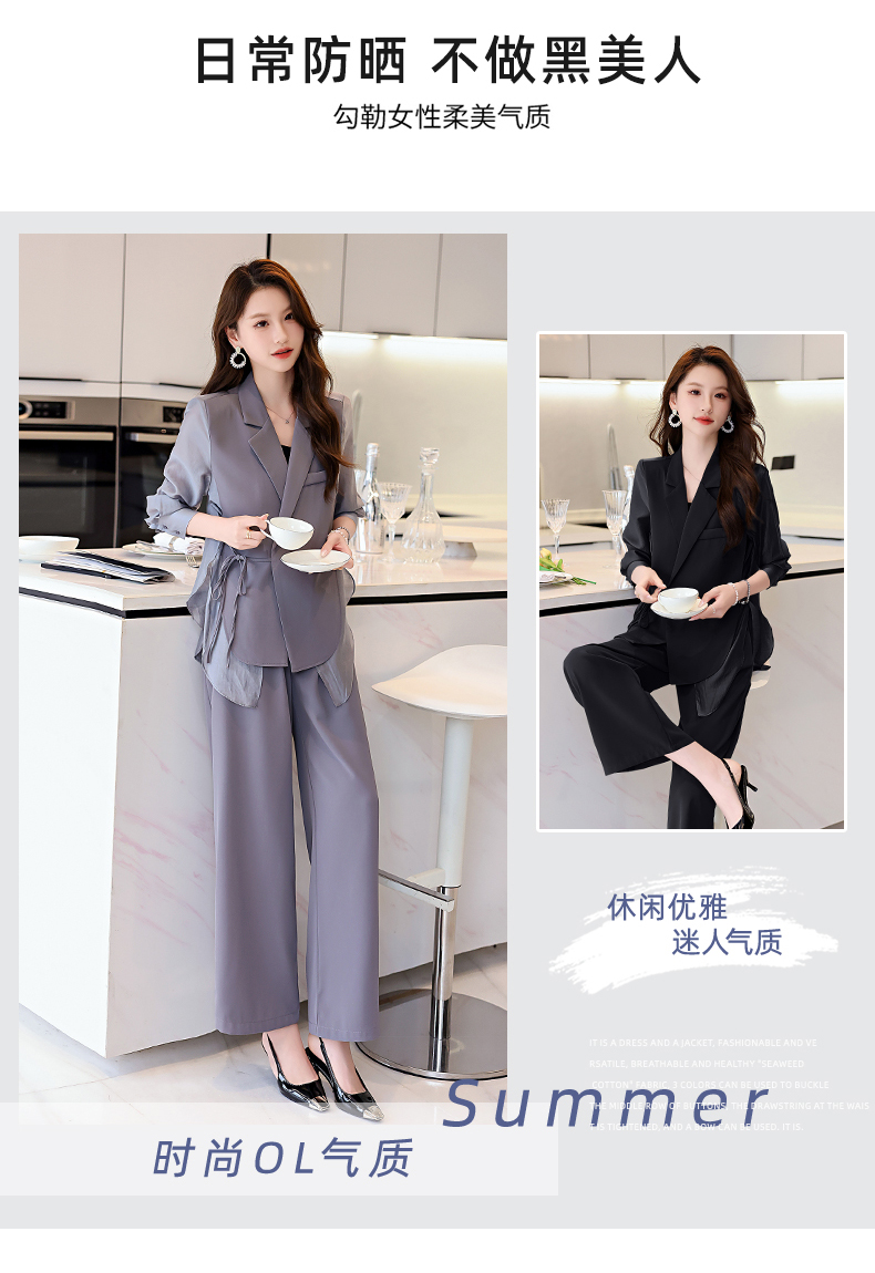 优雅新中式,拼接改良西装外套阔腿裤两件套HR-KJFA862