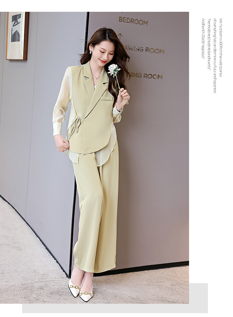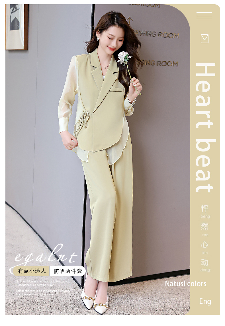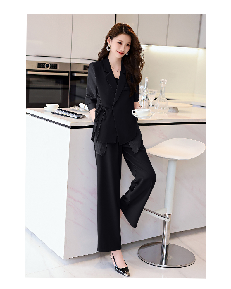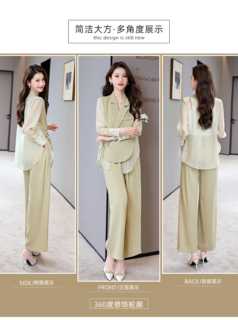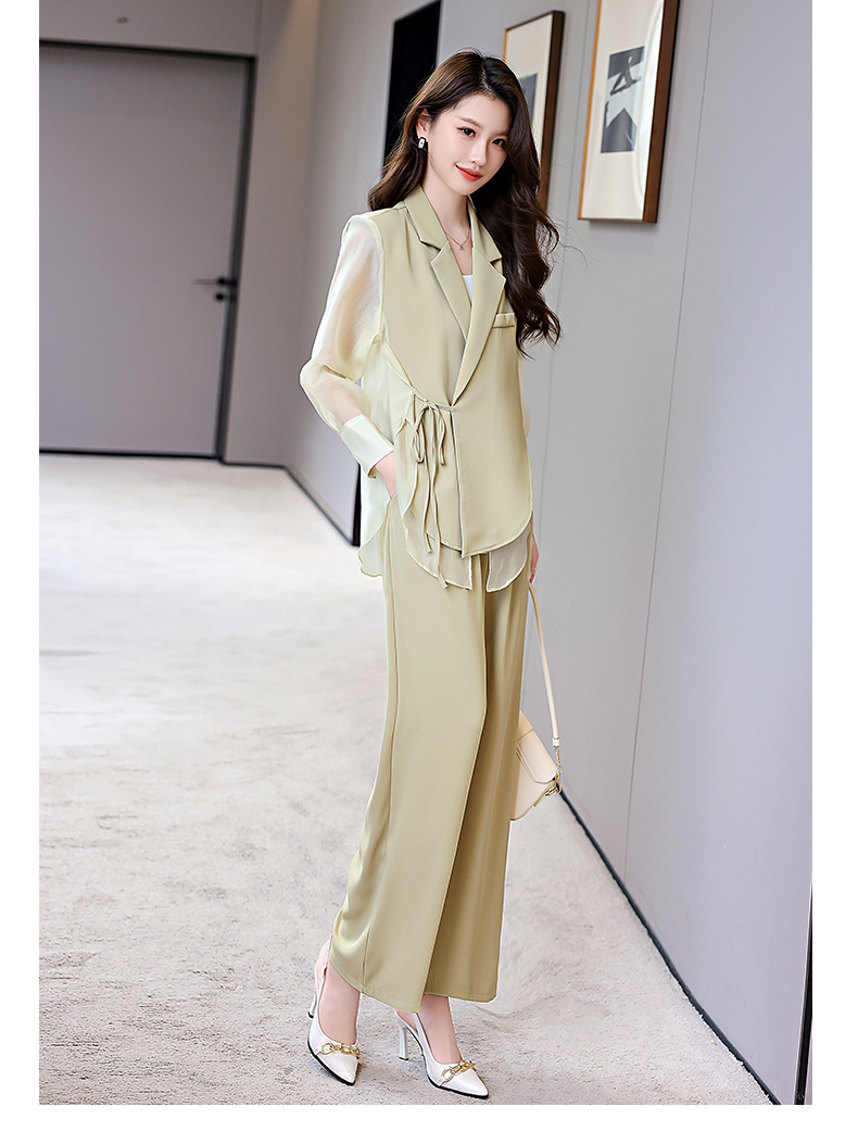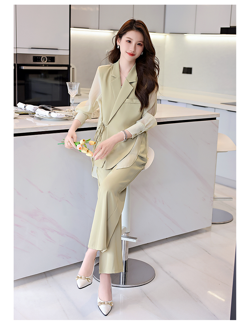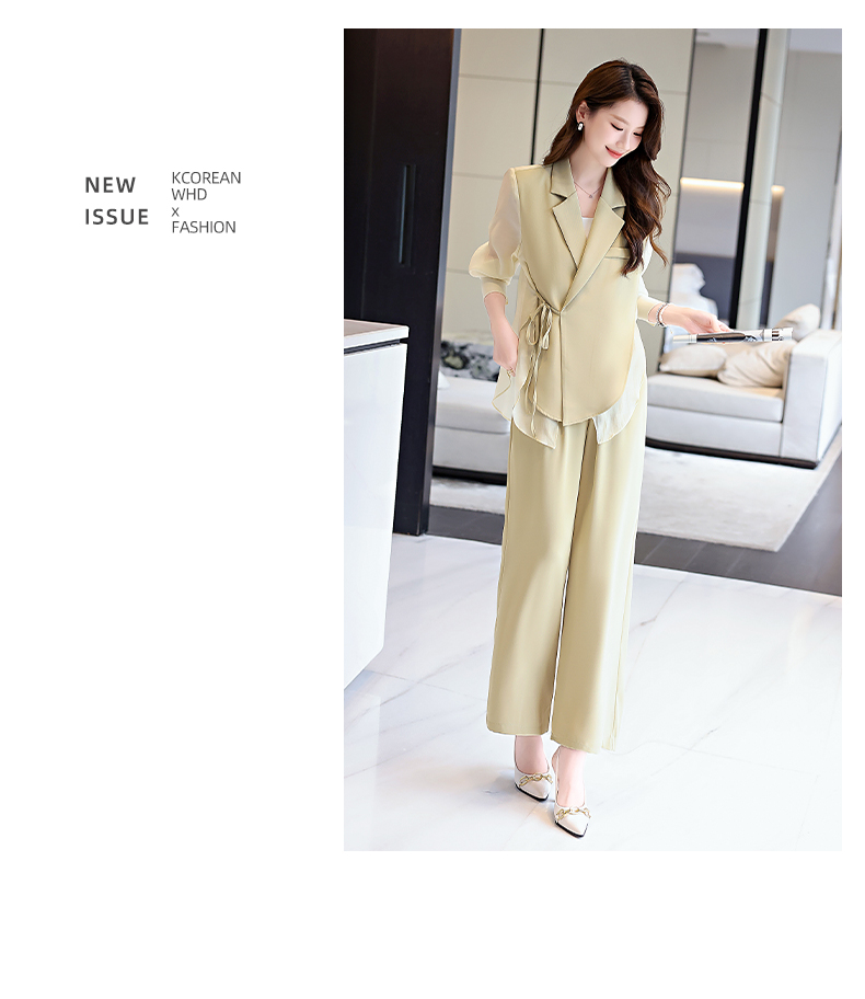 优雅新中式,拼接改良西装外套阔腿裤两件套HR-KJFA862