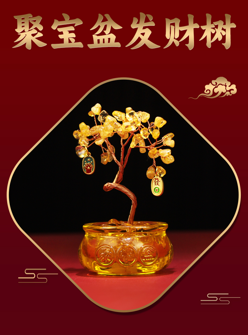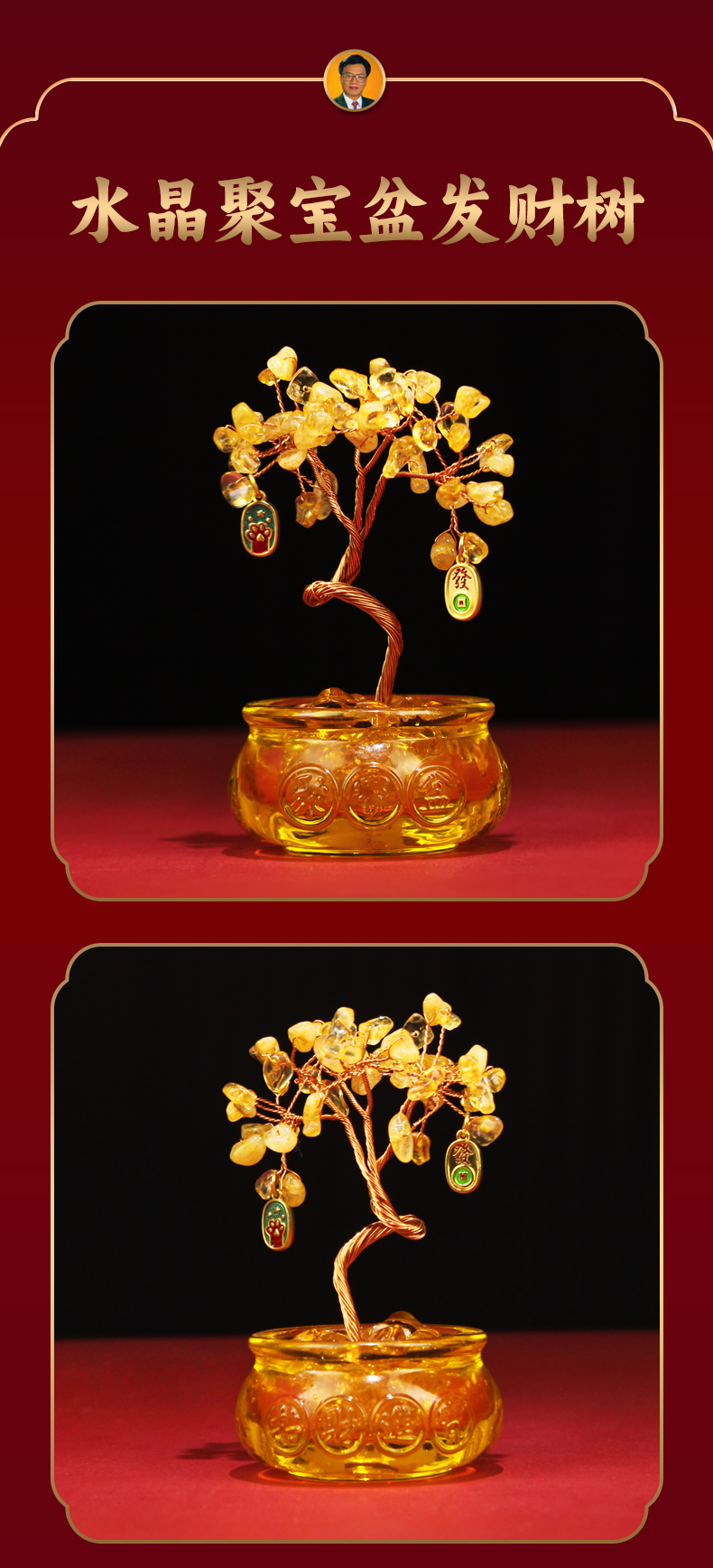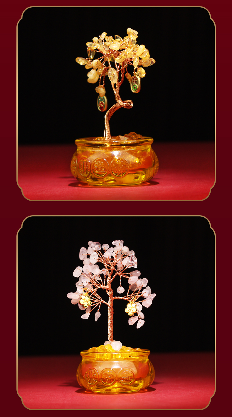 宋韶光大师新款黄水晶粉水晶聚宝盆发财树家居客厅办公室桌面创意摆件