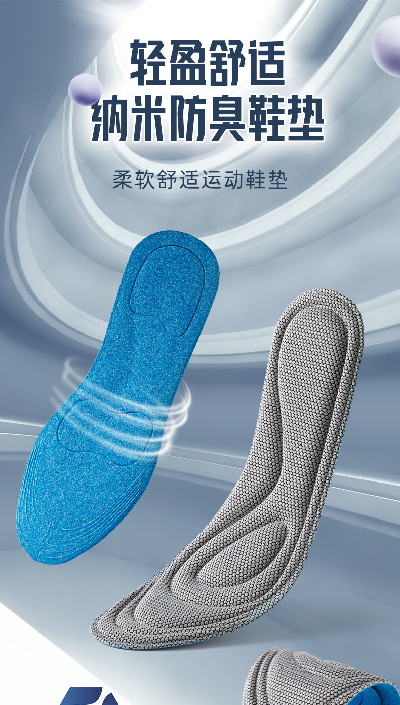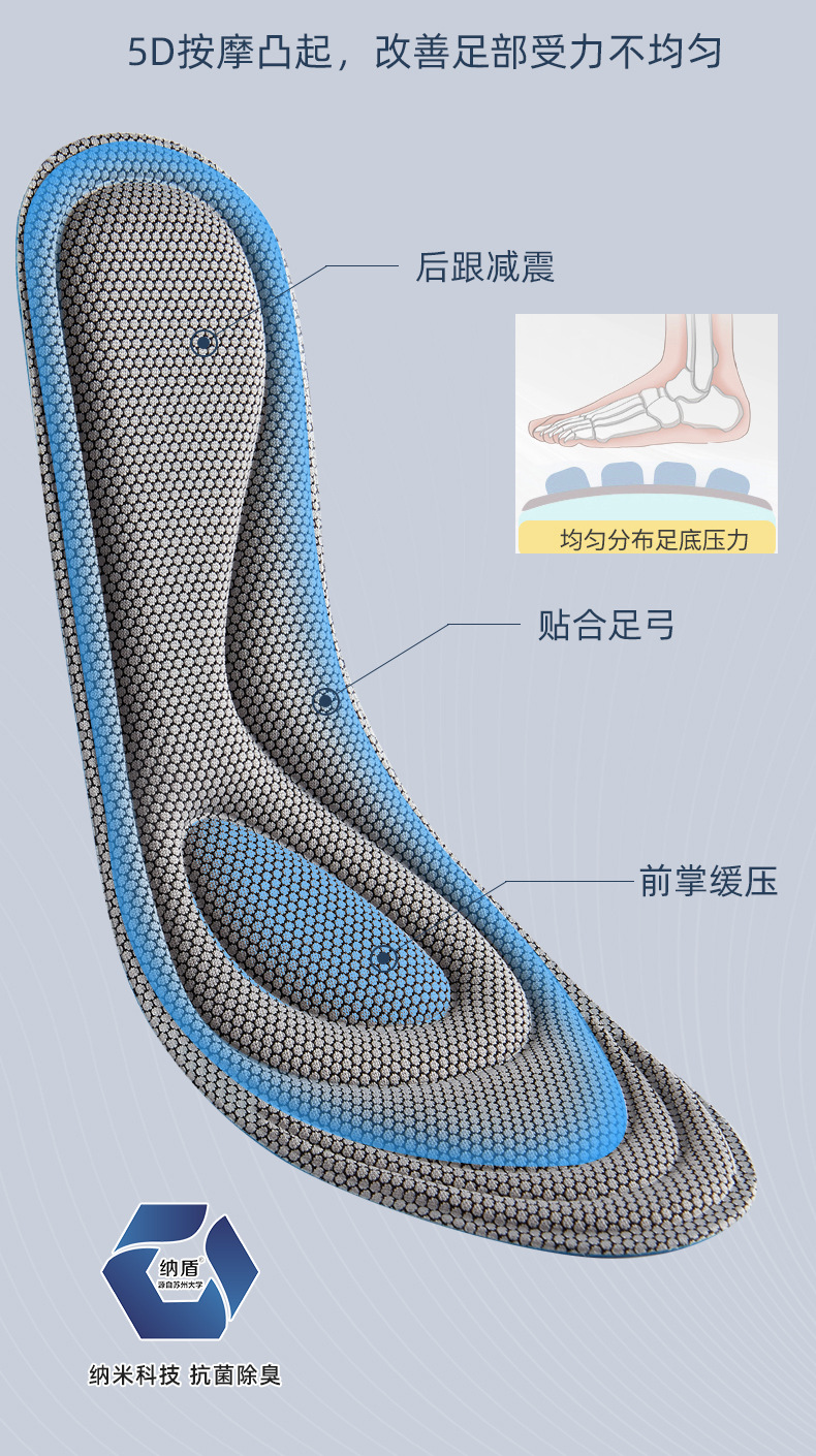 【买一送一实发2双运动鞋垫】纳米黑科技抗jun防臭高弹减震吸汗透气超软男女鞋垫4d弹力