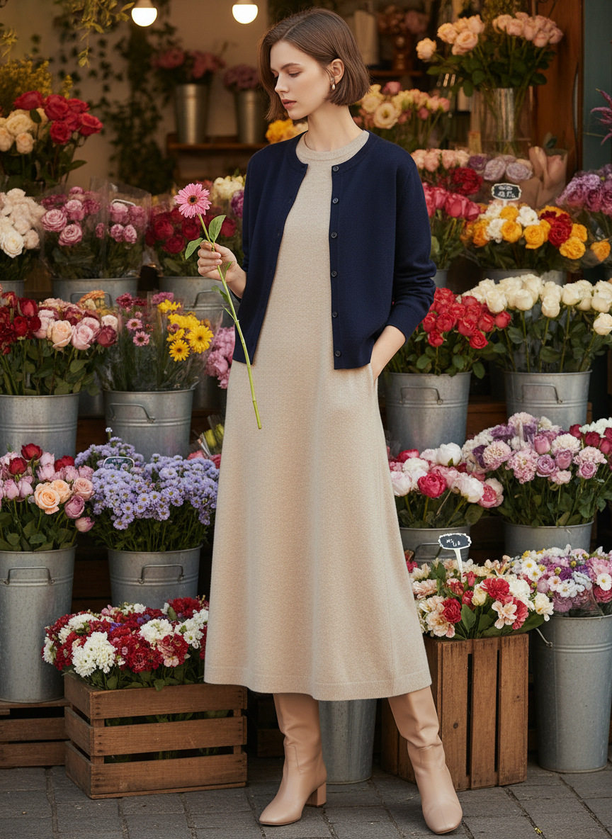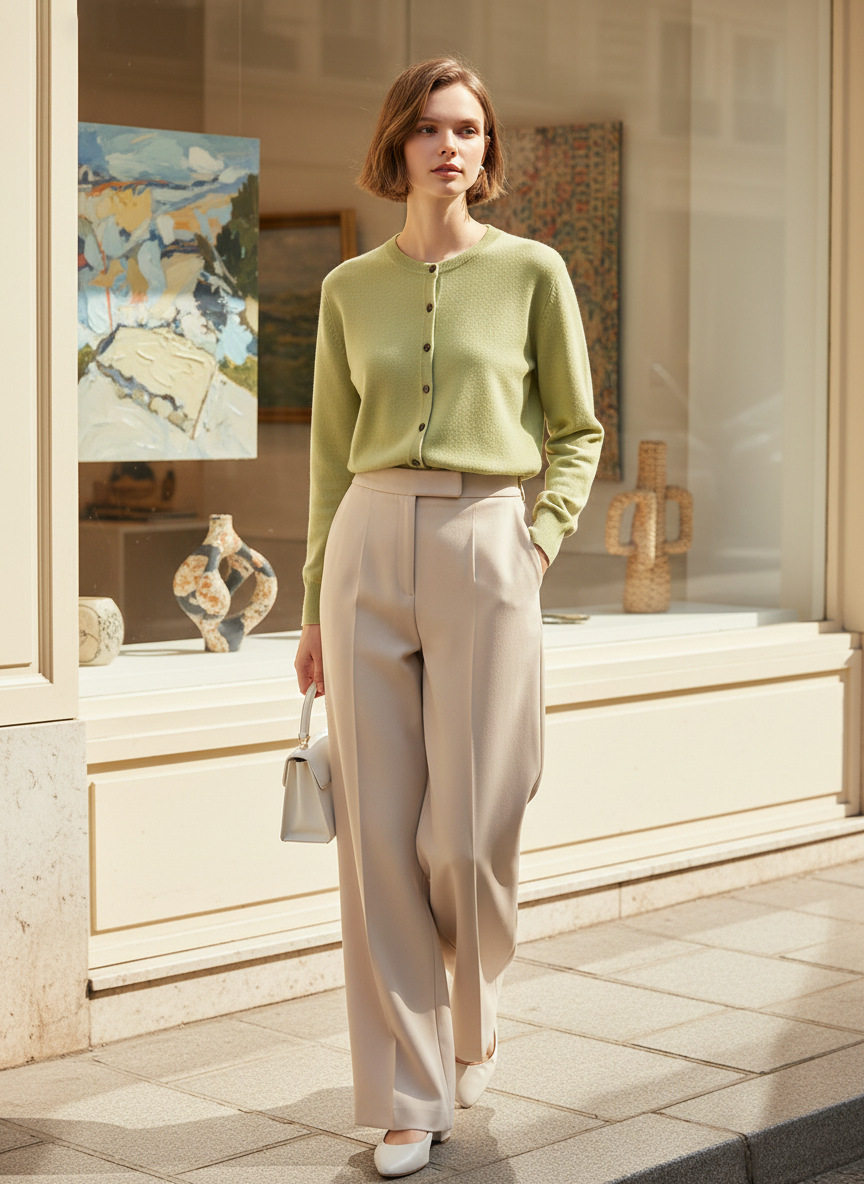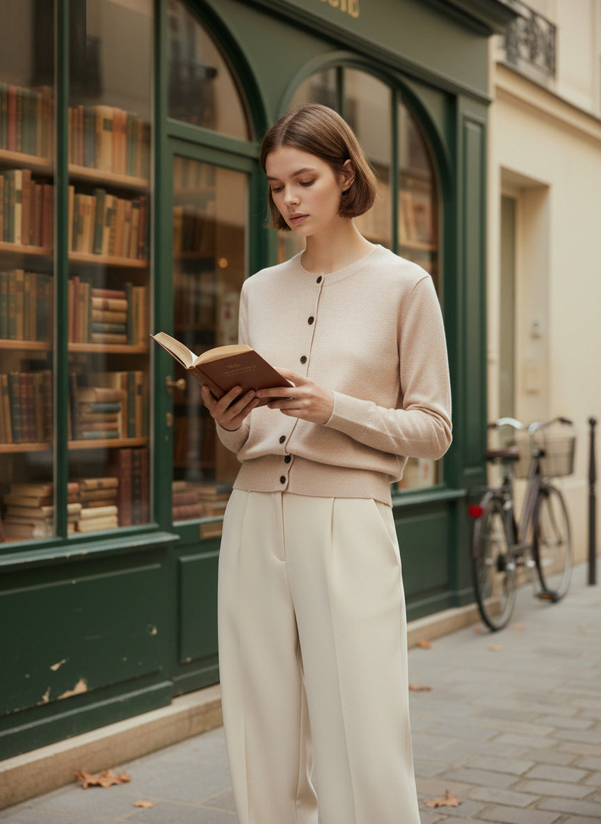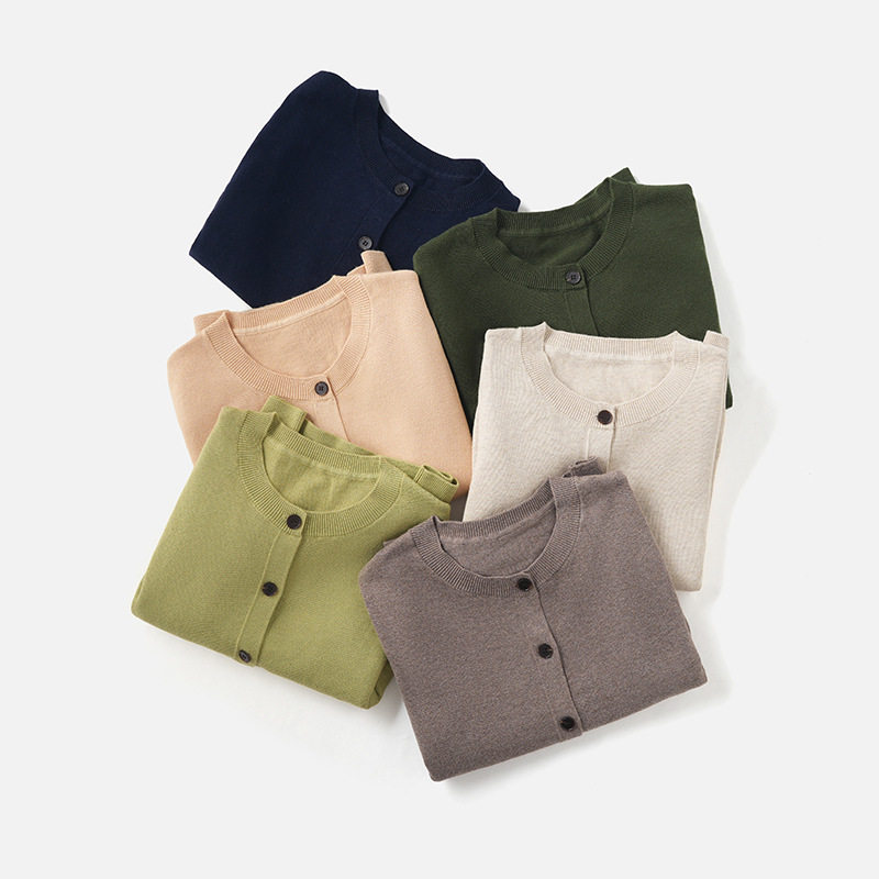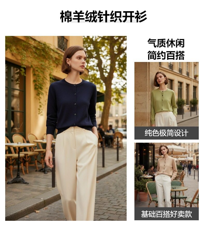 「自」全新升级落实了纯色圆领针织开衫2026春季新款百搭显瘦针织毛衣外套