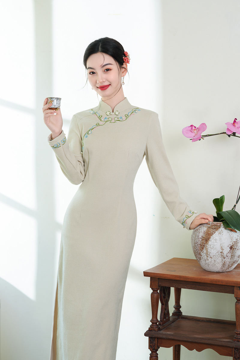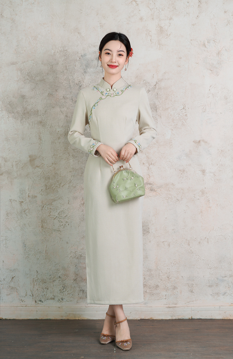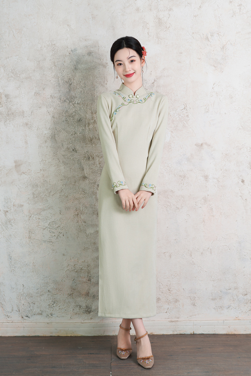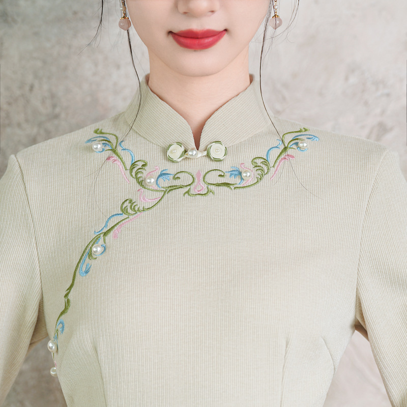 2025年秋季新款改良旗袍日常绣花雪尼尔长款年轻款修身中高端旗袍 商品图4