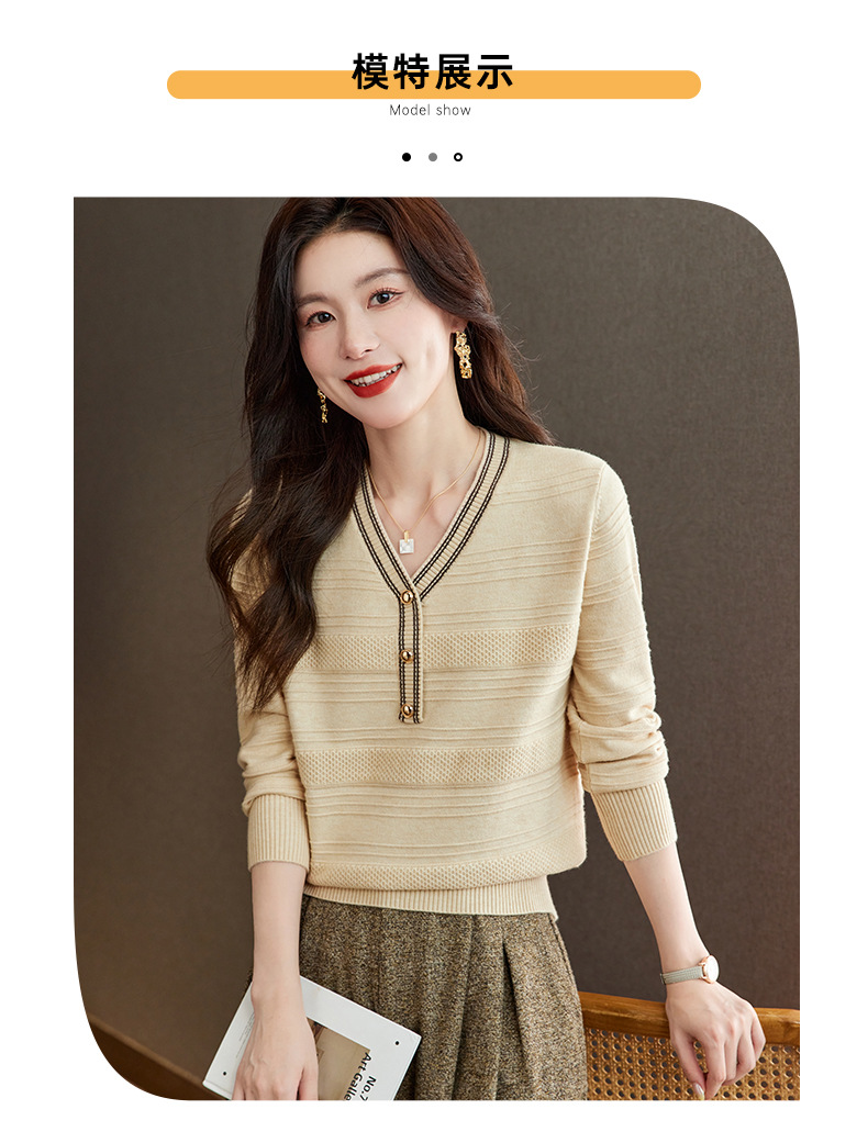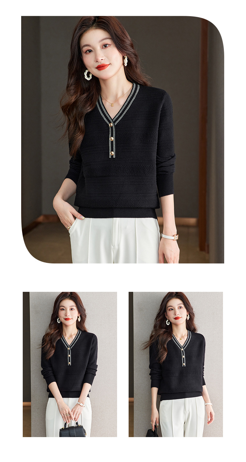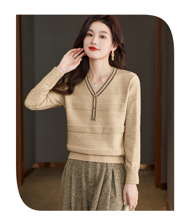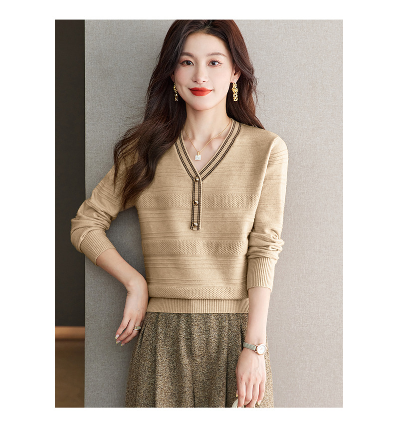 CC-66-5838 V领长袖t恤女2024春秋新款宽松时尚针织衫法式上衣洋气漂亮打底衫