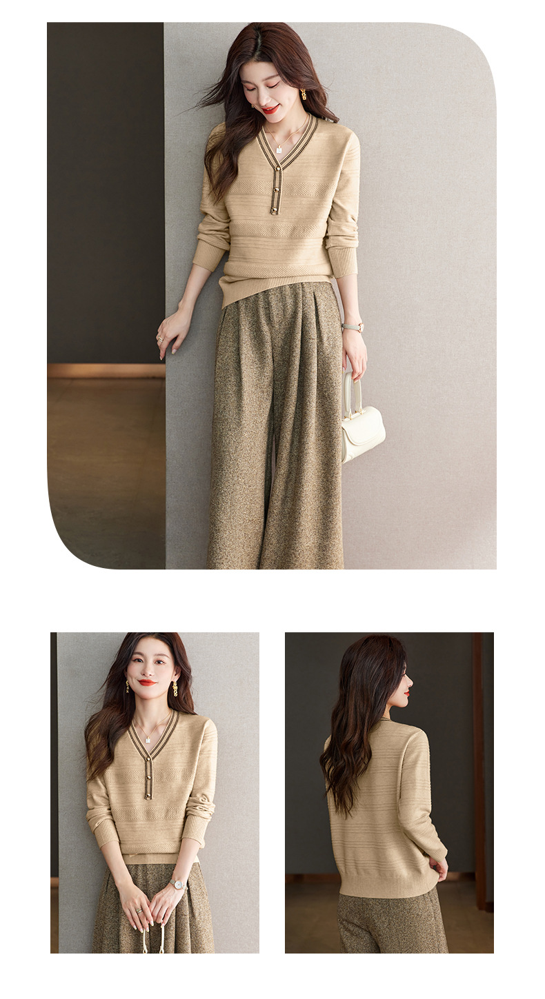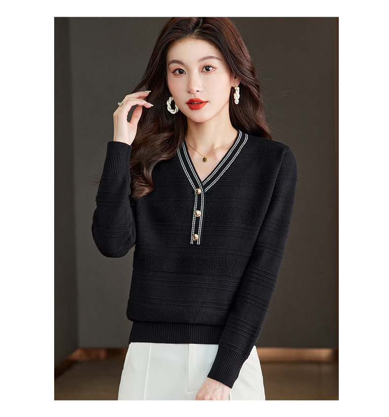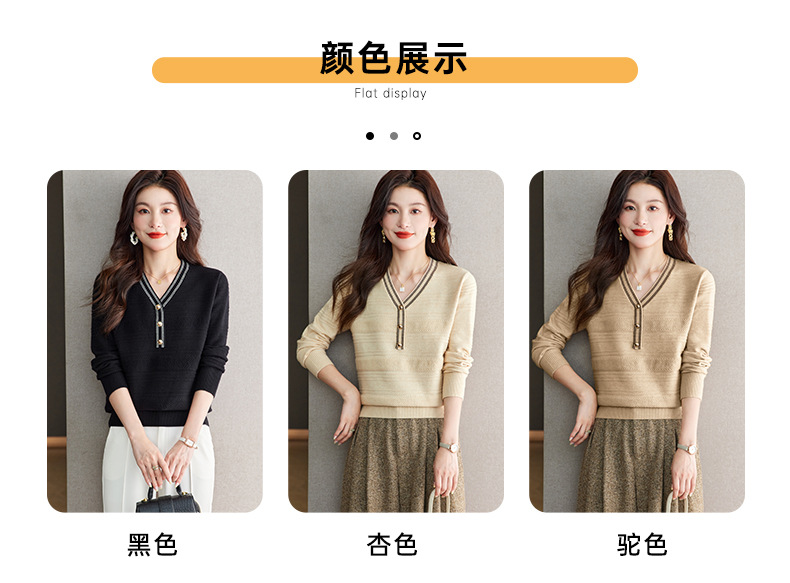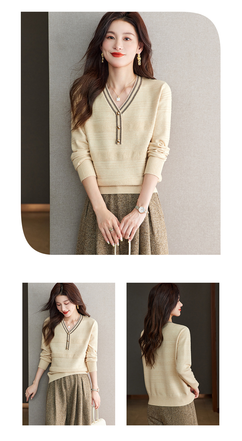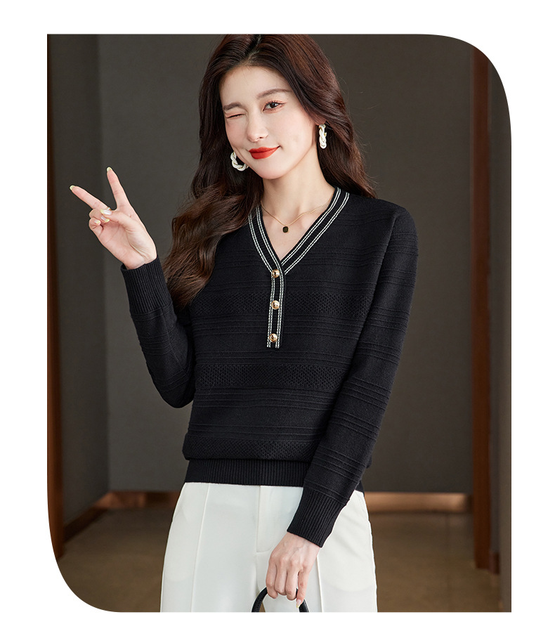 CC-66-5838 V领长袖t恤女2024春秋新款宽松时尚针织衫法式上衣洋气漂亮打底衫