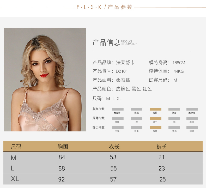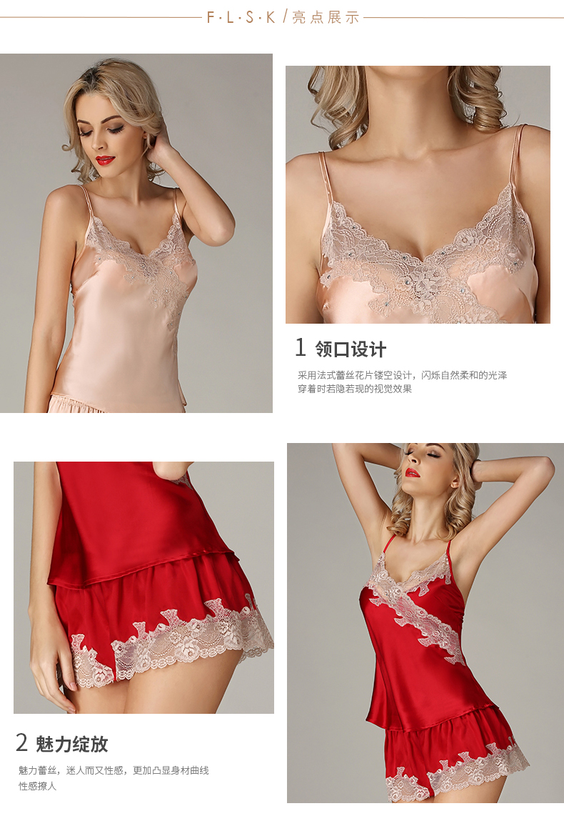 SK-D2101性感真丝睡衣女士夏季桑蚕丝蕾丝诱惑吊带短裤套装家居服 D2101