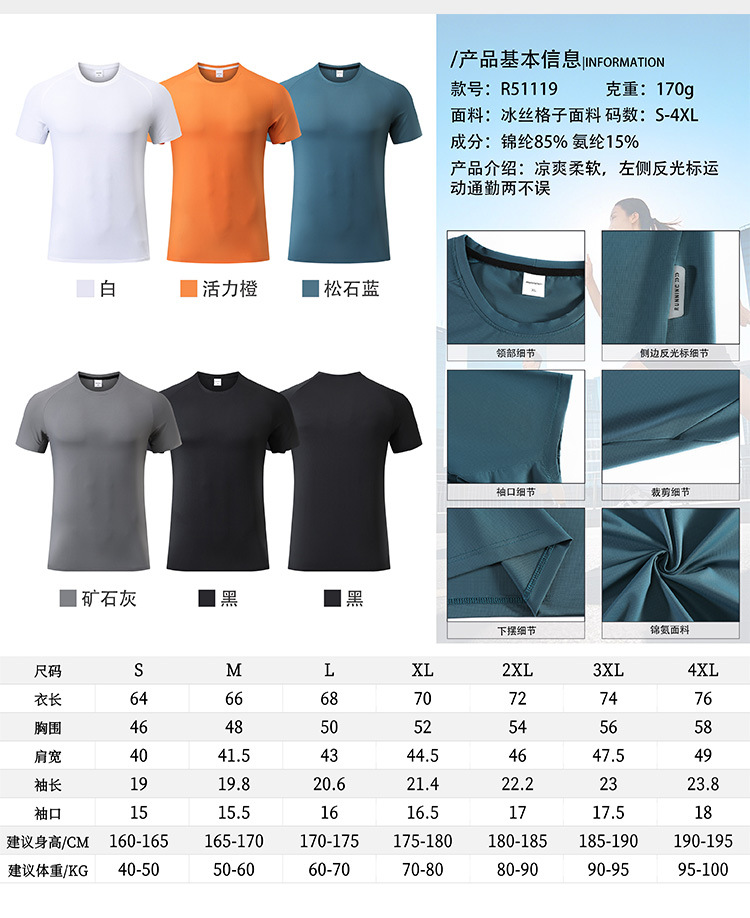 跃牌【跃LEAP-ACTIVE】 锦纶速干衣男士夏圆领弹力冰丝透气反光印健身跑步短袖R51119