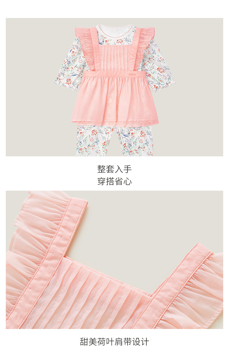 【商场同款】英氏婴儿连体哈衣女宝宝春夏款洋气可爱爬服套装