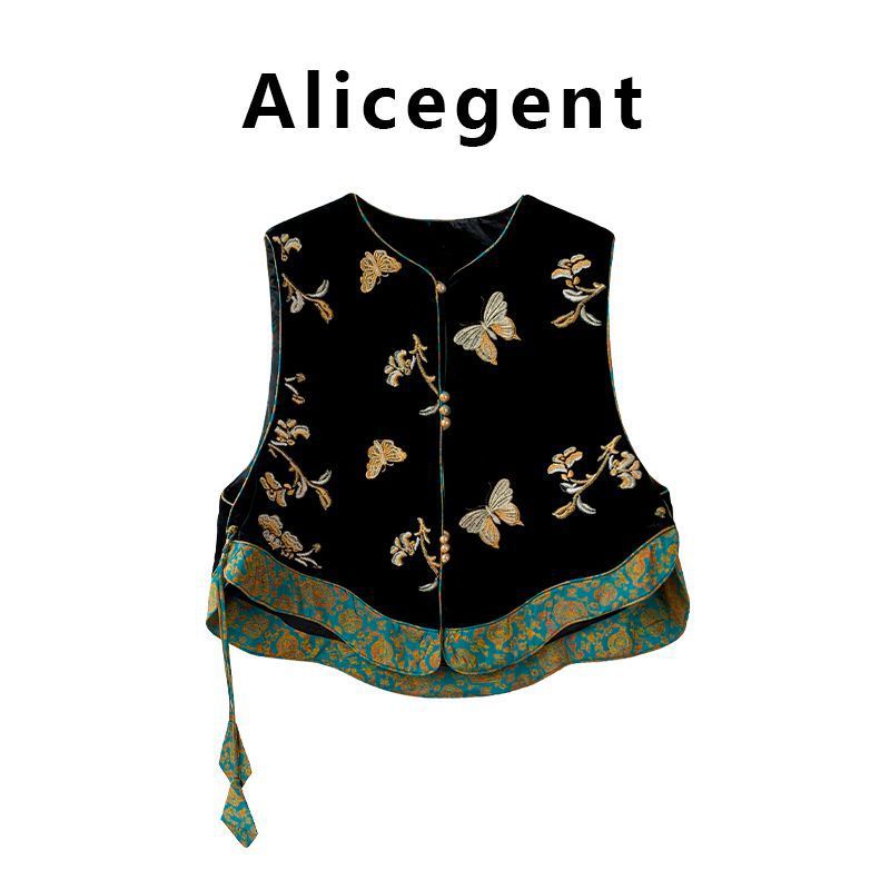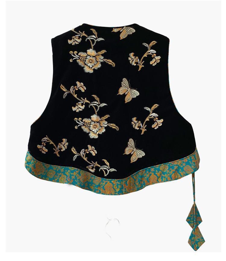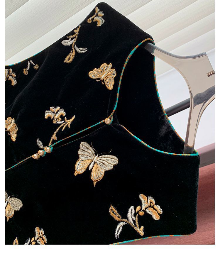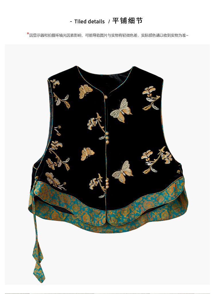 丁摩 新中式国风高端丝绒马甲女装秋季黑色宋锦拼接时尚上衣5ZF-8364