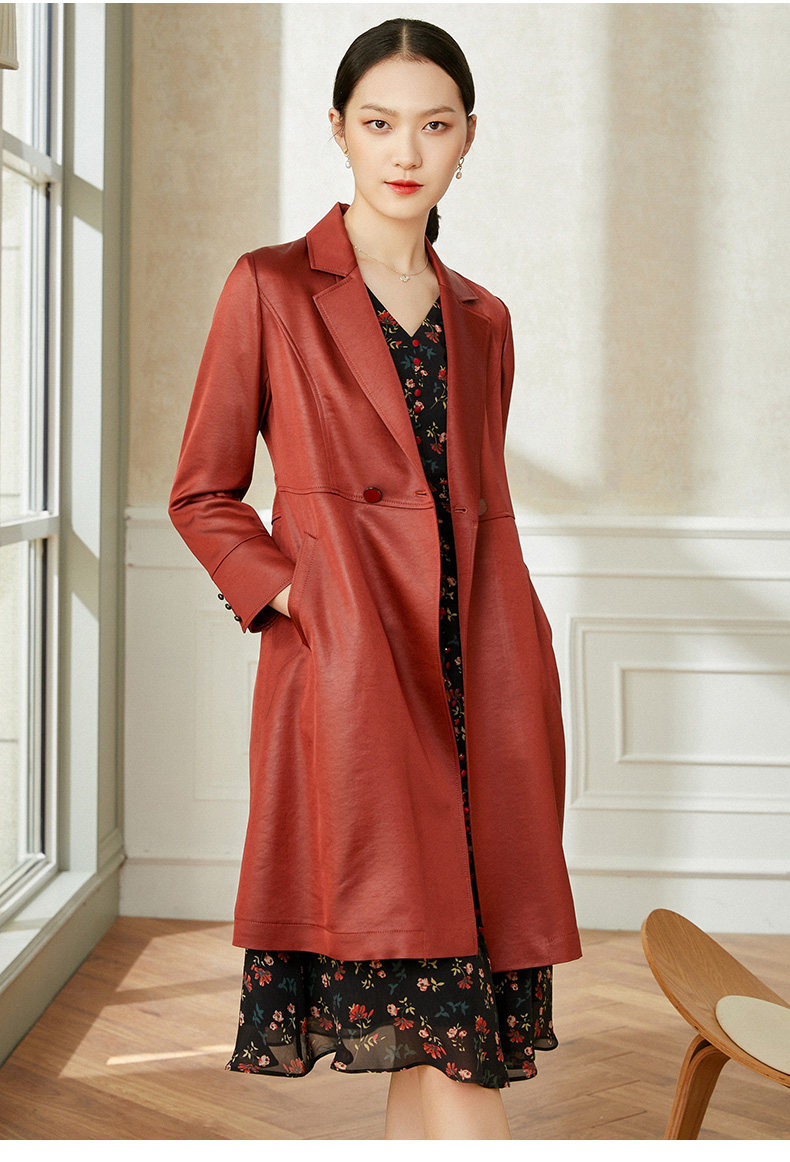 乔万尼早春新款风衣气质大衣仿皮质商务感EI3A151