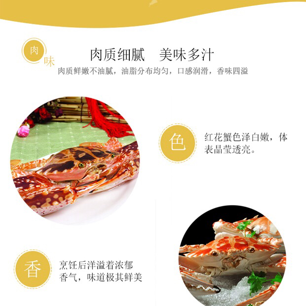 【海鲜精选】东山海鲜•活鲜花蟹 (又称绣斑蟹、花乐蟹)岛上可见最名贵的野生蟹品 肥满 蟹乃上品 花蟹肉质丝短纤细 洁白晶莹