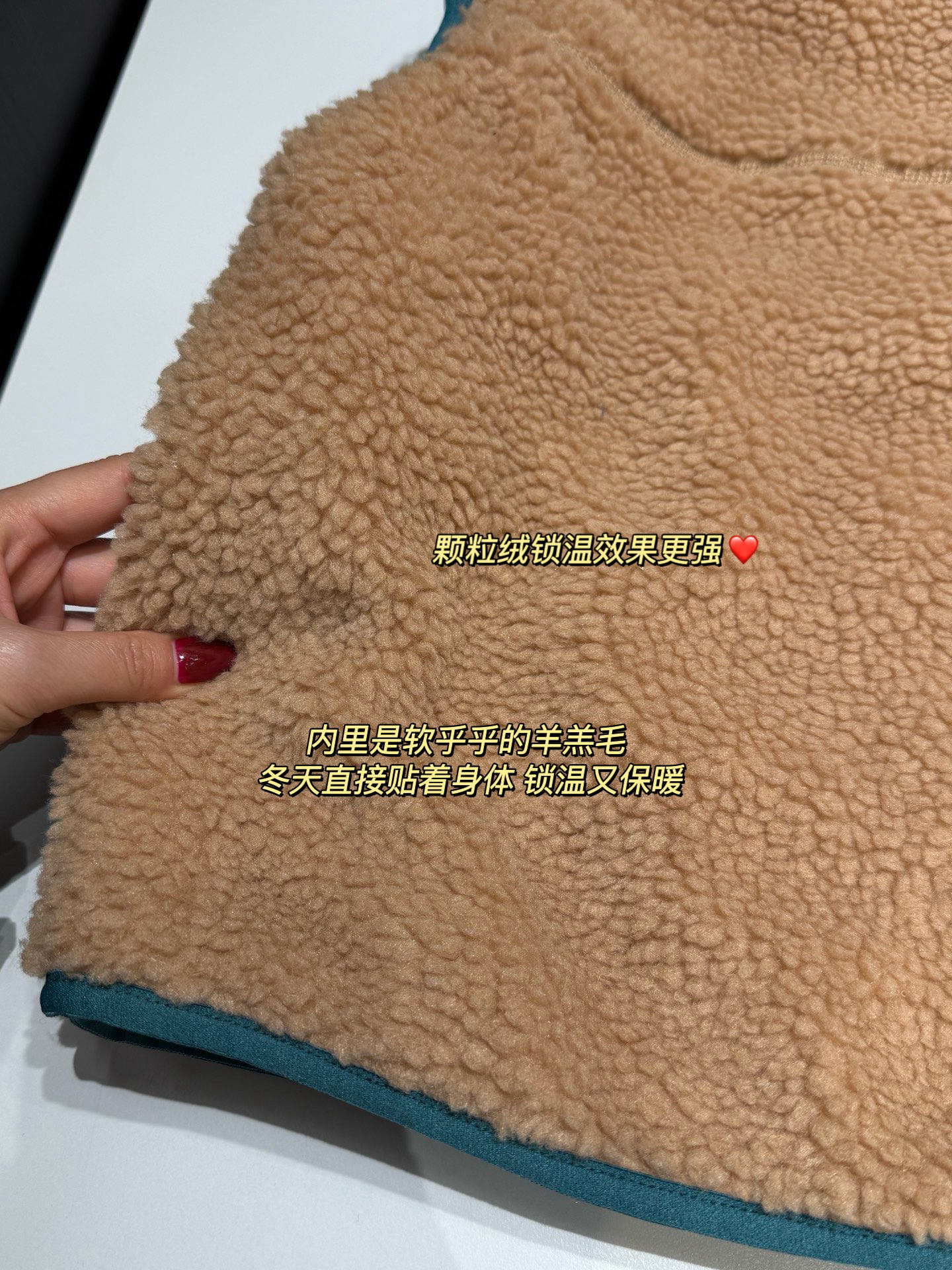 尤其羊羔毛面 触感入手即知 蓬松的颗粒绒细密均匀覆盖 像是“云朵胸甲” 保护小朋友的前胸后背 马甲对于孩子的秋冬是最实穿的