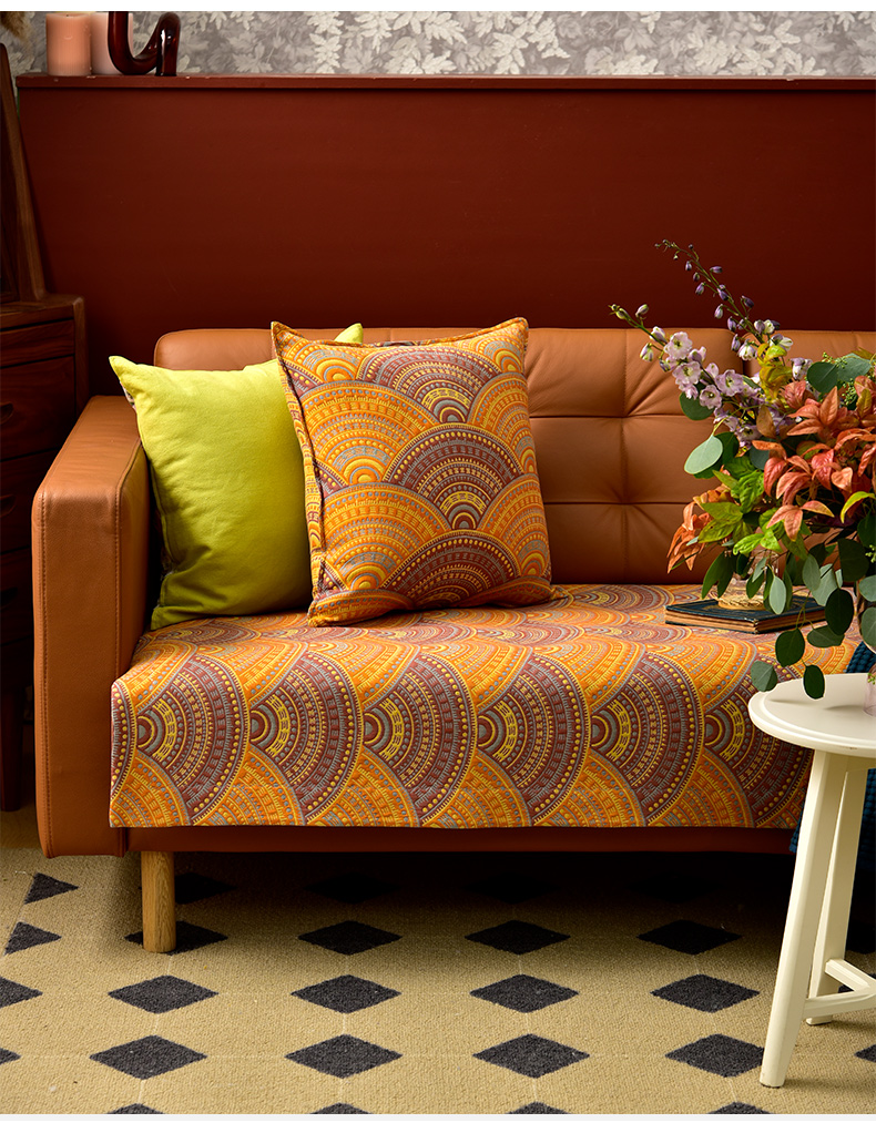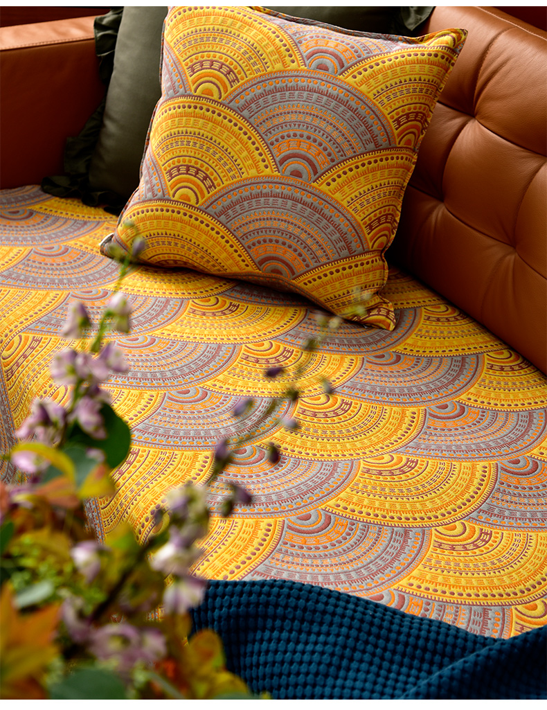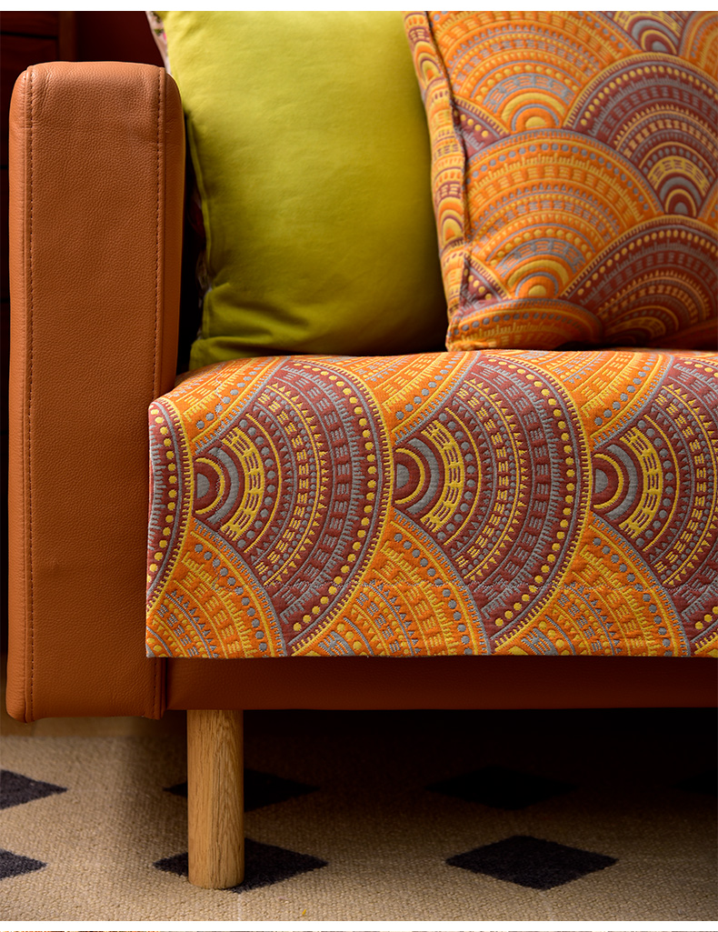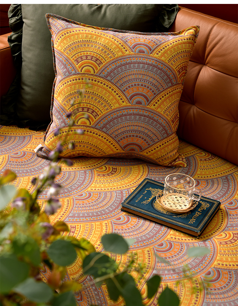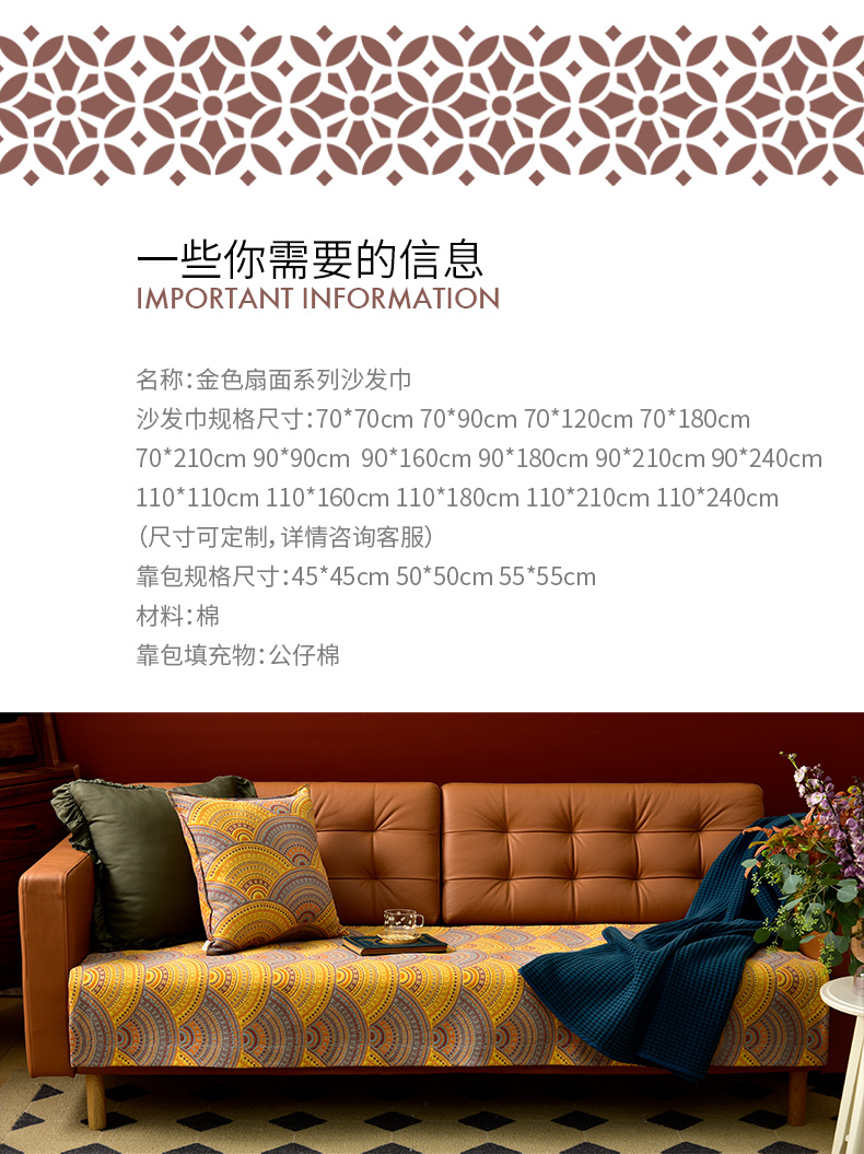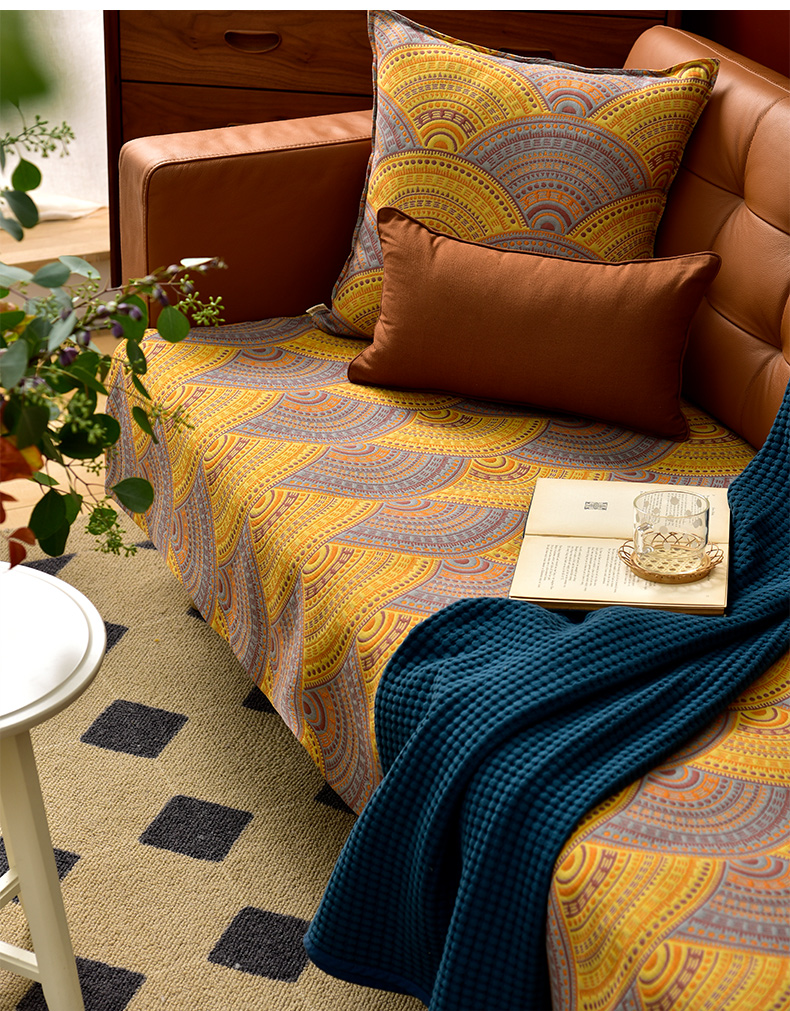 金色扇面系列沙发巾防滑四季通用纯棉沙发垫