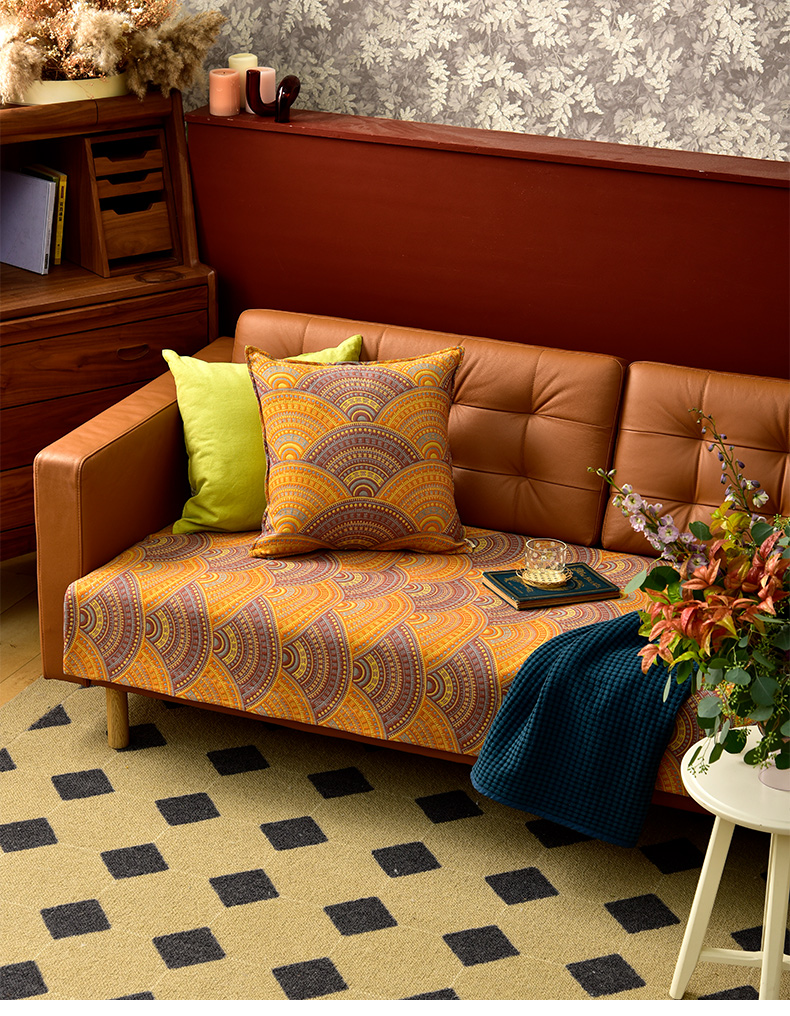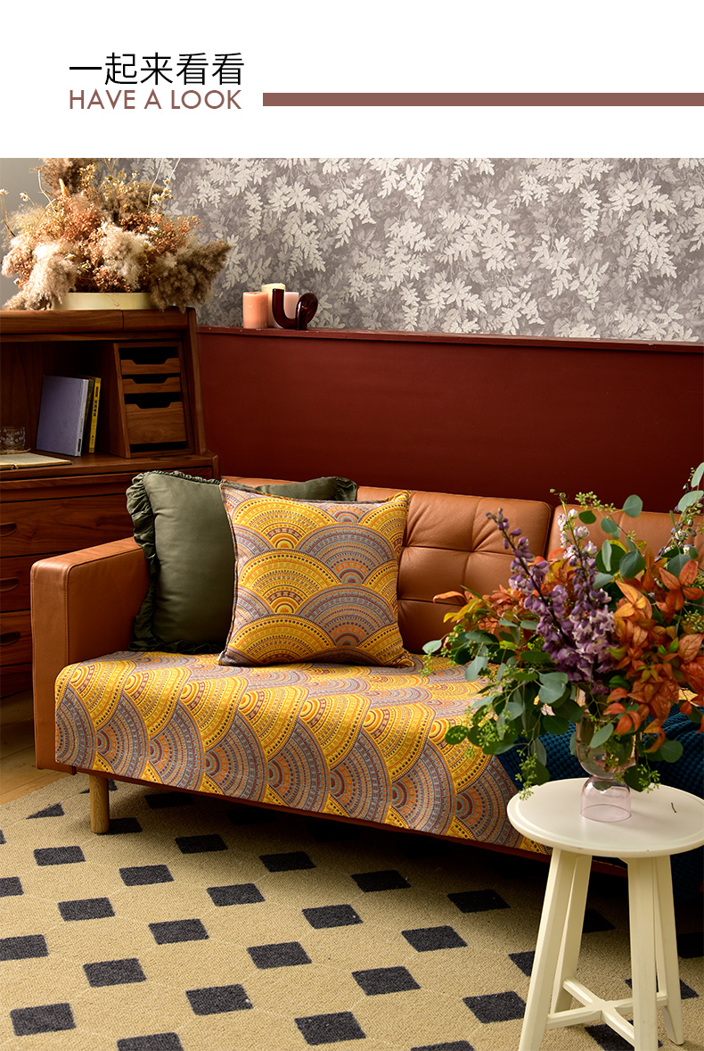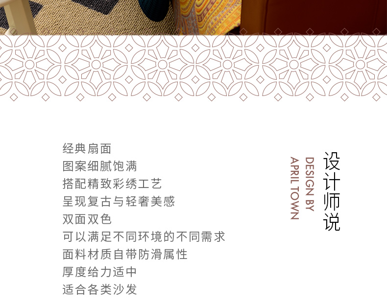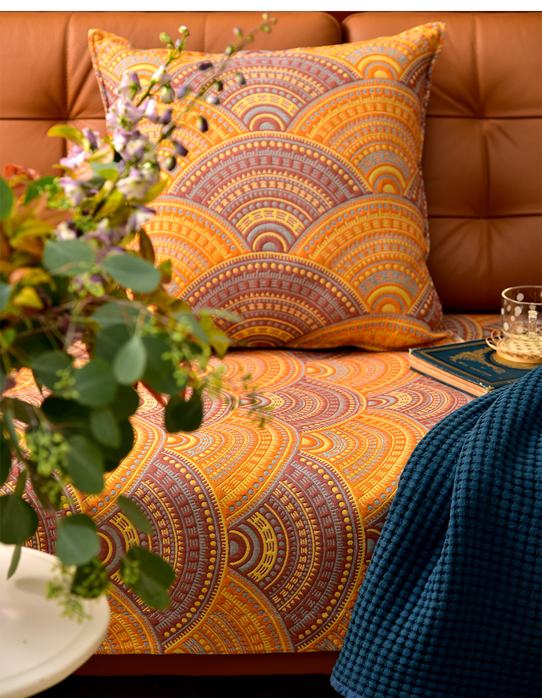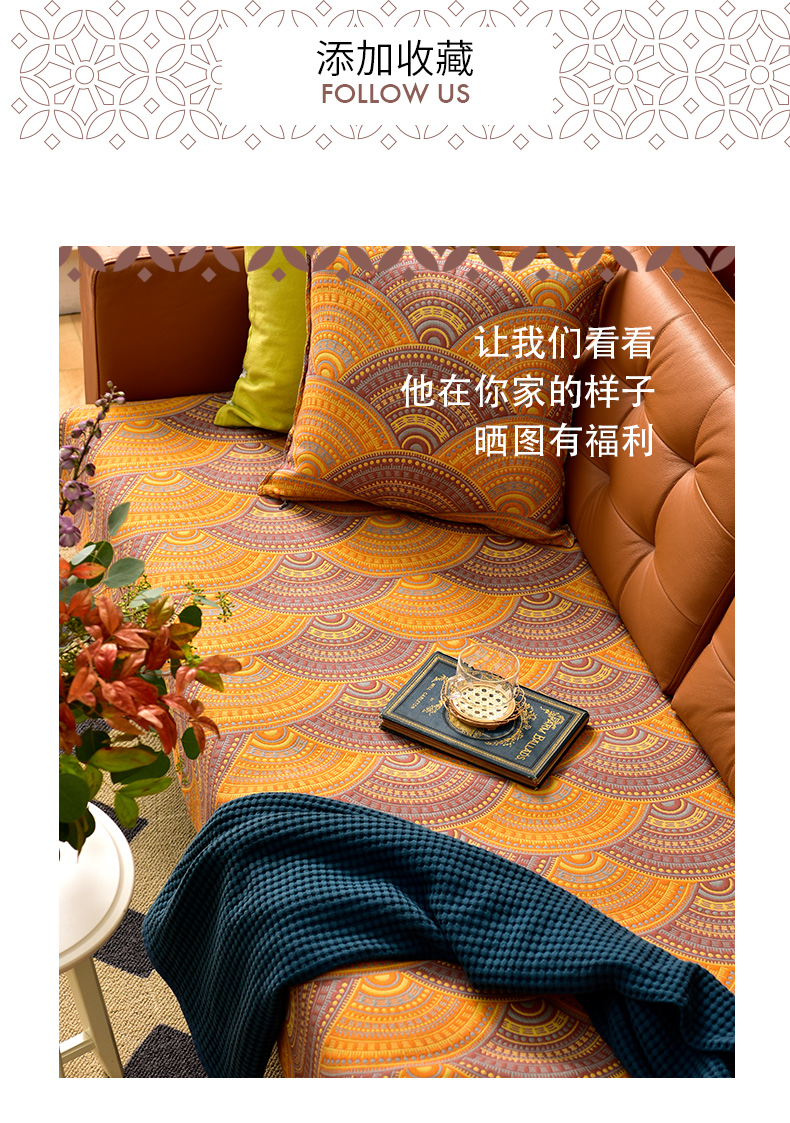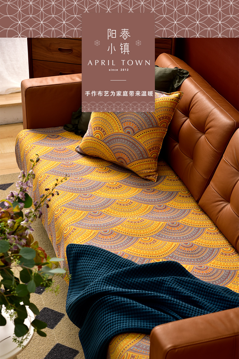 金色扇面系列沙发巾防滑四季通用纯棉沙发垫