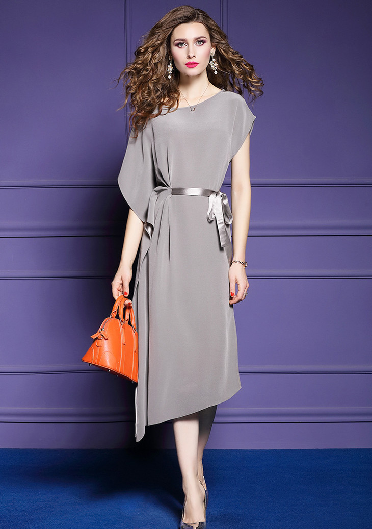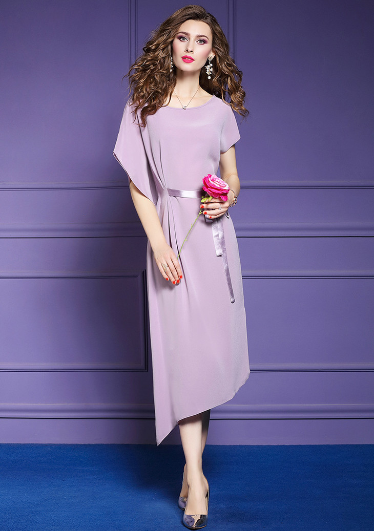 FMY23660新款气质短袖收腰醋酸不规则连衣裙