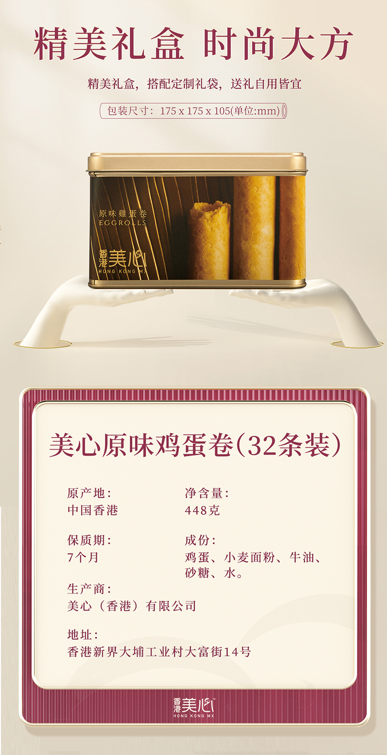 中国香港美心原味鸡蛋卷448g礼盒零食饼干糕点送礼特产小吃食品