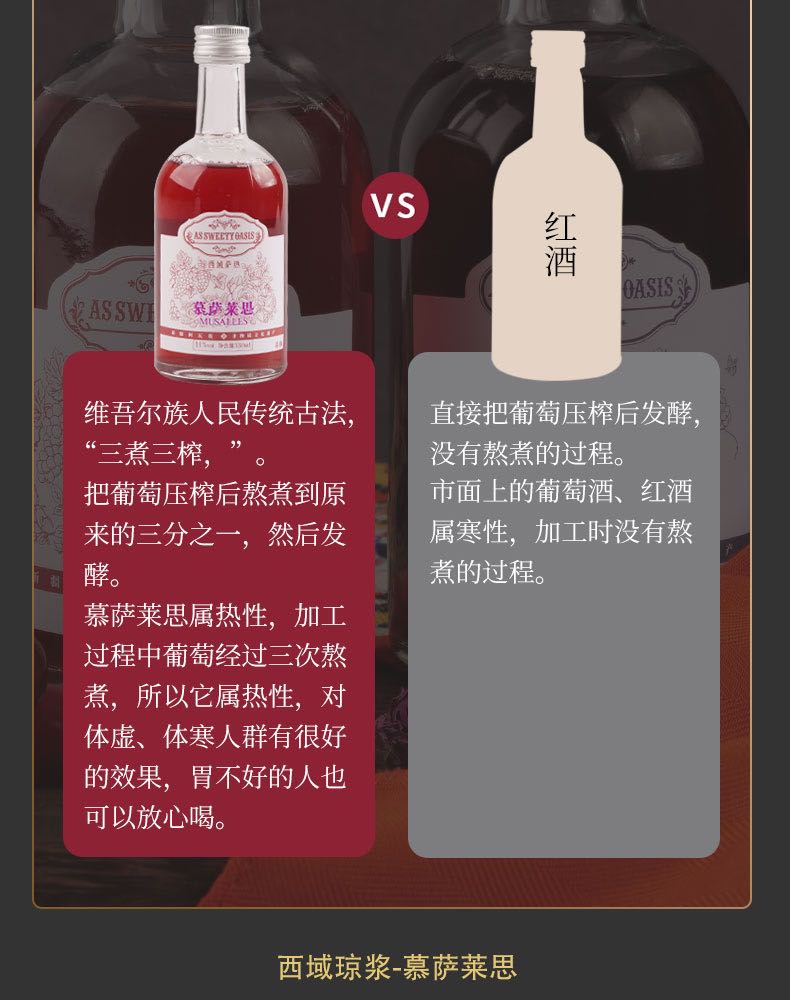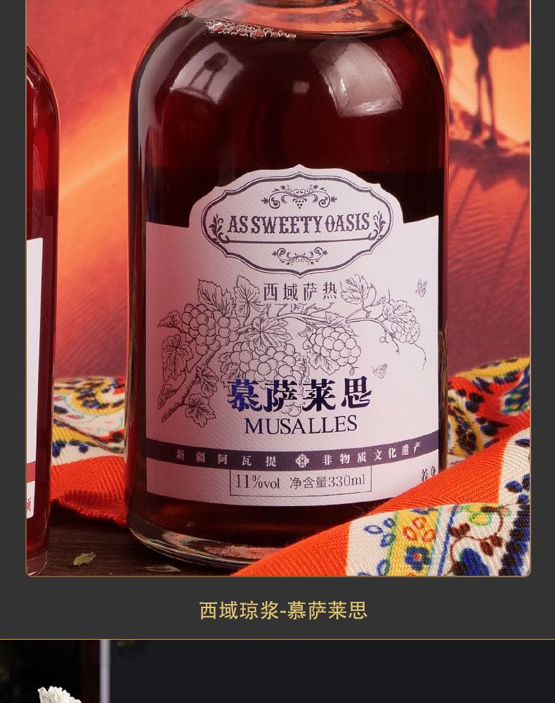 新疆[西域萨热]慕萨莱思葡萄酒纯酿民族传世养生酒地理标志330ml
