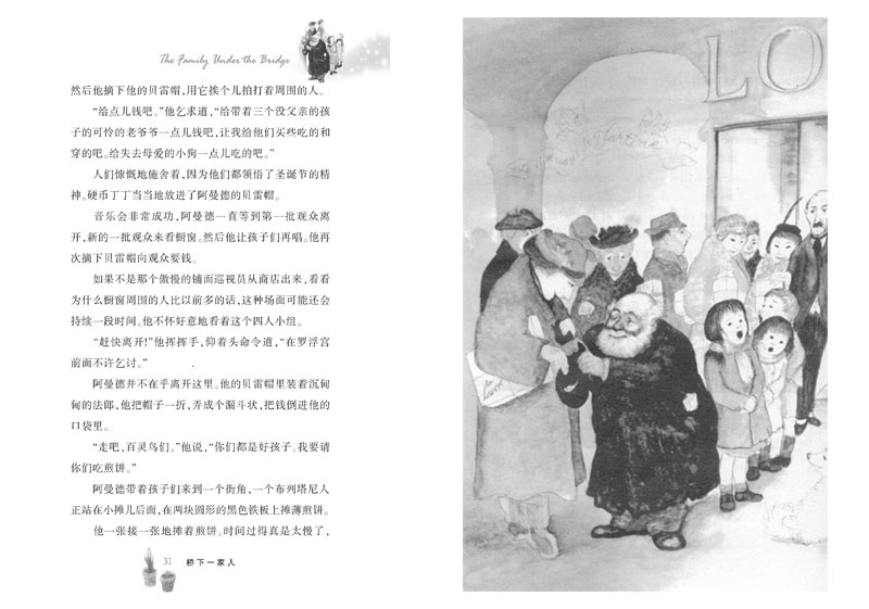 在巴黎生活着一个上了年纪的流浪汉,他的名字叫阿曼德。横跨塞纳河的大桥底下便是他的栖身之所。一天傍晚,当他返回住处时,发同自己的地盘儿居然被三个陌生的小孩子和一只小狗给占了。他既吃惊又生气,要把他们赶走。后来,在与孩子们的接触中,他逐渐改变了自己的态度,甚至替他们白天在洗衣房工作的妈妈照顾他们,而这三个孩子也早已把他当作自己亲爱的爷爷了。阿曼德重新找到家的感觉,与此同时,他也深知孩子们渴望、需要的就是一个真正的家。为了实现孩子们的愿望,阿曼德决心搸起来,不再以乞讨为生。他以崭新的精神面貌谋到了一份适合自己的工作,他将与孩子们的妈妈一起共同支撑起一个真正属于他们自己的家。