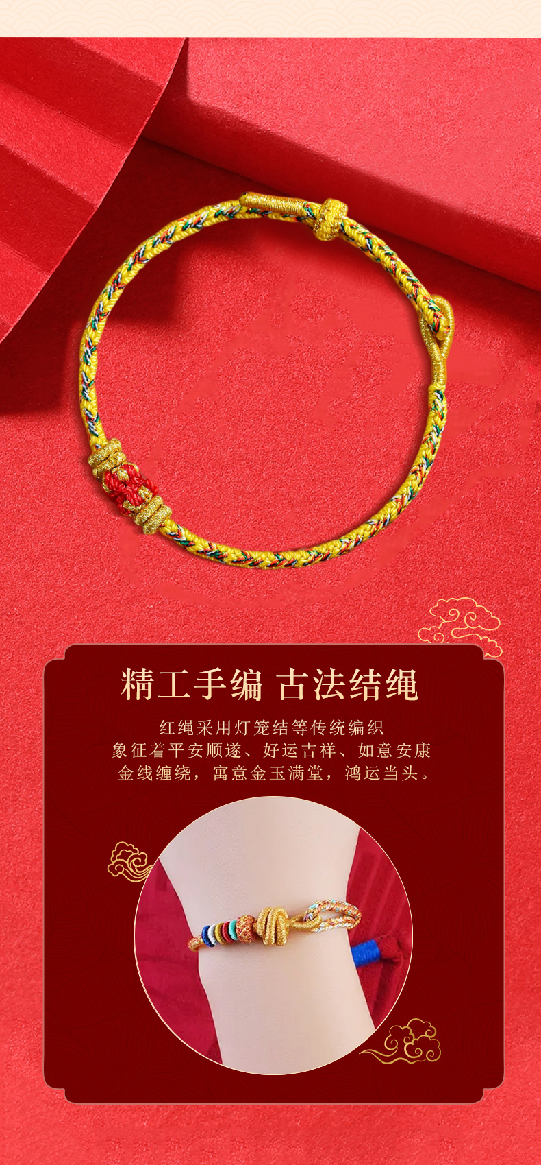 普陀山幸运锦鲤编织红绳手链手绳银制吉祥礼物