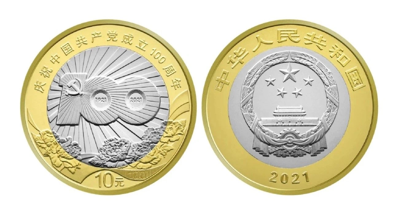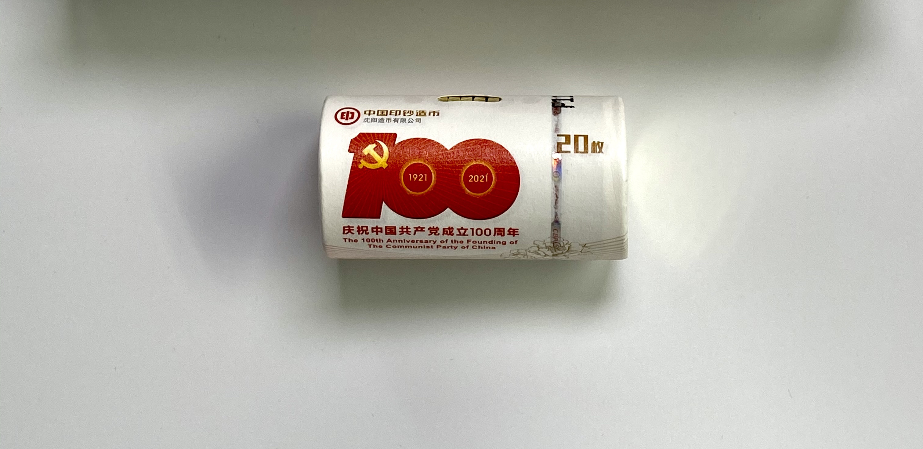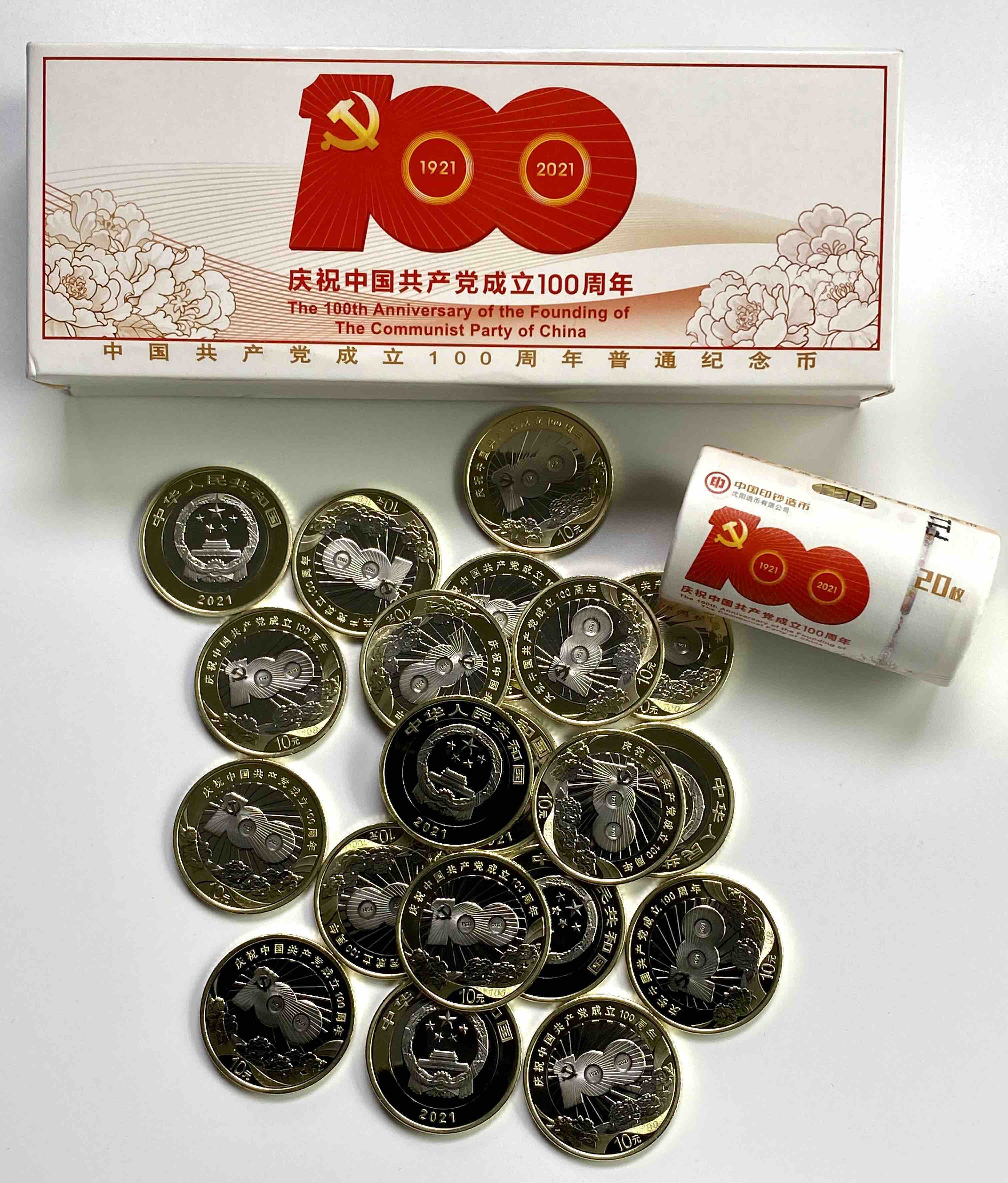 建党百年纪念币面额为10元,直径为27毫米,材质为双金属铜合金,发行数量1.8亿枚,包装还是一卷20枚,一盒5卷!