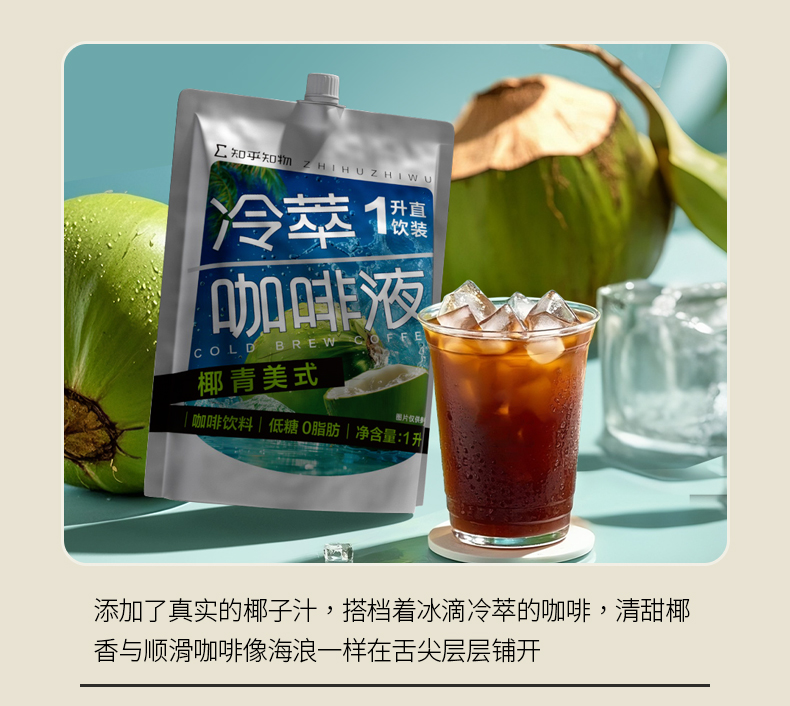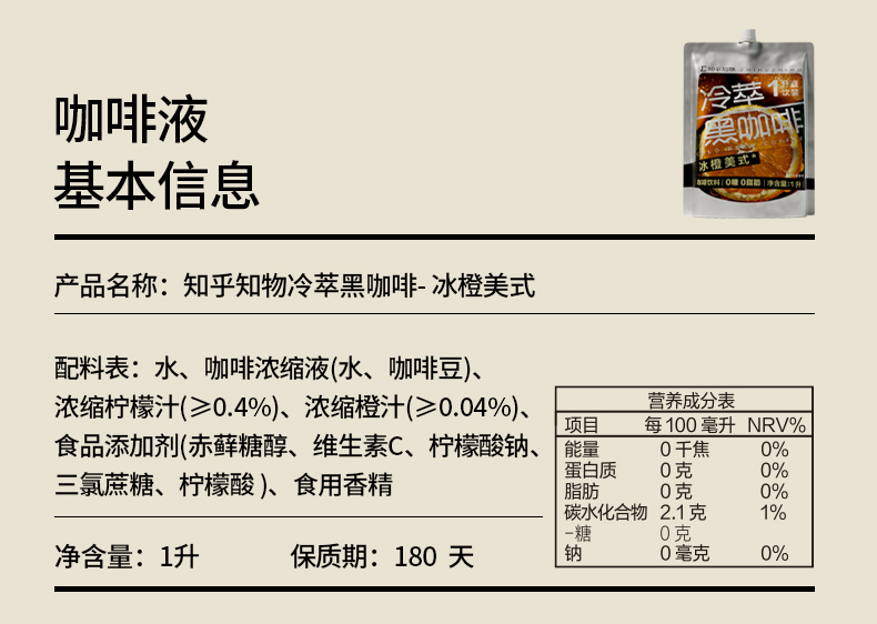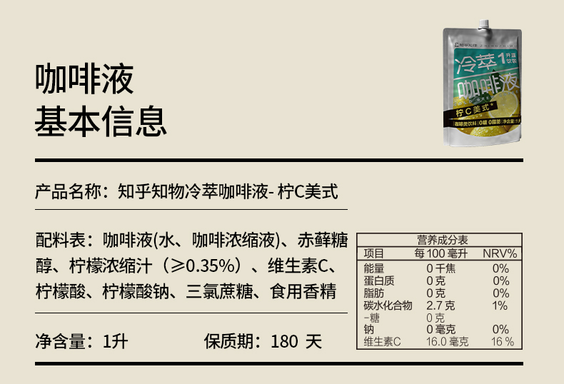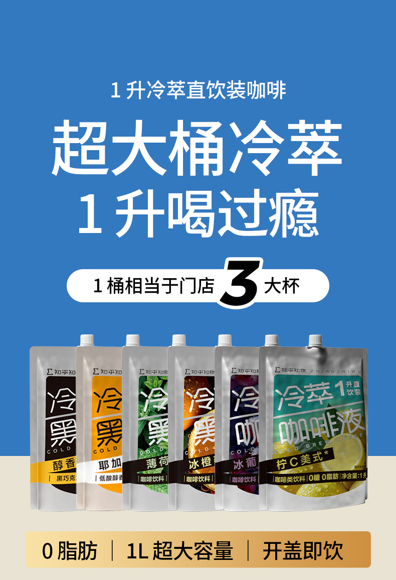 (GH)知乎知物 冷萃美式黑咖啡 6种口味 0糖0脂肪 1升装直饮咖啡饮品 大容量
