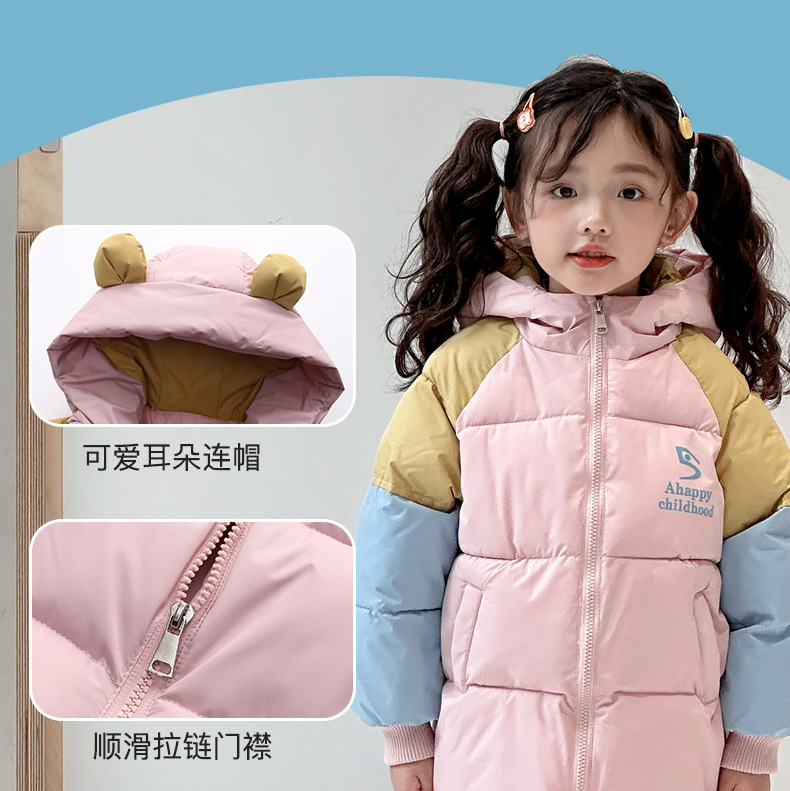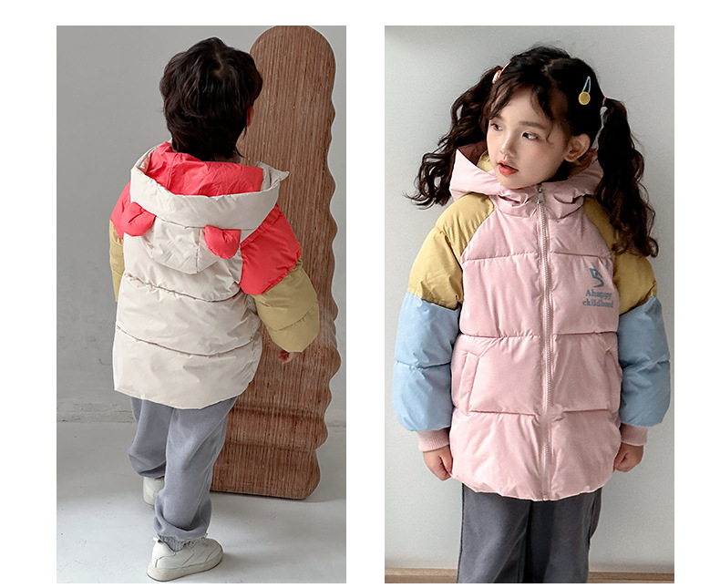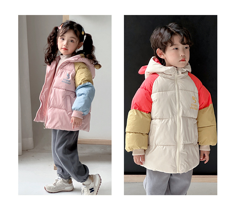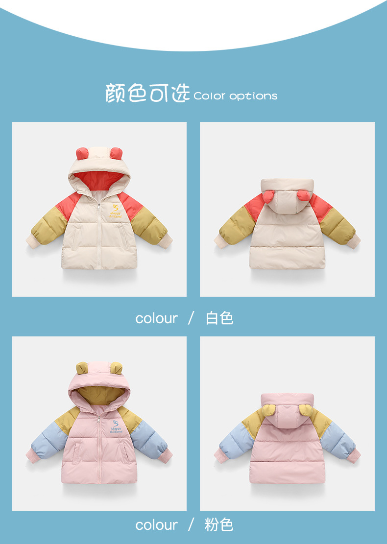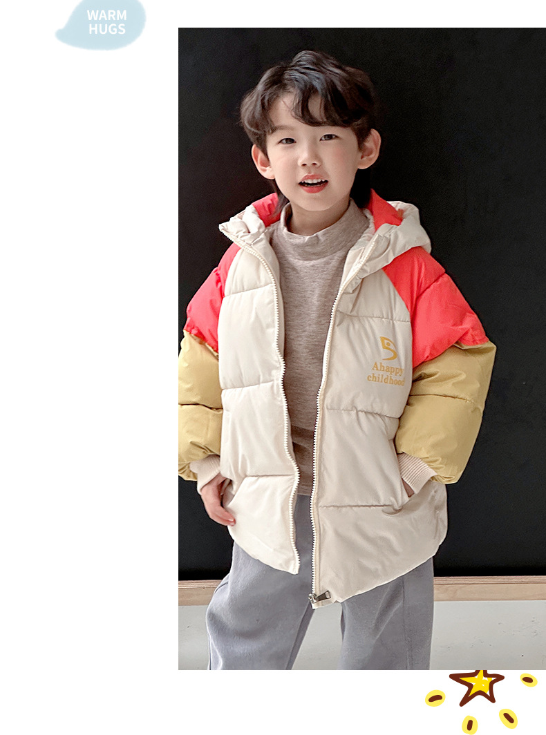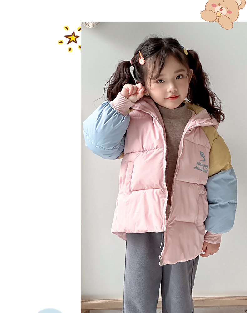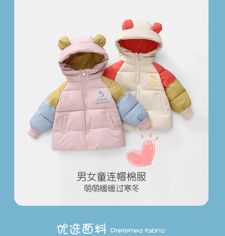 【暖暖拼色棉服,秋冬新品第一波,男女童保暖棉服】秋冬季新款可爱时尚加厚棉衣 儿童小孩拼色棉服棉袄 短款外套-QQ