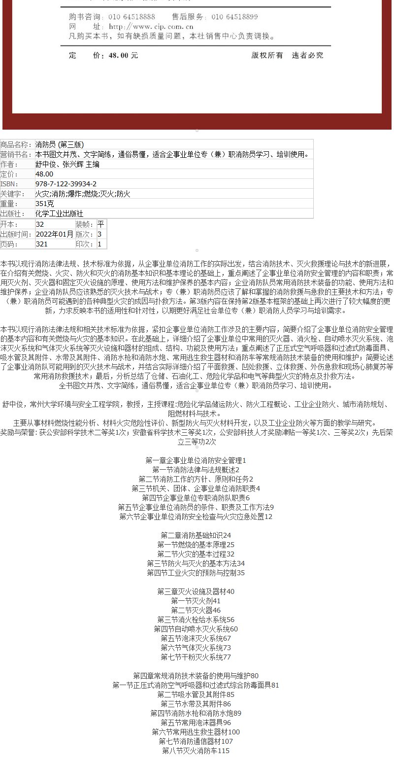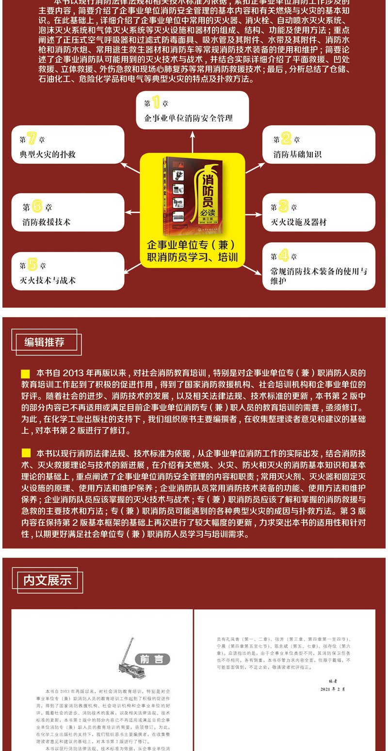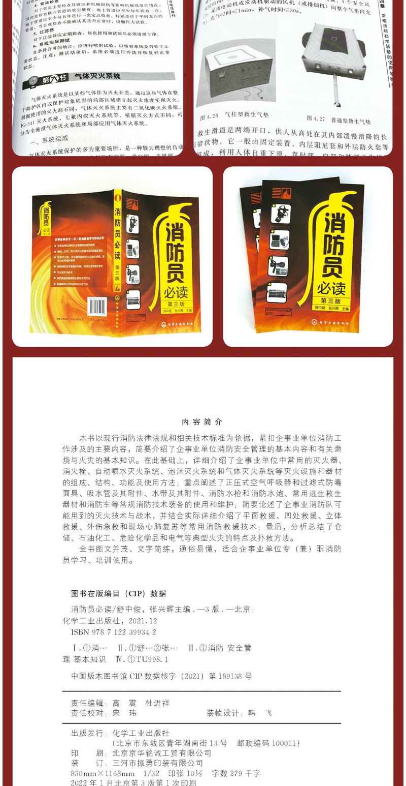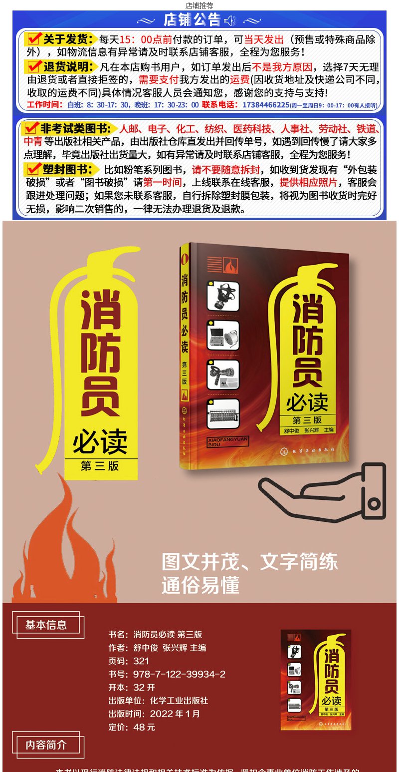 消防员必读 第三版 企事业单位消防安全管理应用书籍 燃烧与火灾基本知识 消防知识培训手册 单位消防知识培训教材 消防员培训书籍 化学工业出版社 9787122399342
