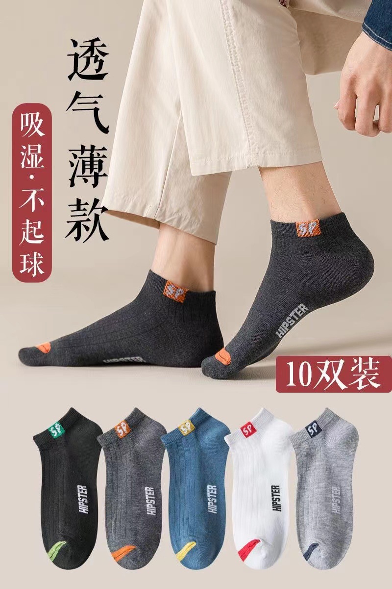 10双大特价【舒适无感!吸湿不起球】男士袜子短袜仙女袜女士夏季薄款透气休闲吸汗黑白色SP袜春秋时尚款船袜男。ha