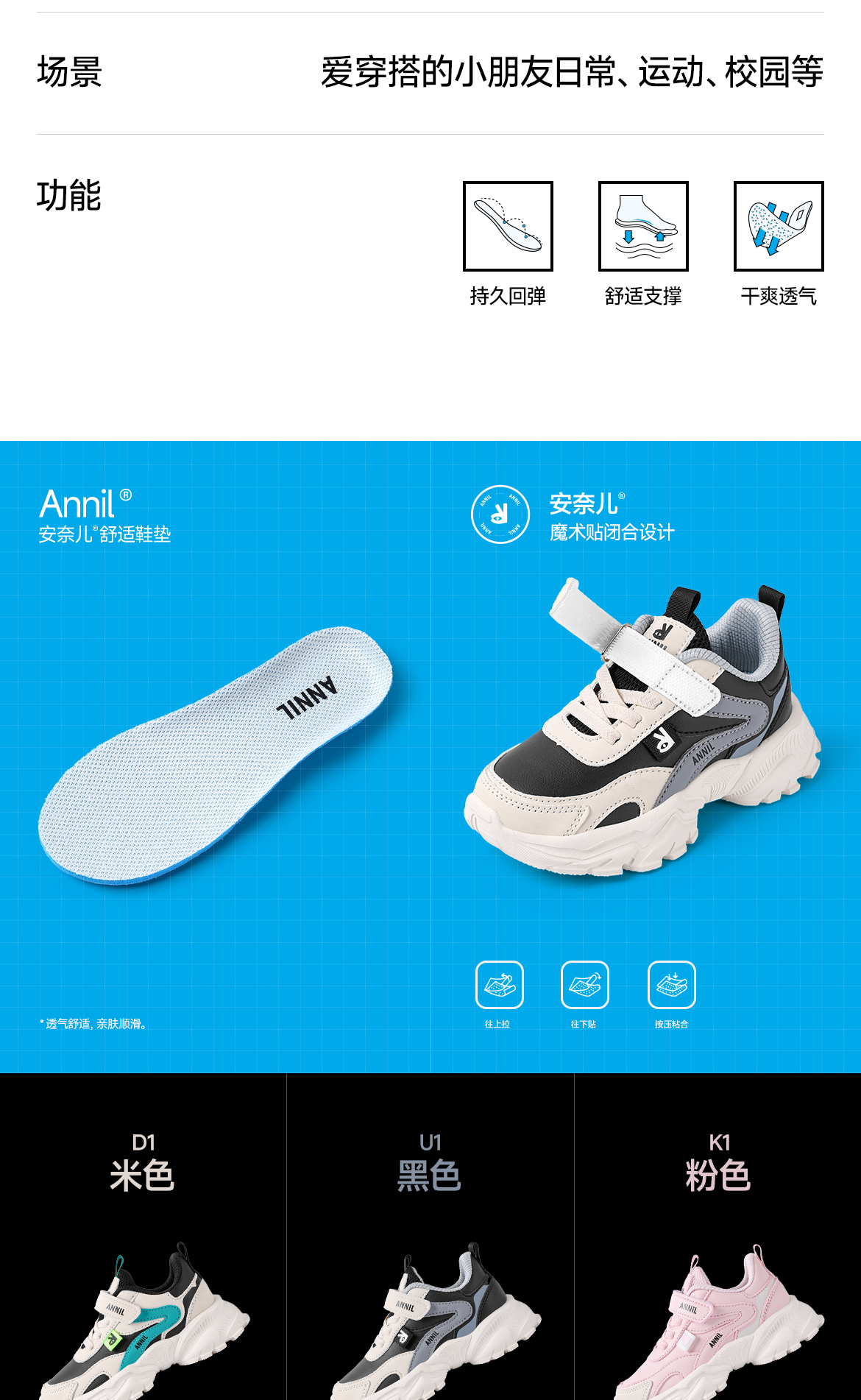 ANNIL/安奈儿童鞋男女童春秋防滑中大童透气春季秋季步鞋运动鞋运动风鞋子HM5305513