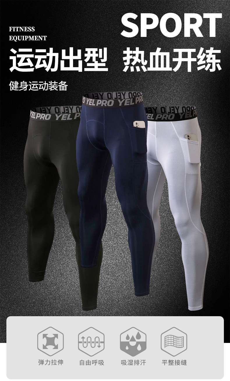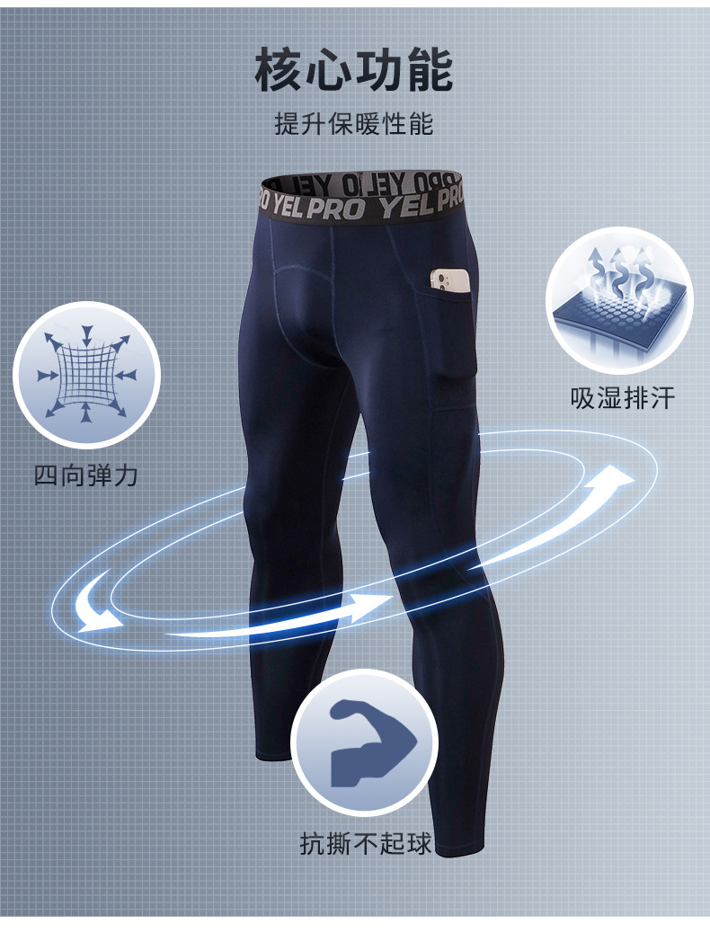 跃牌【欲动春风】男装系列 加绒打底训练裤口袋PRO紧身弹力跑步运动长裤11326